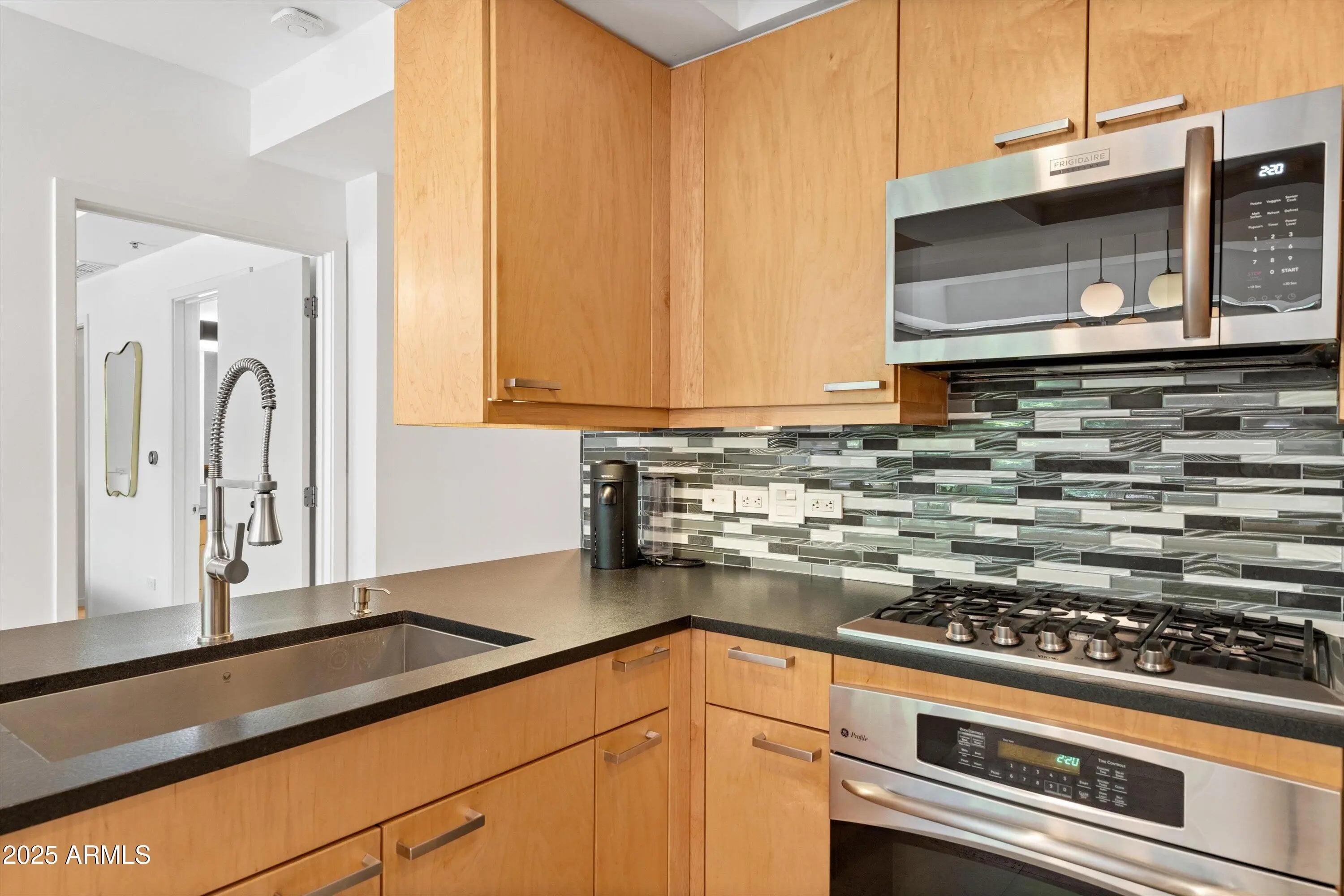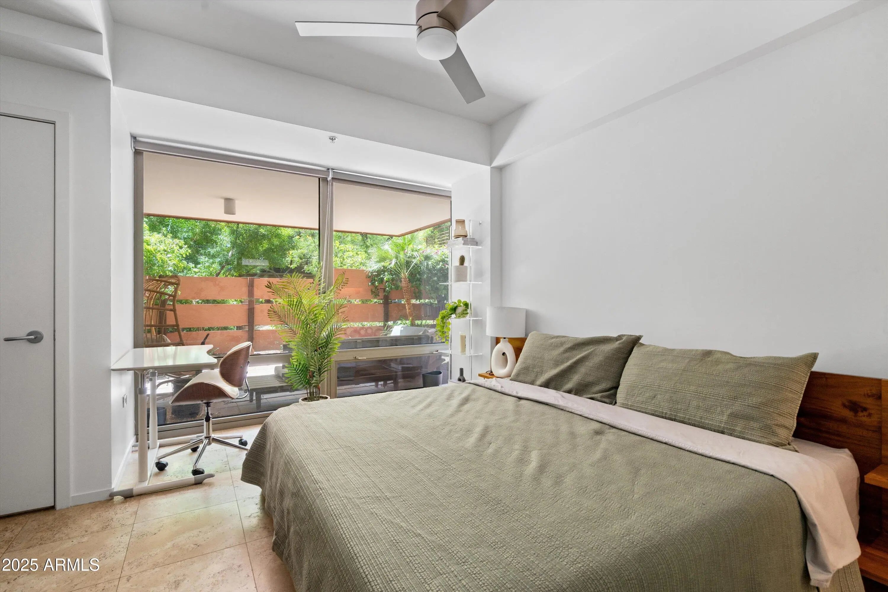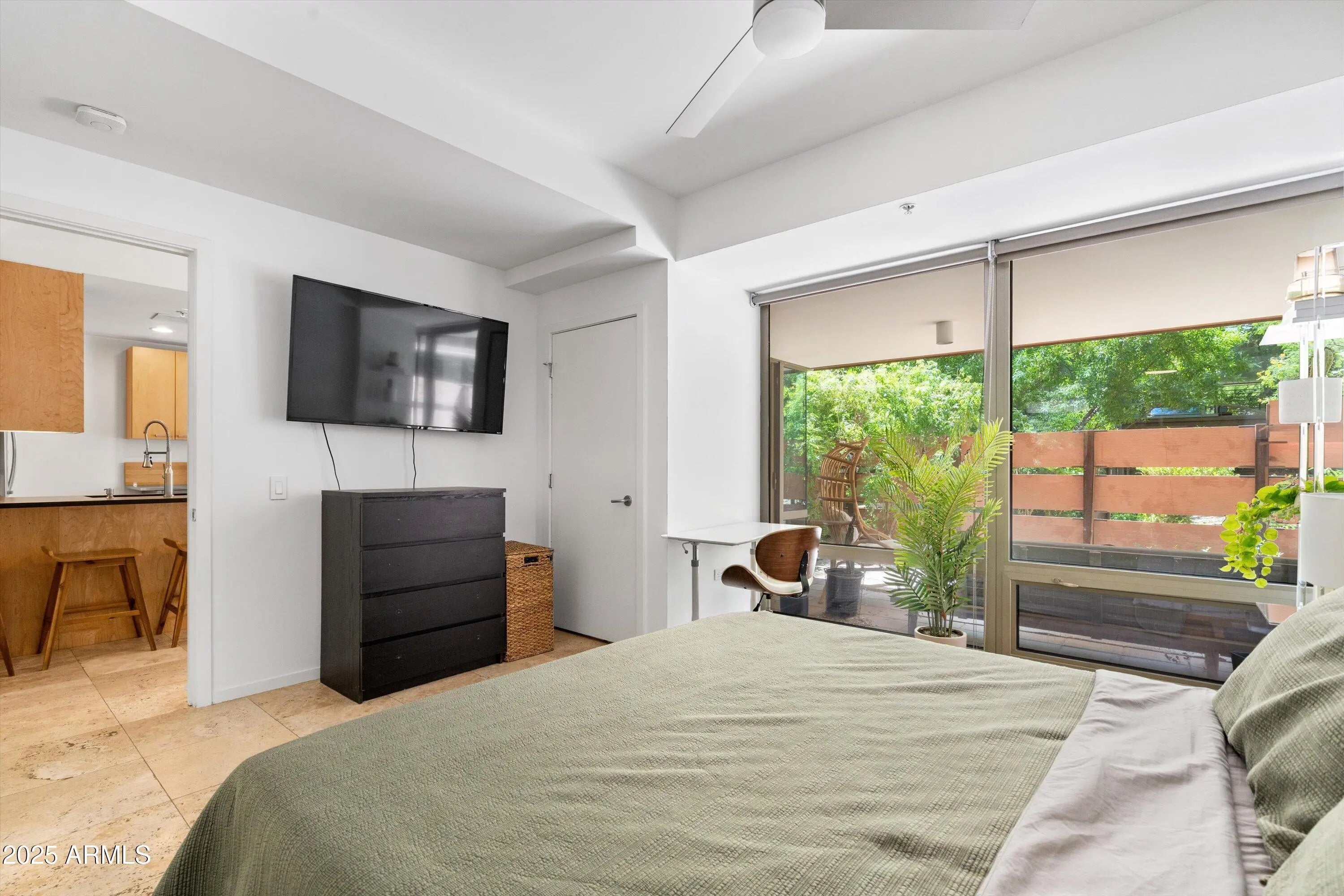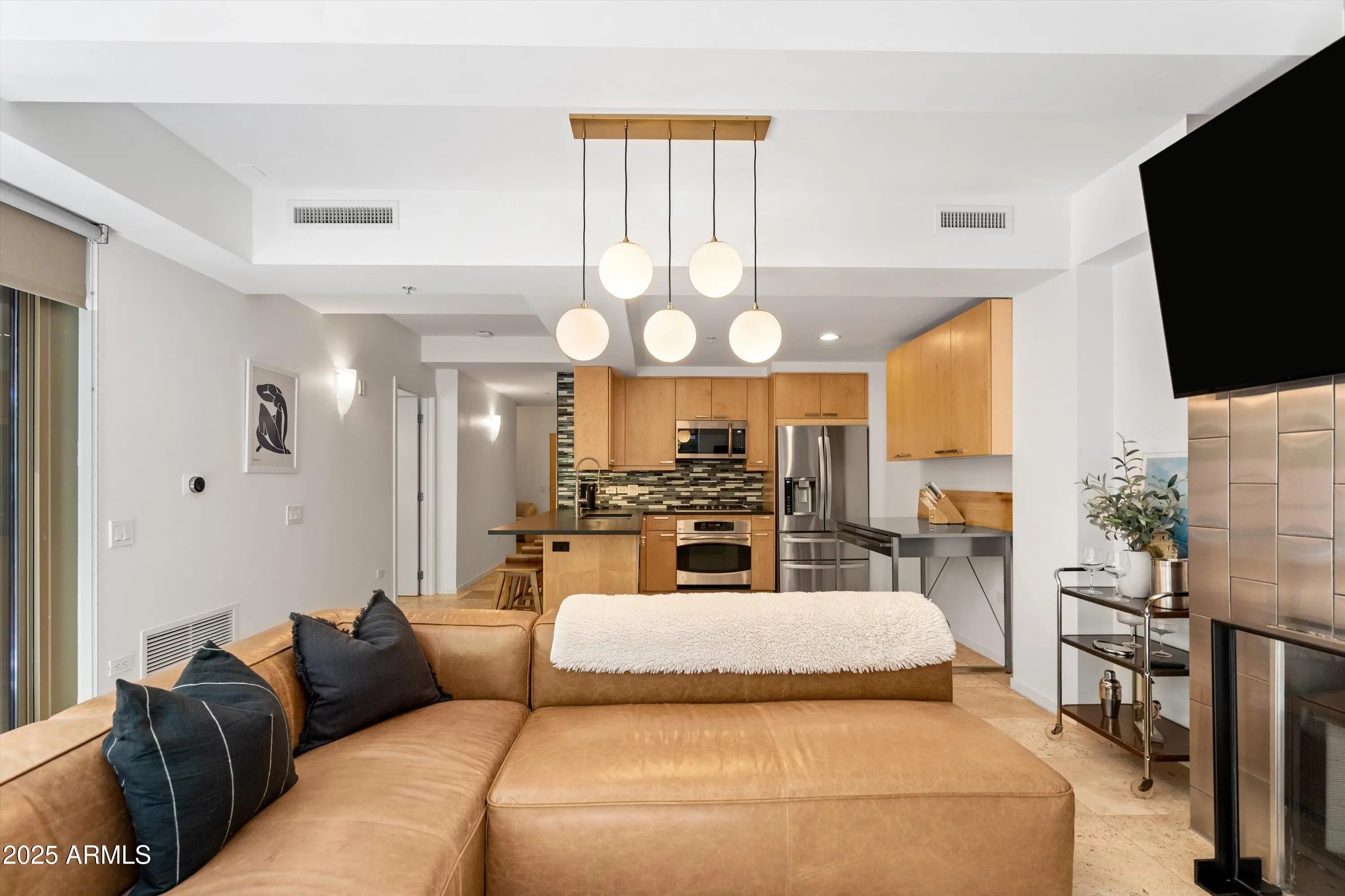 Ground-Level Corner Unit with Private Yard - A Rare Gem at Optima Camelview! Step into one of Optima Camelview's most desirable residences—an upscale ground-level corner unit featuring a spacious, private yard that's perfect for seamless indoor-outdoor living. Whether you're enjoying quiet mornings on the patio or hosting under the stars, this outdoor space sets the home apart from anything else in the community. Thoughtfully remodeled with premium designer finishes, this one-bedroom layout also includes a rare guest powder room, adding convenience and flexibility for everyday living and entertaining. The chef's kitchen features leather-finished granite countertops, upgraded cabinetry, a Viking 5-burner cooktop, French door refrigerator, and elegant glass tile backsplash. Inside, the open living area is enhanced by a floor-to-ceiling stainless steel fireplace, offering modern warmth and a stunning design focal point. Natural light fills the space, and the private patio doors extend your living experience into the serene outdoor garden. Located just steps from Scottsdale Fashion Square, the Waterfront, and the best of Old Town's dining, shopping, and cultural destinations, you'll enjoy a truly walkable lifestyle in one of the city's most iconic locations. Residents of Optima Camelview benefit from resort-style amenities including multiple indoor and outdoor pools, a top-tier fitness center, putting green, concierge services, indoor basketball and racquetball courts, and a lush, award-winning landscape design that creates a tranquil urban oasis. This home offers the perfect blend of comfort, elegance, and location an exceptional opportunity in the heart of Scottsdale.