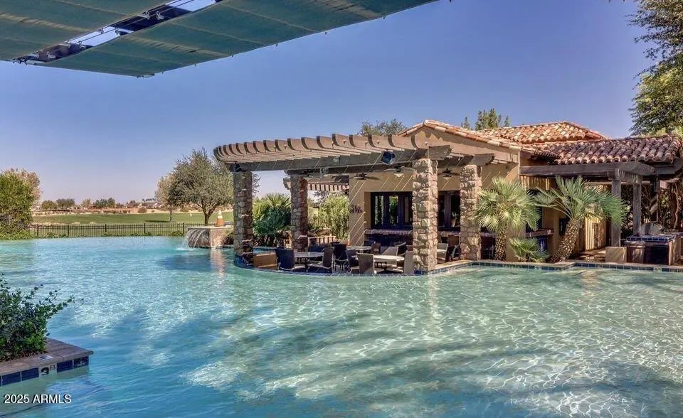 With over 150K in Pool & Landscape upgrades since it's 2023 completion, this Better Than A New Build Home, is nestled in the prestigious Encanterra Country Club, the crown jewel of country club living in the Southeast Valley. This stunning single-story home offers the ultimate in elegance and comfort. Spanning 2,342 square feet, this residence features 3 bedrooms, 3 bathrooms, and a versatile den/flex space. Step inside to discover an open-concept floor plan that's ideal for entertaining. The spacious kitchen is a chef's dream, boasting a gas stove, stainless steel appliances, and an oversized kitchen island with abundant space for casual dining or gatherings. Each bathroom has been thoughtfully customized with granite countertops and tile showers, exuding luxury at every turn. For added privacy and convenience, the home includes two primary suites, perfect for hosting guests or accommodating multi-generational living. The outdoor space is equally spectacular, with a large, covered patio, sparkling pool, large spa and fire features that create a tranquil oasis right in your backyard. Whether you're relaxing poolside or hosting a lively gathering, this home is designed to impress. Start "Living The Good Life" in Encanterra while enjoying unmatched amenities such as a beautiful 18-hole golf course, restaurants, pools/spas, sport courts, two separate clubhouses, personal care spas, fitness center, etc. Welcome home!