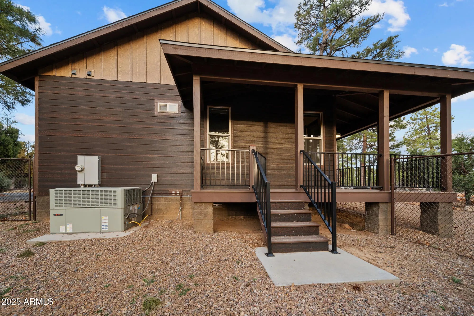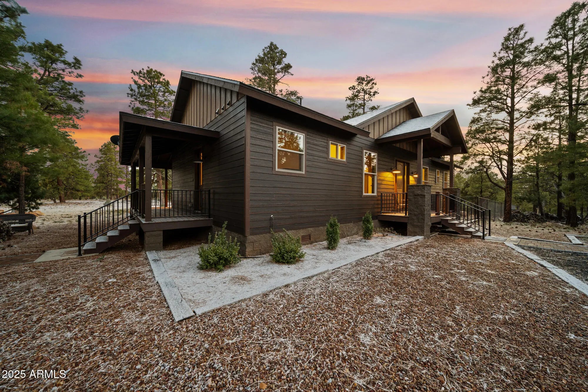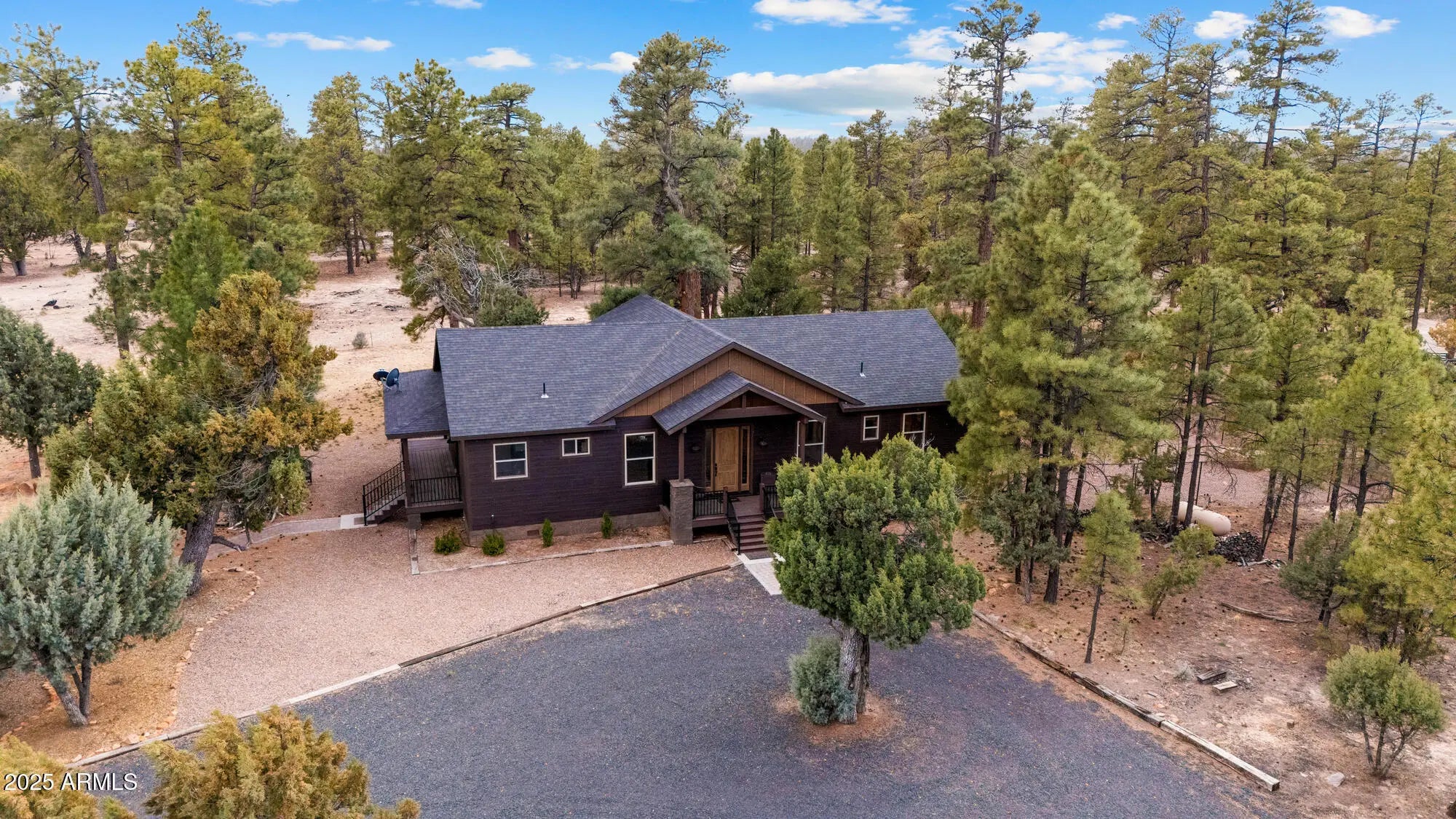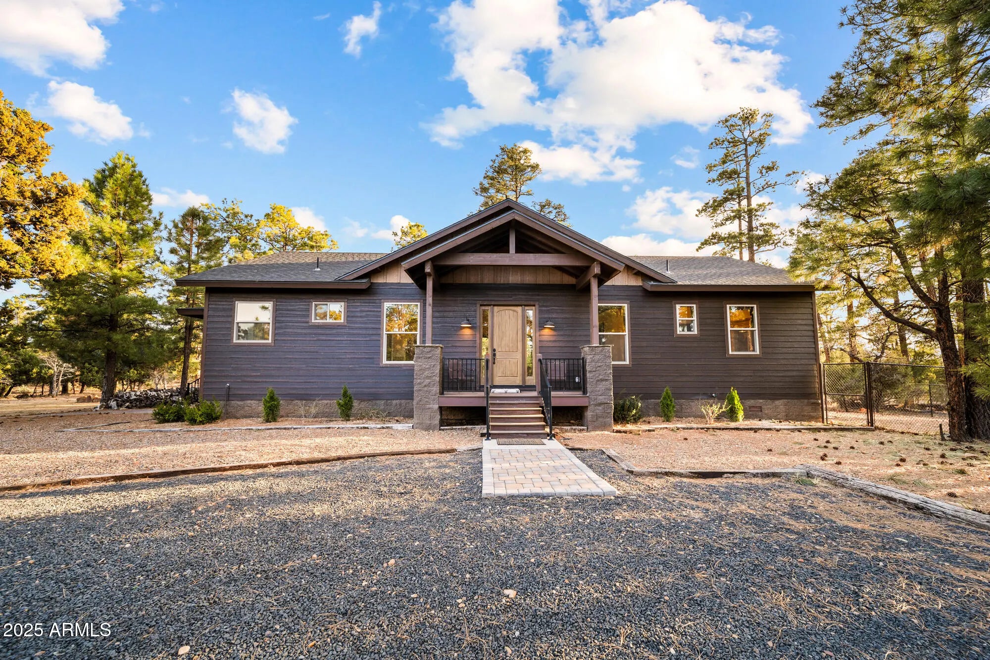 Welcome to your own private estate on a sprawling 5.2-acre parcel backing to the National Forest! This beautifully detailed 3 bedroom/2.5 bathroom (main home 2 bedrooms/2 baths) custom home features a custom sauna in the primary bath, vaulted tongue & groove wood ceilings, a gorgeous kitchen with large island, granite counters, & custom cabinetry & underlighting. All of this framed by breathtaking forest views. Step outside to enjoy the low maintenance Trex wraparound deck and expansive patio space complete with firepit & hot tub. The detached oversized garage includes a casita space with ½ bath, plus a 46' RV carport under roof. The acreage is fully fenced with an additional chain-link yard enclosure for pets. Truly an amazing property. This home is mountain living redefined!