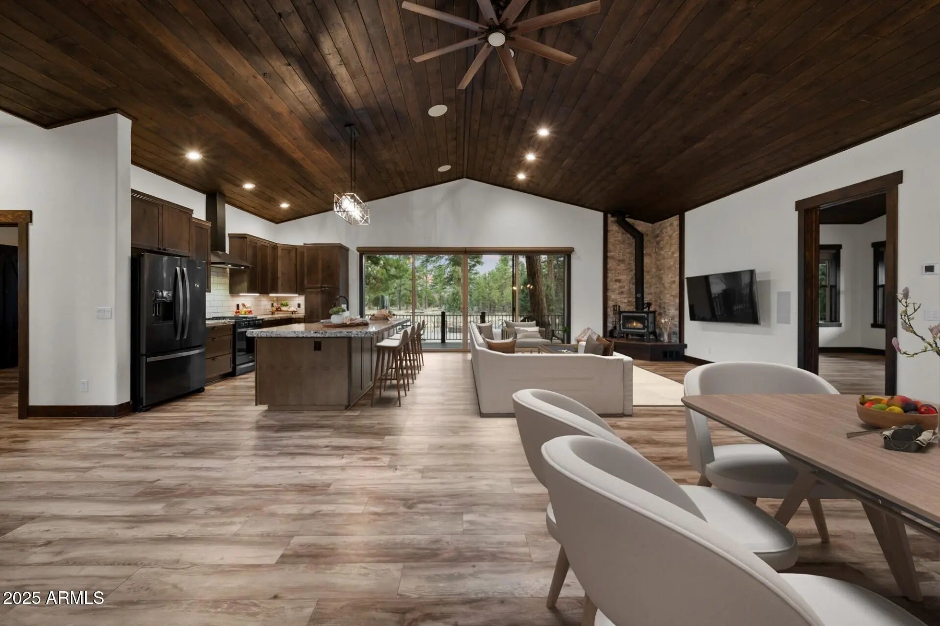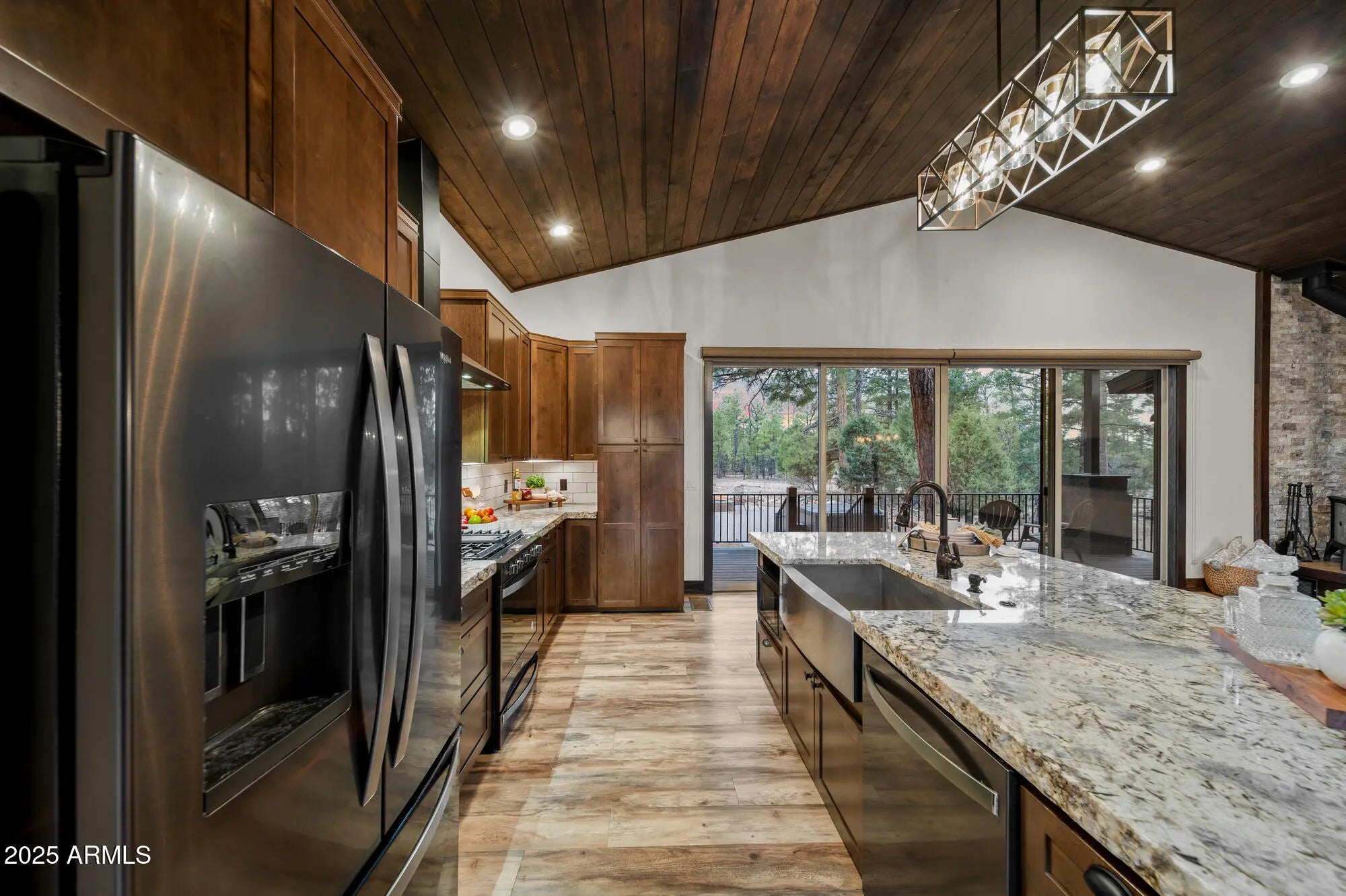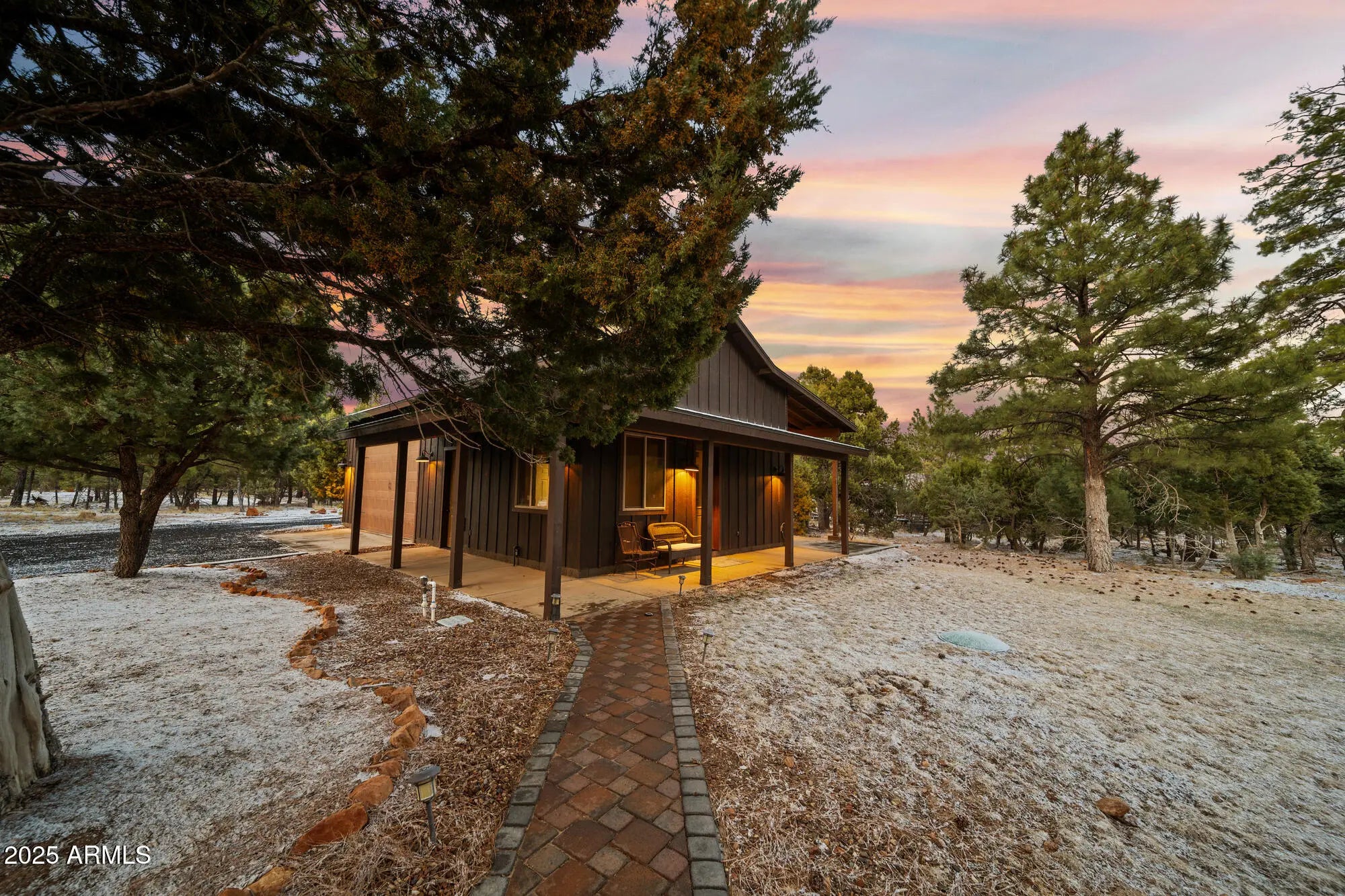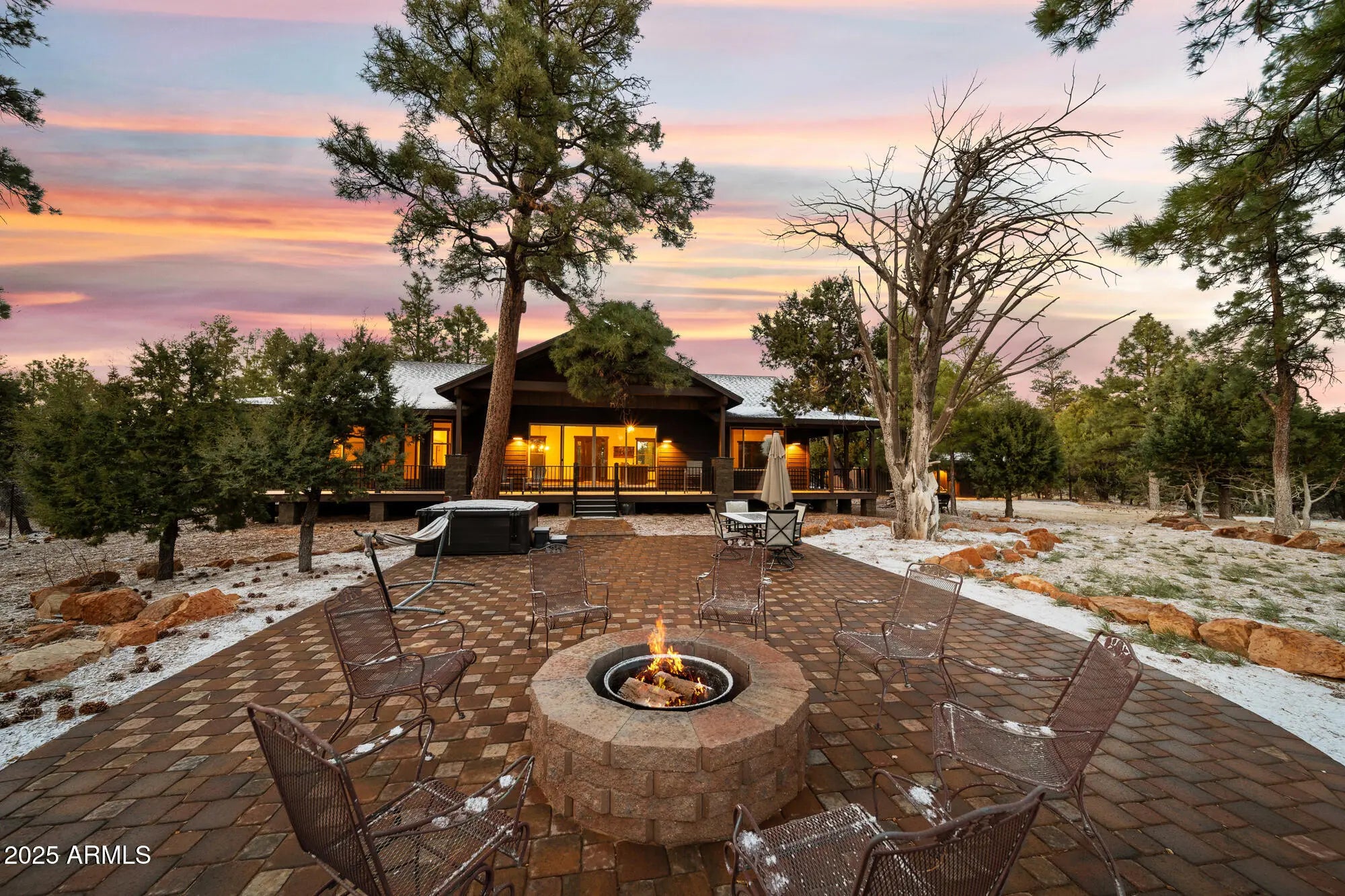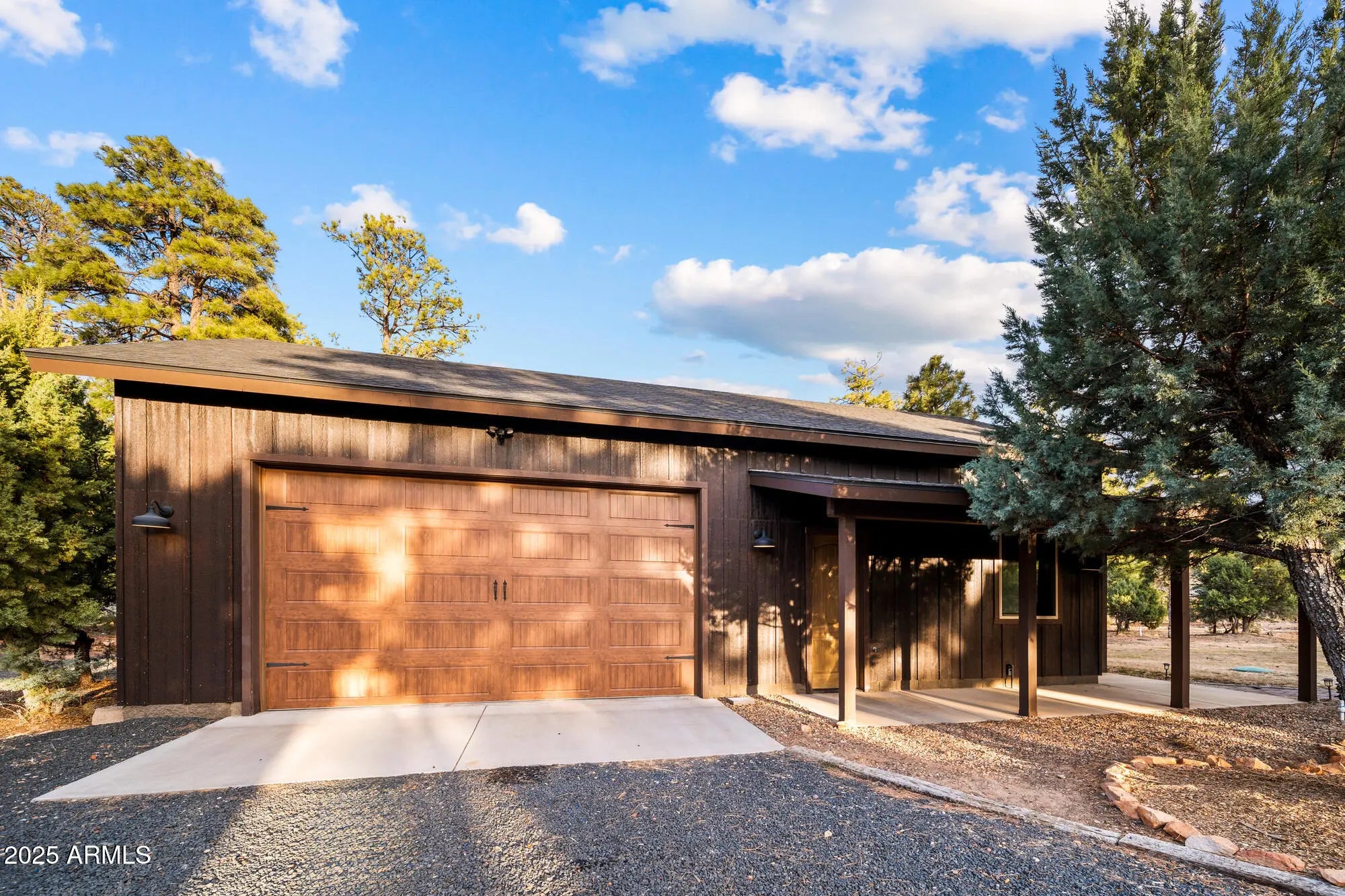 Welcome to your own private estate on a sprawling 5.2-acre parcel backing to the National Forest! This beautifully detailed 3 bedroom/2.5 bathroom (main home 2 bedrooms/2 baths) custom home features a custom sauna in the primary bath, vaulted tongue & groove wood ceilings, a gorgeous kitchen with large island, granite counters, & custom cabinetry & underlighting. All of this framed by breathtaking forest views. Step outside to enjoy the low maintenance Trex wraparound deck and expansive patio space complete with firepit & hot tub. The detached oversized garage includes a casita space with ½ bath, plus a 46' RV carport under roof. The acreage is fully fenced with an additional chain-link yard enclosure for pets. Truly an amazing property. This home is mountain living redefined!