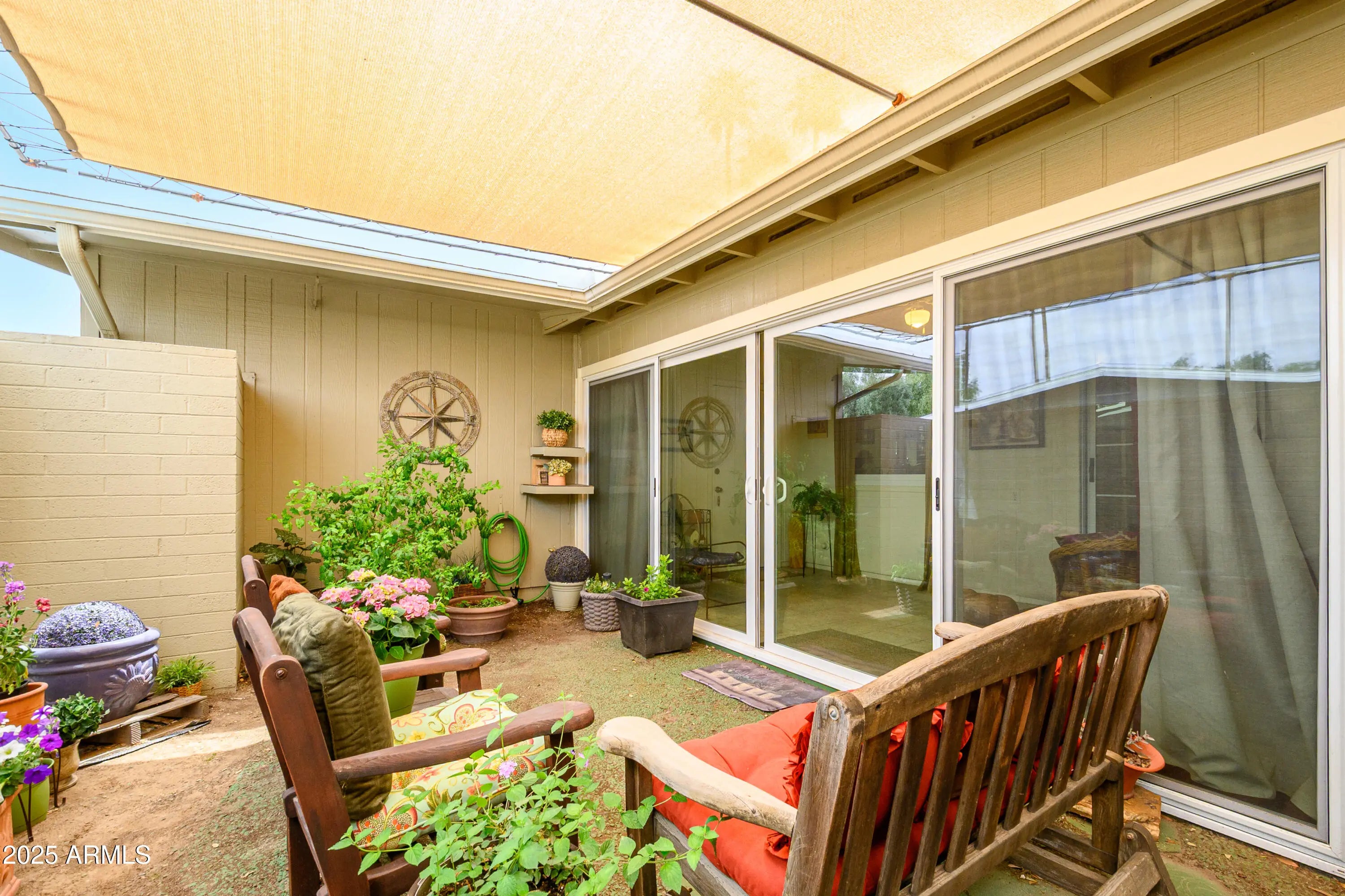 This home shows pride of ownership, boasting numerous exceptional features. It includes energy-efficient windows throughout, luxury vinyl flooring hardwood, and ample storage space. Additionally , it has a charming farm sink and private garden area perfect for enjoying the beautiful outdoor weather. Updates include new AC, new windows and patio doors, kitchen counters, and bronze faucet, new door handles and locks, a bath fan and patio sunscreen.