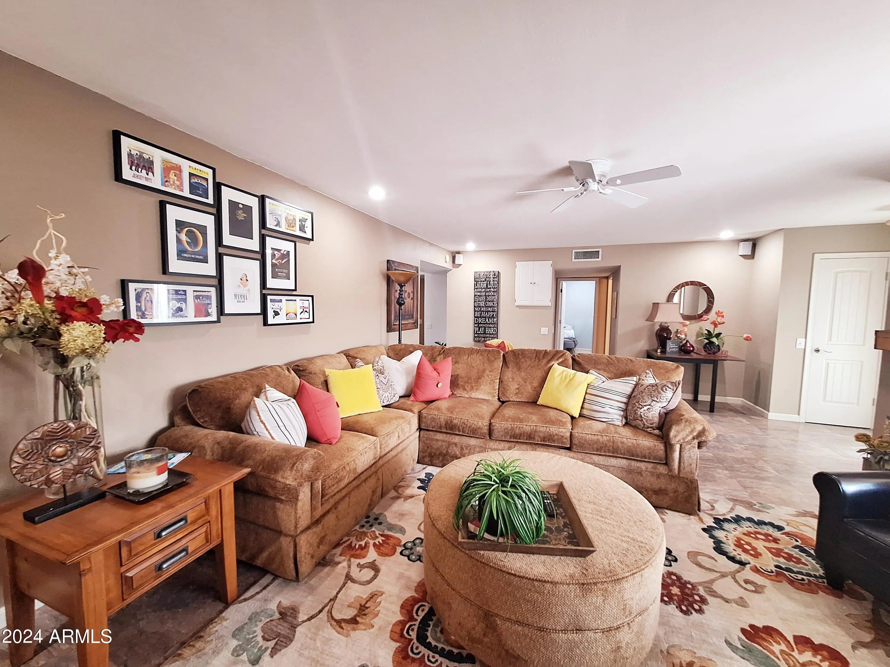 This home is currently booked Dec 2025 thru April 2026. Seasonal rates apply. Beautiful home fully furnished 2 bed and 2 bath seasonal rental near desirable Union Hills & 99th Ave. This home has been professionally decorated with special touches throughout! Relax with a 75'' Flat screen TV in living room for streaming your favorite movies. Comfy King in Master and Queen in Guest bedroom. Everything you need including full size and smaller appliances, dishes and utensils, all linens, blankets and towels, just bring your suitcase! Modern touches make this a popular winter rental, year after year. Private patio in back for lounging outside, and a 2-car garage! Centrally located and close (but not too close) to access highways like the 101. Short-term seasonal fully priced rental non-seasonal pricing for $2500. Pricing for December through May is $3,500.00 This home won't disappoint! Sun City is a 55+ Active Adult Community with 9 rec centers and 8 golf courses waiting for you!