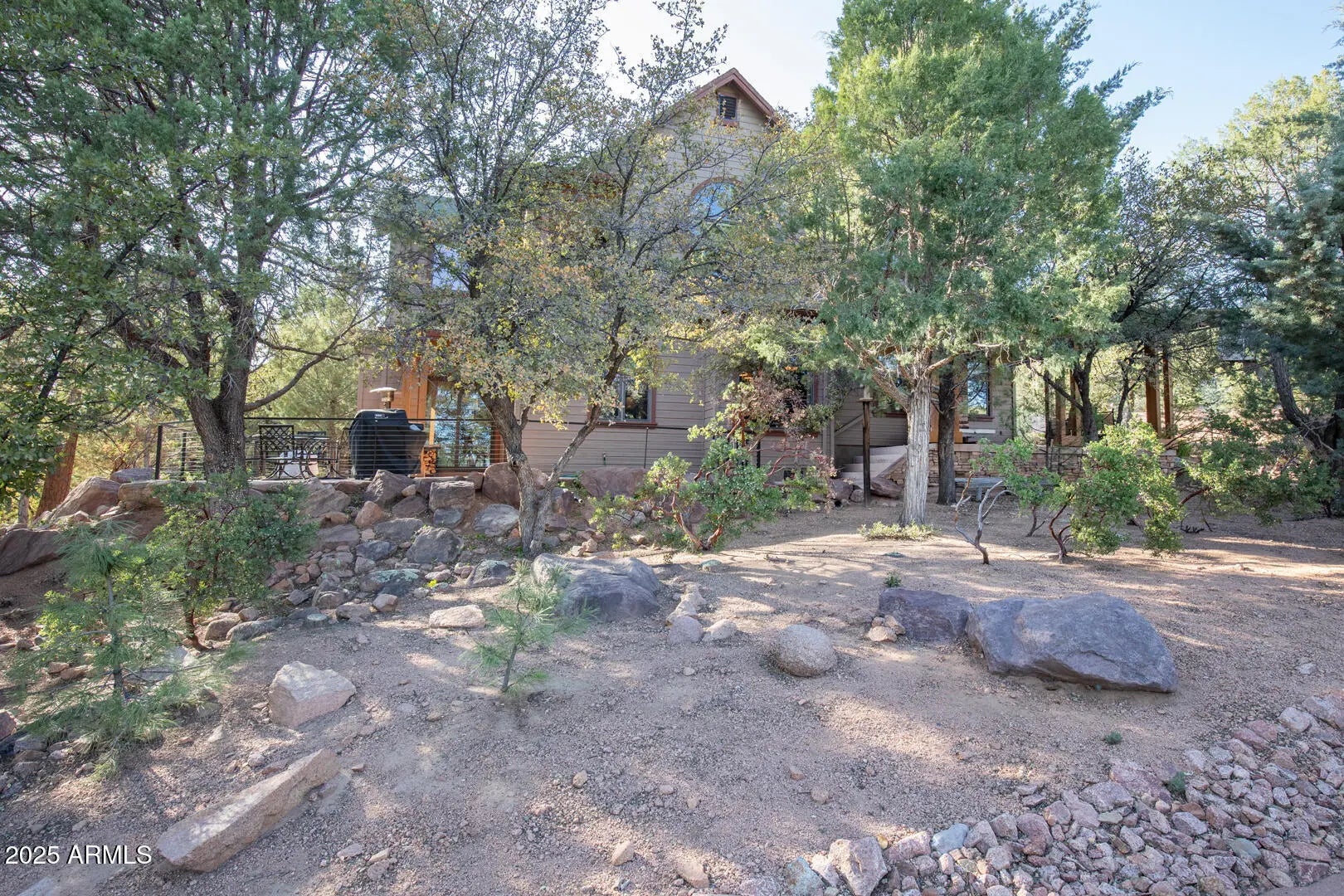 Stunning Custom Home in Gated Chaparral Pines Golf Community - Payson, Arizona. Nestled in the woods of the prestigious gated Chaparral Pines community, this exquisite custom home offers the perfect balance of luxury, privacy, and resort-style living. Upon entry, you're greeted by soaring 20+ ft ceilings and a grand stone fireplace that sets a warm, welcoming tone. The expansive Pella windows throughout the home bring the beauty of nature indoors, filling each room with natural light and stunning views of the towering Ponderosa pines. With over 2,900 sq ft of meticulously designed living space, this home features dazzling Brazilian Cherry hardwood floors, solid Alder doors, and unique artistic touches that elevat The gourmet kitchen is a true centerpiece, boasting granite countertops, custom tile work, a wet bar, and a spacious walk-in pantry. Adjacent to the kitchen is an open dining area, perfect for entertaining, with easy access to a stylish powder room for guests. The master suite is a luxurious retreat on the main level, offering serene privacy and access to the back patio. Upstairs, two guest bedrooms each feature their own ensuite baths and walk-in closets, ensuring comfort for family and visitors. A cozy loft living area provides additional space for relaxation. Step outside and enjoy the privacy of the wrap-around porch, ideal for evening BBQs and surrounded by mature trees, including majestic pines. The upstairs deck offers breathtaking mountain views, making it the perfect spot for morning coffee or stargazing at night. Additional features include custom remote-controlled motorized blinds, wool Berber carpeting in the bedrooms, and custom wrought iron banisters. With its beautiful blend of rustic charm and refined elegance, this home is the perfect sanctuary for seasonal or full-time residents. If you're seeking the ultimate private getaway or year-round residence in Chaparral Pines, this home is truly a must-see!