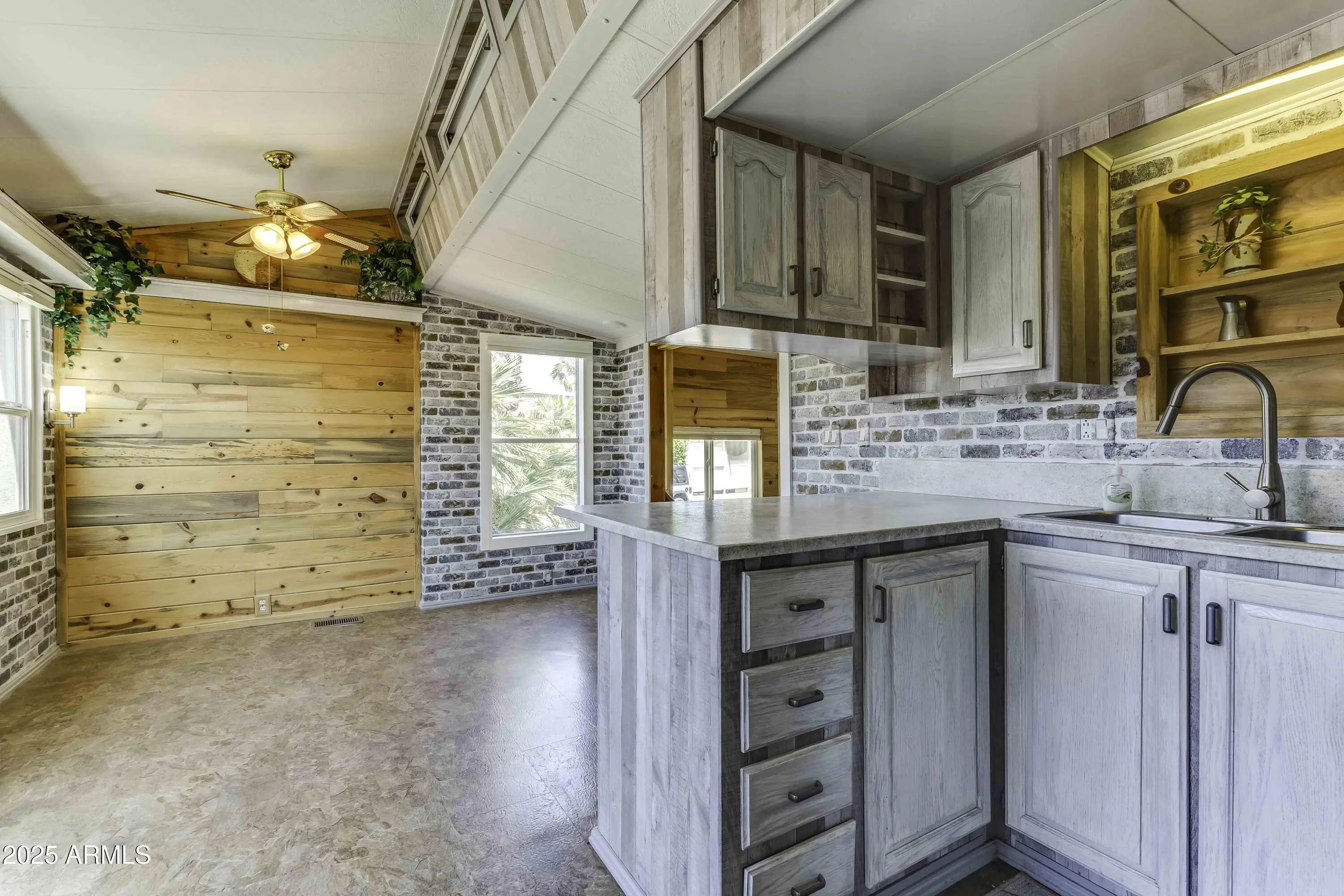 A very unique and special 1 br/2b PM/AZ located on the desirable GREEN BELT!!!! Such a relaxing and calming place- just sitting in the back while time slowly passes by. The 900+ interior is distinctive in many ways with the Blue Pine wall package. So many upgrades done to this home that are too many to list. A large family room with an alcove for your office and an enclosed room in the back for craft projects.