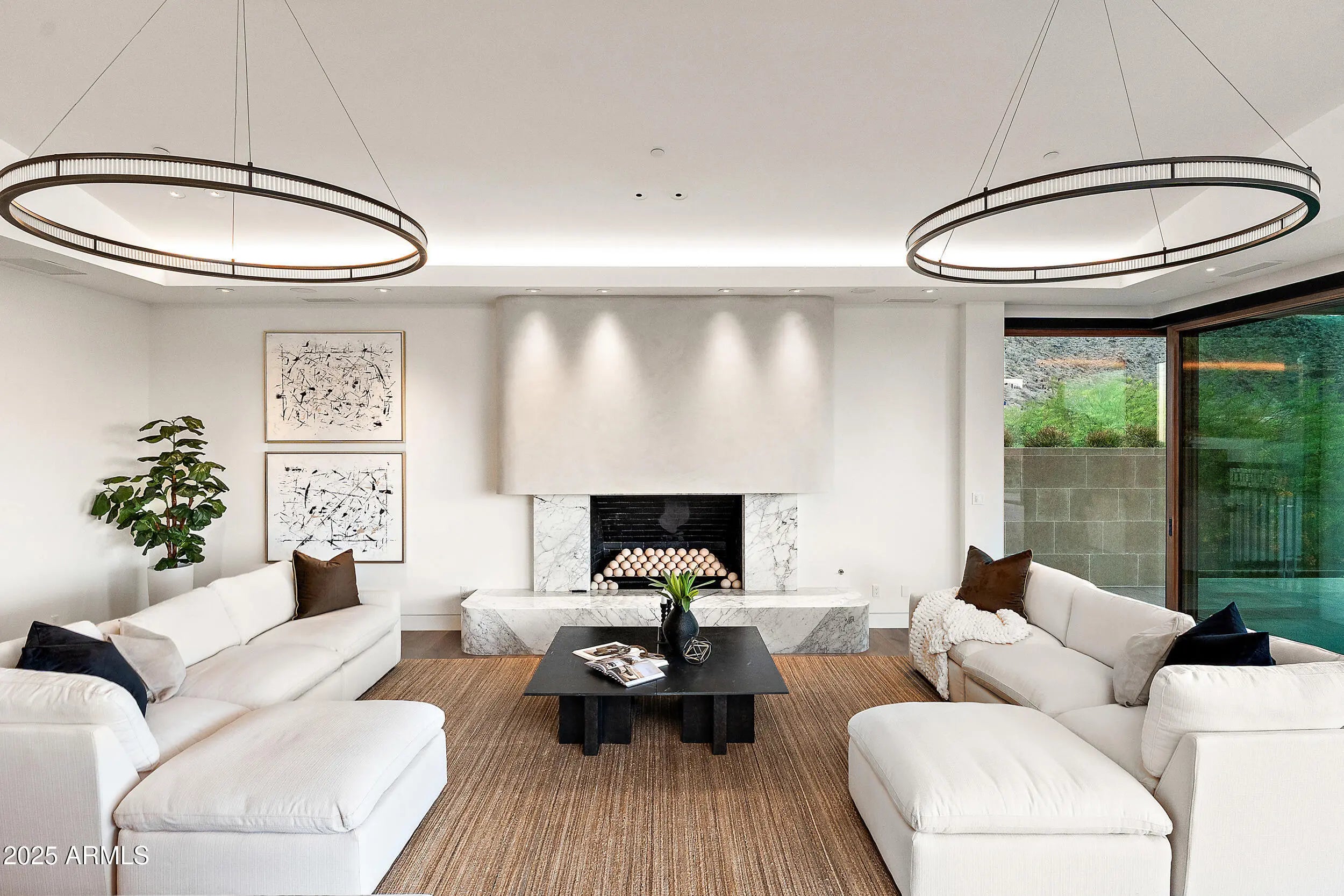 Perched high in the prestigious Tatum Canyon, this modern organic estate by MDF Development has been masterfully reimagined to blend bold architecture, unrivaled seclusion, and sweeping views of Mummy Mountain and beyond. Perfectly positioned in the heart of Paradise Valley, the residence strikes the ideal balance between striking design and effortless livability. From the very first impression, the home commands attention. A dramatic approach unfolds into a gated six-car motor court, framed by native desert landscaping and the clean, timeless lines of its contemporary façade. The arrival experience is unmistakable—elevated, private, and uncompromisingly exclusive. Inside, the home opens to soaring ceilings, wide open spaces, and walls of glass that frame panoramic desert views. Designed for both elegance and ease, the layout offers four en suite bedrooms, each with custom closets and private baths finished in timeless, natural materials. The primary suite is a private retreat with generous proportions, serene views, and a spa-like bathroom that connects effortlessly to the outdoors. The main living spaces are designed around seamless indoor-outdoor flow, anchored by a dramatic great room and retractable glass walls that open to expansive patios and lounging areas. The chef's kitchen is outfitted with Gaggenau and Sub-Zero appliances, custom cabinetry, and a large central islandperfect for entertaining or casual everyday living. A temperature-controlled wine room adds a refined touch, offering elegant storage and display for curated collections. Lutron smart home integration allows for intuitive control of lighting and shades, tailored to every mood and moment. Behind the scenes, the home is built to a commercial standard with a robust mechanical system that ensures long-term performance and comfort. A 500-gallon reserve water supply provides added peace of mindrarely seen in residential design at this level. Discreet security features include a full walk-in bank vault safe, offering secure storage for high-value items or collections. Every element of this propertyfrom its commanding entry to its thoughtful systemshas been designed for those who expect more. With world-class views, resort-style livability, and top-tier finishes throughout, this is one of Paradise Valley's true modern desert gems.