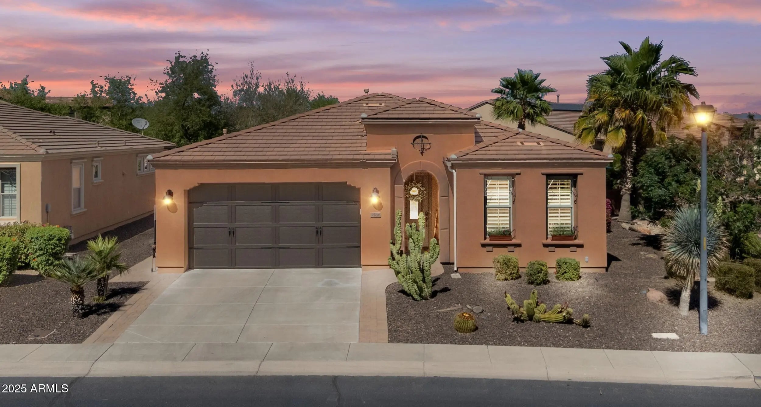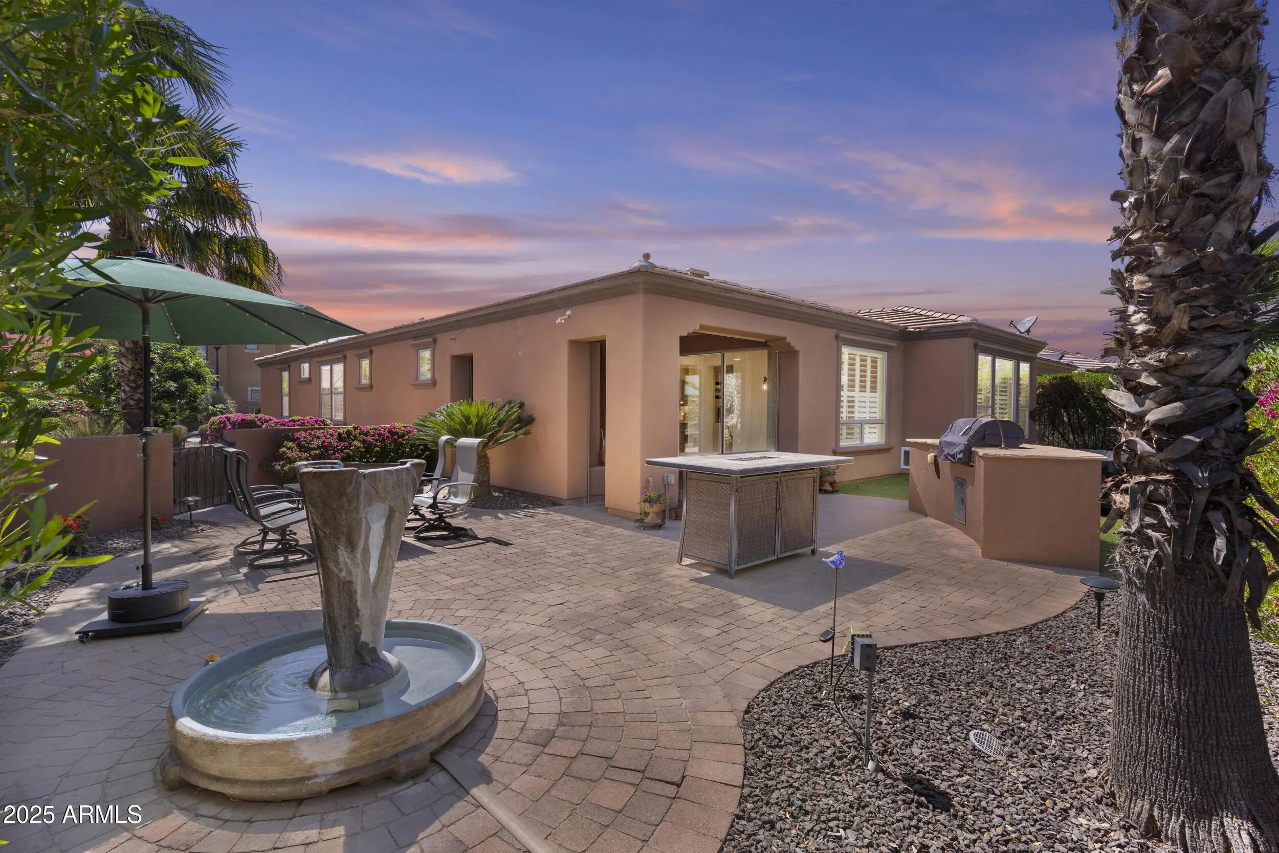 Welcome to Your Dream Home in the gated private golf community of Encanterra with resort style living! This highly-upgraded ''Nice'' floor plan sits on a premium 8,700 sq ft corner lot & features a 5KW owned solar system, saving you money year-round. Over $180,000 in upgrades include a stunning gourmet kitchen w/granite countertops, upgraded cabinetry, pull-out drawers & large island. Spacious great room w/surround sound & a rolling wall of glass perfect for indoor/outdoor entertaining. An extended dining area also opens to a covered patio w/gas fireplace & motorized shades, perfect for Arizona evenings. Owner's suite with dual vanities and large walk-in shower. Secondary suite w/private bathroom. additional room perfect for an office or an additional sitting room. The fully fenced backyard is an entertainer's paradise w/custom turf lawn, fountain, built-in gas BBQ, & a hot tub complete the retreat. Large garage w/built-in cabinets for extra storage. Enjoy the Good Life at Encanterra! Community amenities galore!