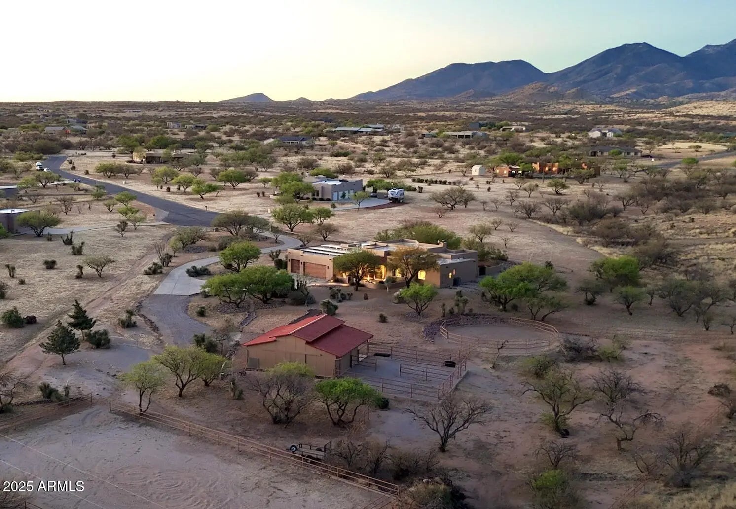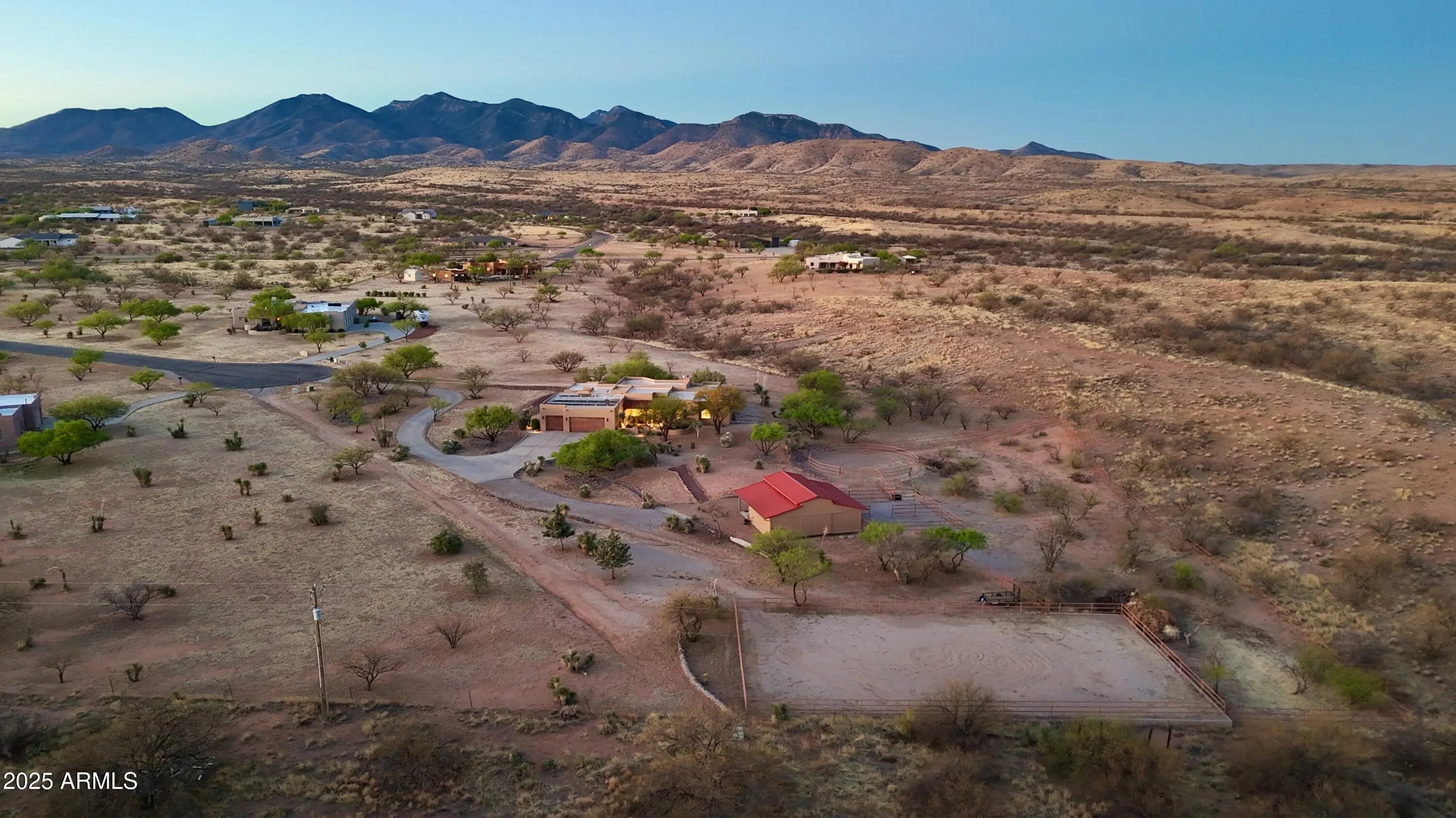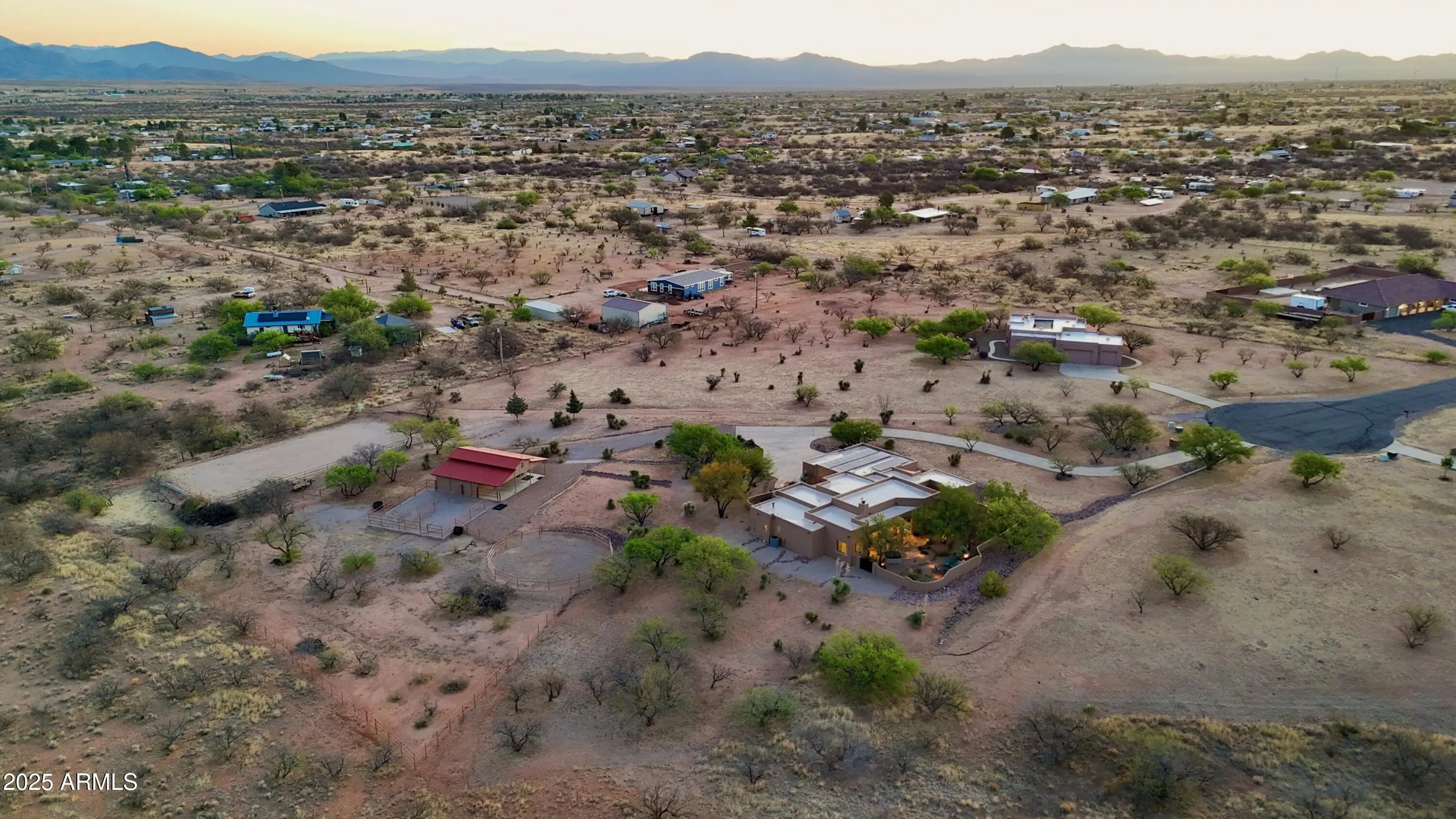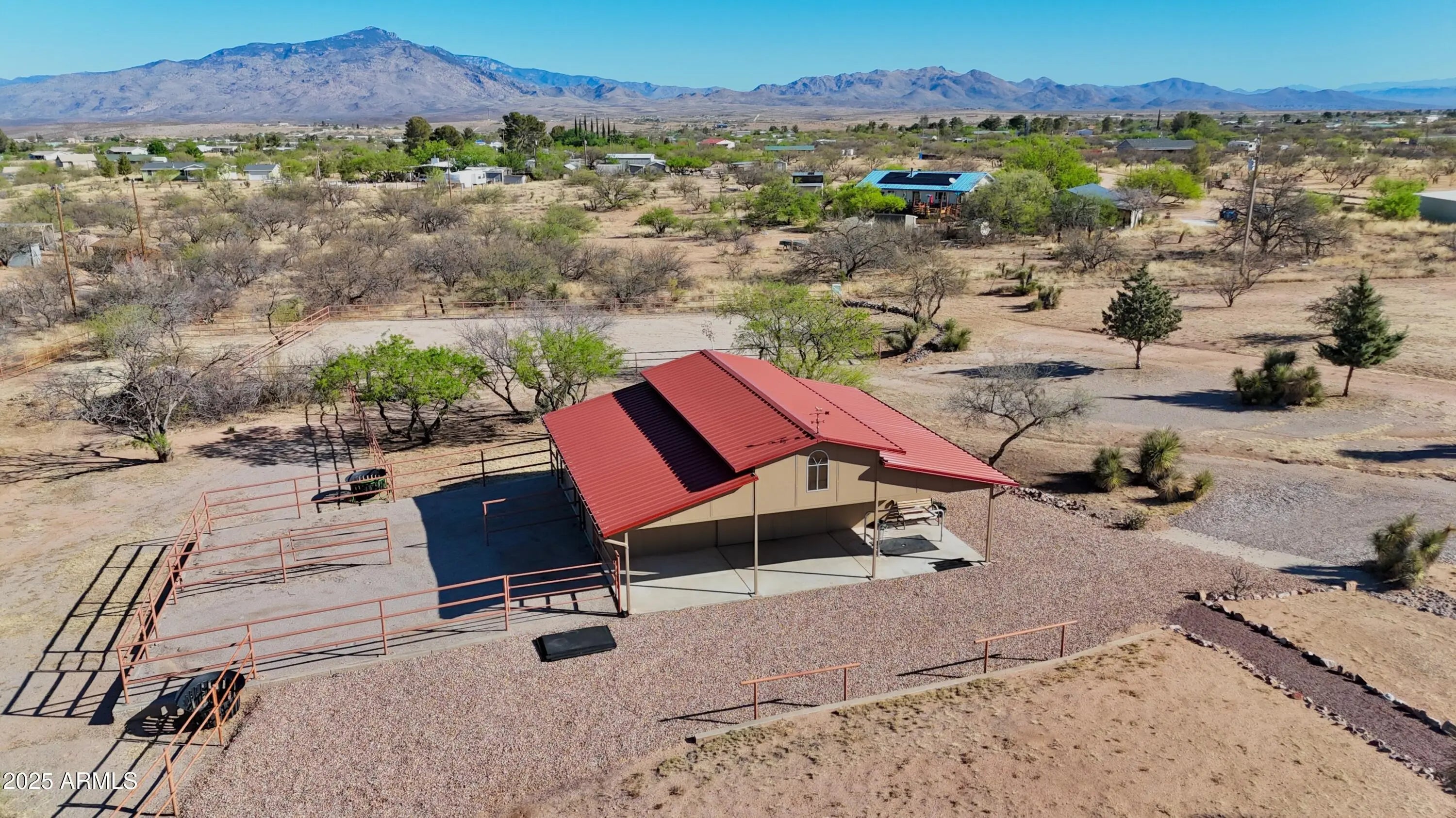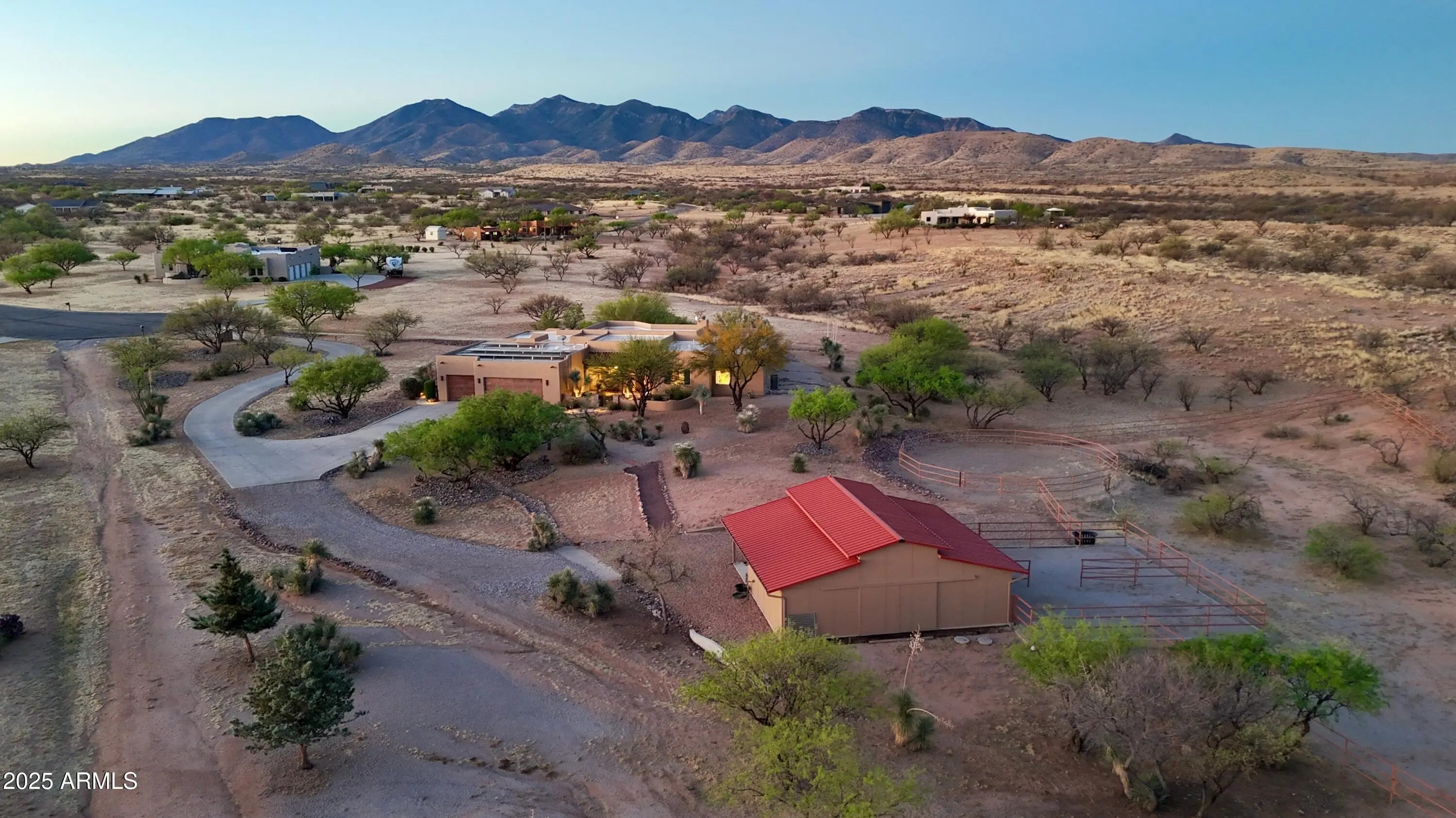 Your Dream Home in Red Hawk at JSix Ranch Awaits! Nestled at the end of a quiet cul-de-sac, this custom-built Southwest Contemporary retreat offers elegance, comfort, and plenty of space for both living and entertaining. Inside, you'll find 3 bedrooms, 4 bathrooms, plus a private guest casita (1 bed/1 bath) - perfect for visiting family or friends. High-end finishes flow throughout, including travertine flooring, granite countertops, alder cabinetry, and premium KitchenAid stainless steel appliances. The oversized primary suite is a true escape with a cozy sitting area, direct access to the patio, a large walk-in closet, and a spa-like bath featuring a luxurious walk-in shower and a deep jetted tub. Expansive windows along the back of the home flood the living spaces with natural light and showcase serene desert views. Practical touches include a three-car oversized garage (roomy enough for a large truck) and owned solar panels that dramatically reduce energy costs. Step outside to enjoy covered patios front and back, perfect for watching sunrises, sunsets, and the deer that wander by daily. For equestrian enthusiasts, the property features a well-designed barn with two stalls and automatic waterers, a wash rack, storage area, and a temperature-controlled tack room with hot water. Additional amenities include paddocks off the stalls, a round pen, a large turnout space, and a pipe-fenced arena - everything you need for your horses. Both the interior and exterior were freshly painted within the last two years, ensuring a move-in-ready experience. Bonus: An adjacent 3.46-acre parcel is also available with this property, offering even more room to expand.