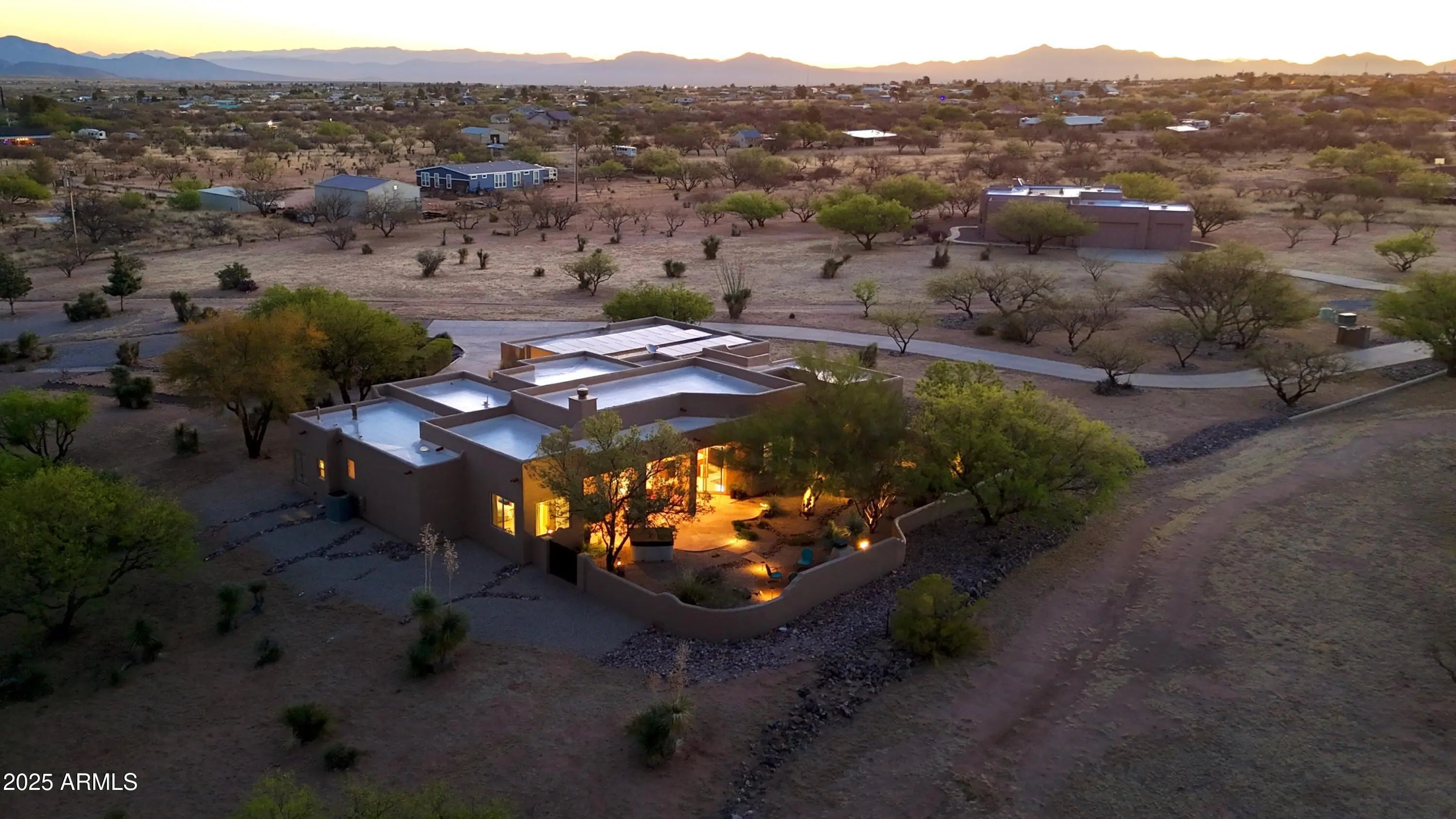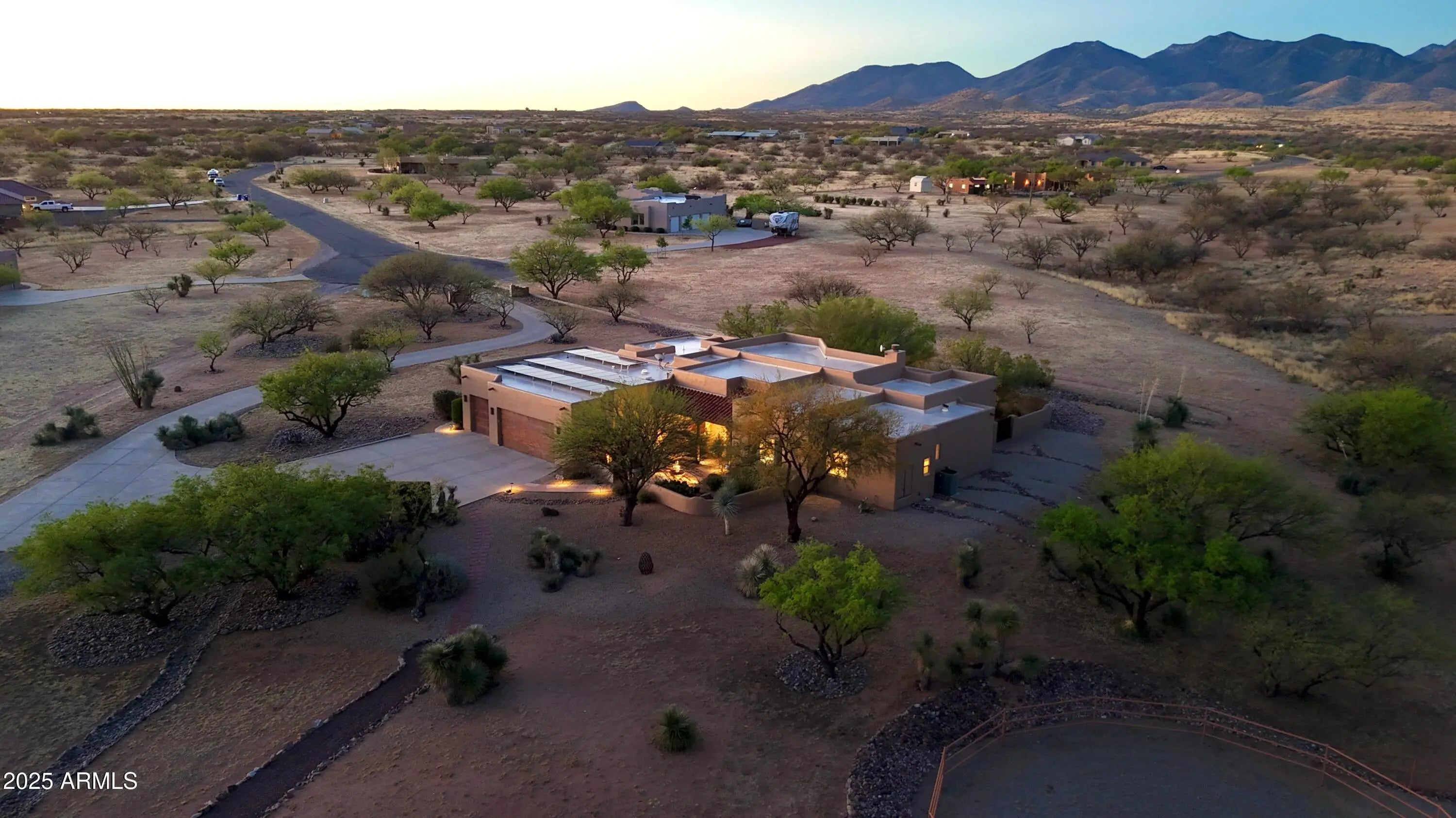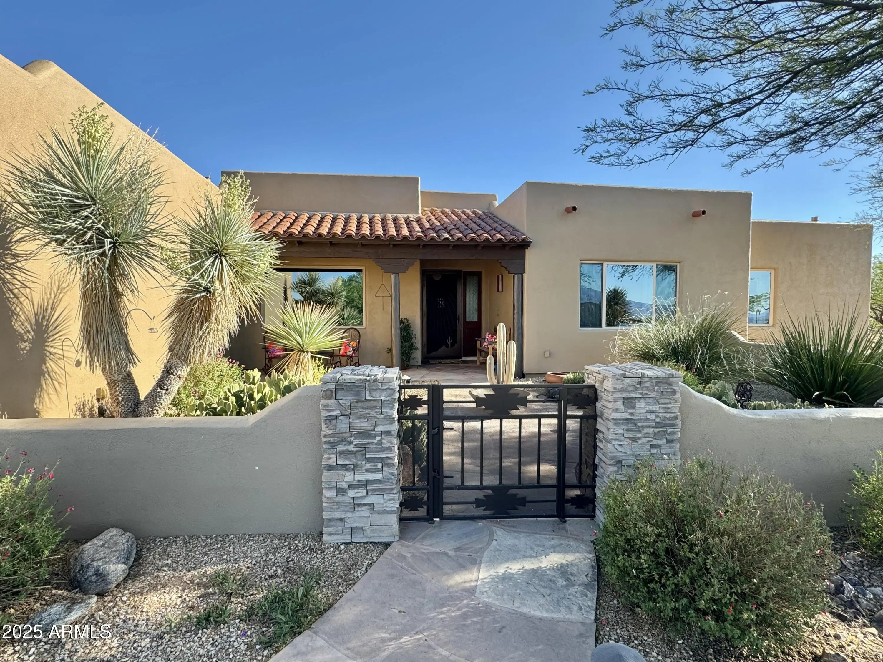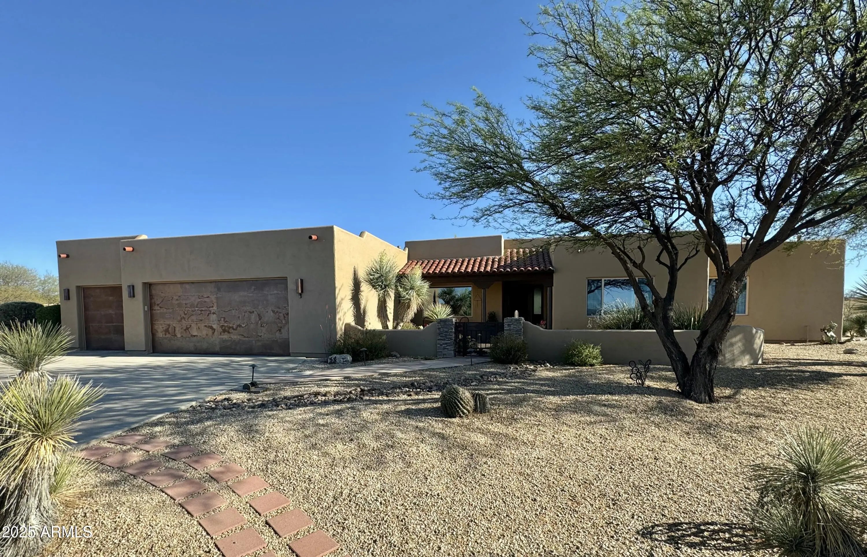 Your Dream Home in Red Hawk at JSix Ranch Awaits! Nestled at the end of a quiet cul-de-sac, this custom-built Southwest Contemporary retreat offers elegance, comfort, and plenty of space for both living and entertaining. Inside, you'll find 3 bedrooms, 4 bathrooms, plus a private guest casita (1 bed/1 bath) - perfect for visiting family or friends. High-end finishes flow throughout, including travertine flooring, granite countertops, alder cabinetry, and premium KitchenAid stainless steel appliances. The oversized primary suite is a true escape with a cozy sitting area, direct access to the patio, a large walk-in closet, and a spa-like bath featuring a luxurious walk-in shower and a deep jetted tub. Expansive windows along the back of the home flood the living spaces with natural light and showcase serene desert views. Practical touches include a three-car oversized garage (roomy enough for a large truck) and owned solar panels that dramatically reduce energy costs. Step outside to enjoy covered patios front and back, perfect for watching sunrises, sunsets, and the deer that wander by daily. For equestrian enthusiasts, the property features a well-designed barn with two stalls and automatic waterers, a wash rack, storage area, and a temperature-controlled tack room with hot water. Additional amenities include paddocks off the stalls, a round pen, a large turnout space, and a pipe-fenced arena - everything you need for your horses. Both the interior and exterior were freshly painted within the last two years, ensuring a move-in-ready experience. Bonus: An adjacent 3.46-acre parcel is also available with this property, offering even more room to expand.