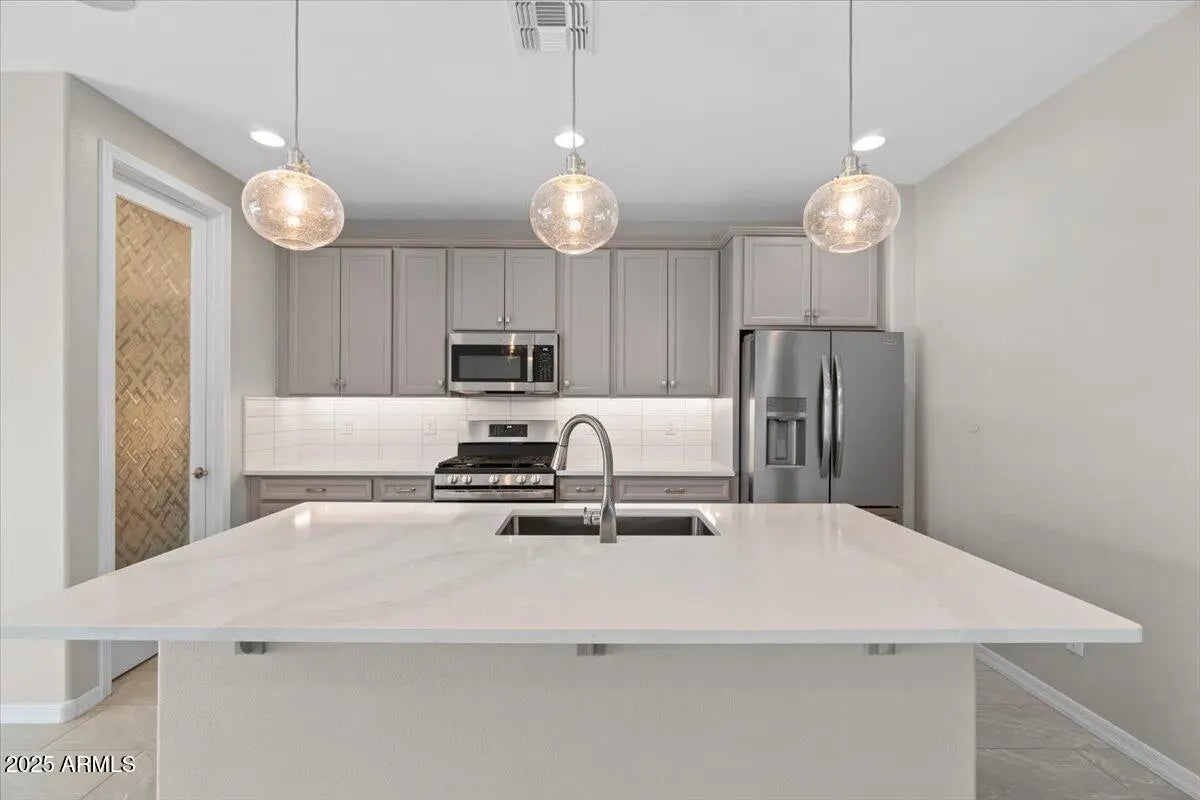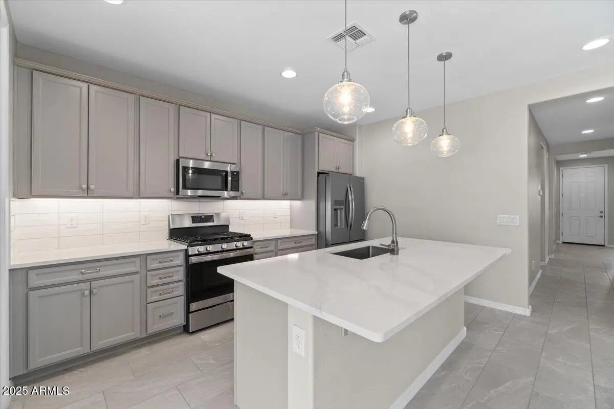 SELLER WILLING TO PAY SOLAR, OFFER CONCESSIONS, AND VERY MOTIVATED -- BRING YOUR OFFER. This beautiful, move-in-ready 3-bed, 2-bath home offers an incredible opportunity, including a 4.25% VA assumable loan available. Located in a gated community and loaded with over $100,000 in upgrades, this 2022 build is truly better than new. Just minutes from Westgate, State Farm Stadium, Topgolf, and the new VAI Resort, the home delivers unbeatable convenience to the best of Litchfield Park living. Inside, you'll find quartz countertops, stainless steel appliances, a spacious walk-in pantry, custom motorized blinds, surround sound, upgraded tile flooring, and fresh paint throughout. The exterior features permanent app-controlled lighting for year-round ambiance, plus a fully insulated 3-car tandem garage with its own A/C mini-split system, an extended paver driveway, and transferable solar panels for improved energy efficiency. With a motivated seller ready to make a deal, this home offers exceptional value. Bring your offer and make it yours.