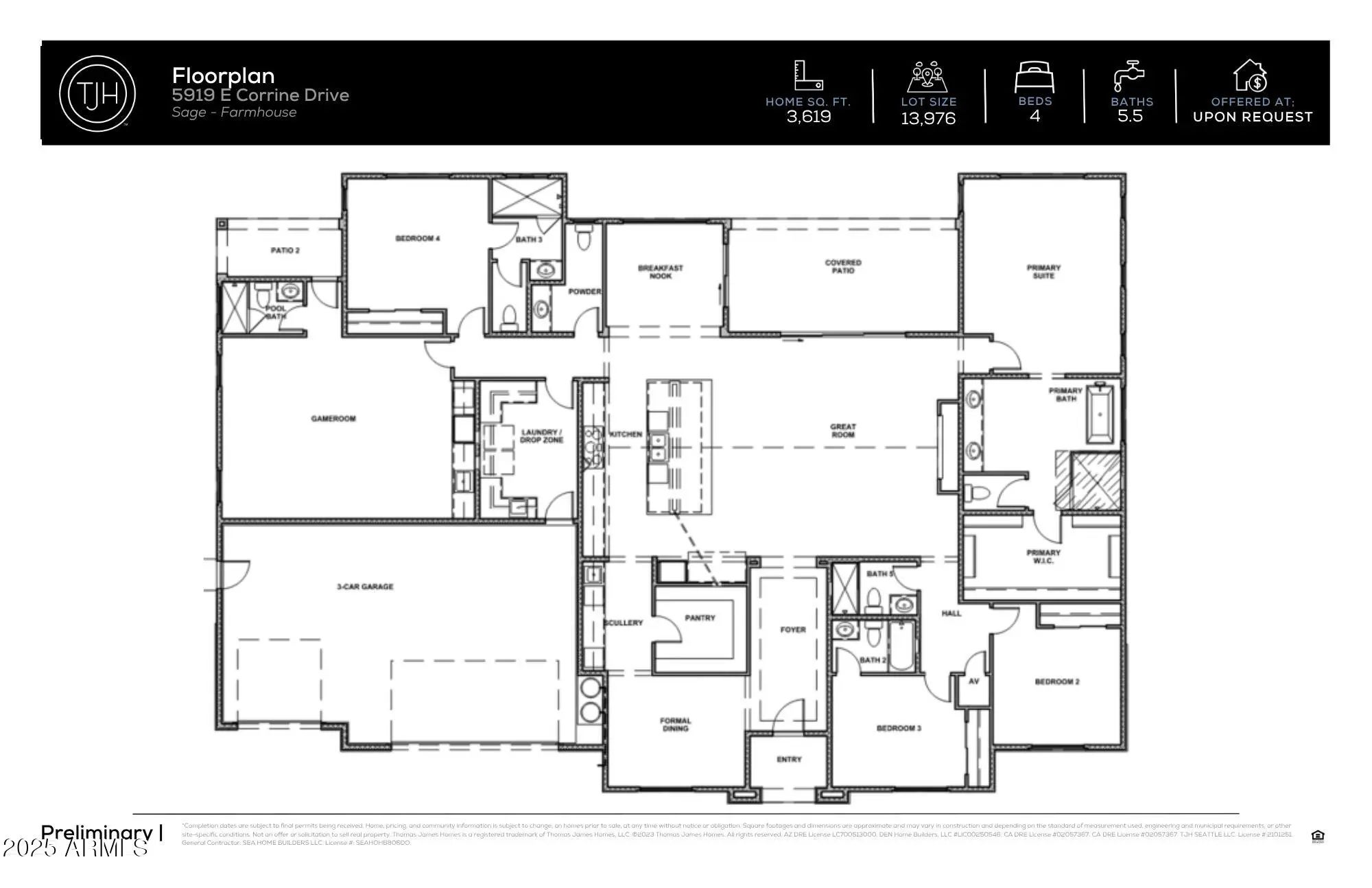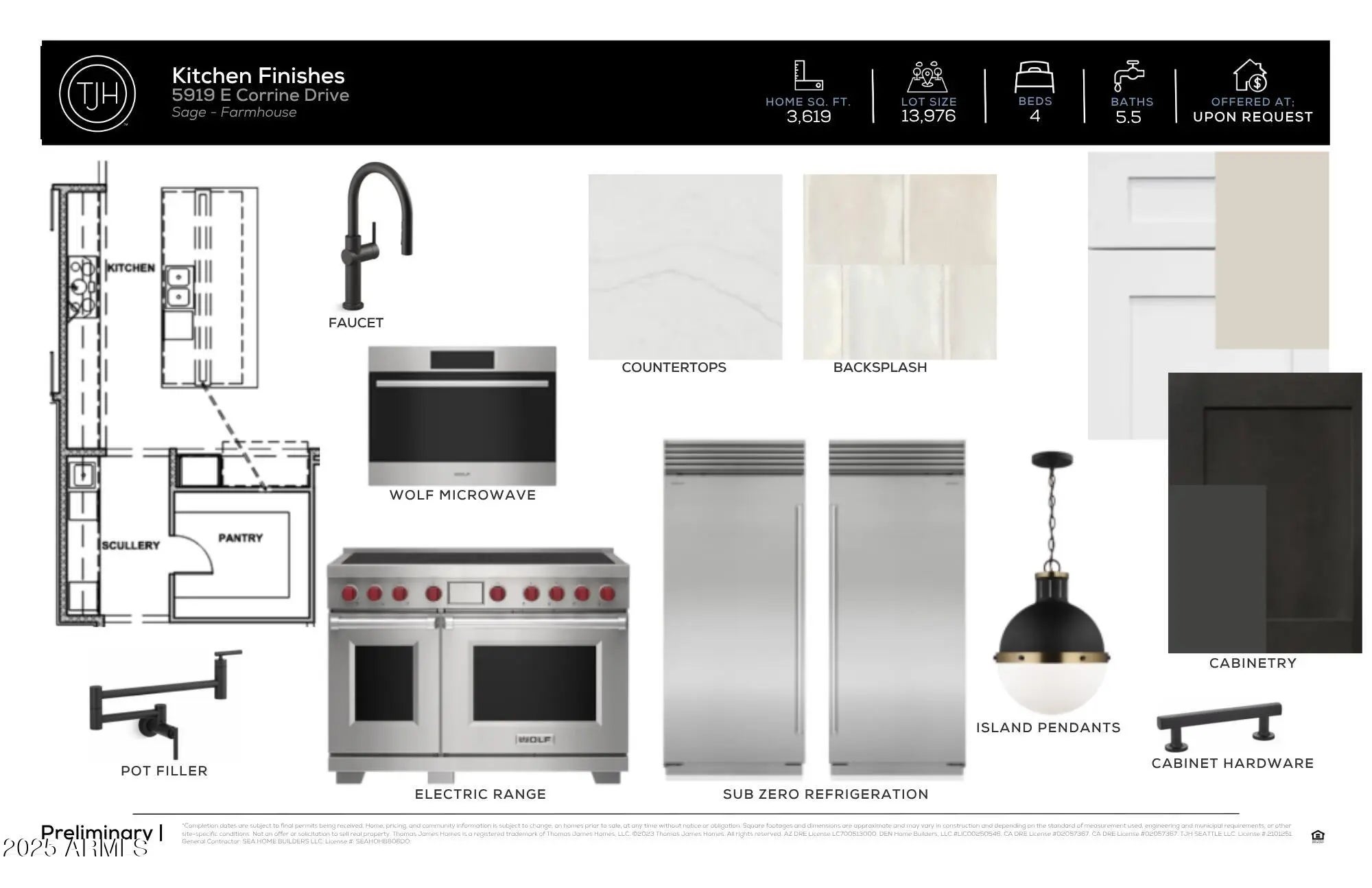 Thomas James Homes proudly presents this stunning pre-construction residence, offering you the rare opportunity to personalize select interior finishes during the early stages of construction! This 4-bedroom, 5.5 bath one level home boasts a striking Farmhouse elevation, blending clean lines and timeless design. 3,619 sq. ft, attached casita and a 3 car garage! The interior features light oak wood flooring, creating a warm, inviting atmosphere throughout. The heart of the home is a chef's kitchen, designed for culinary enthusiasts, complete with Wolf Sub-Zero appliances and sleek finishes. Step outside to your professionally designed backyard oasis featuring lush landscaping and a sparkling pool. Located in Scottsdale, this home offers a perfect blend of luxury and convenience. Completion is estimated early 2026, making now the perfect time to envision your future in this exceptional home.