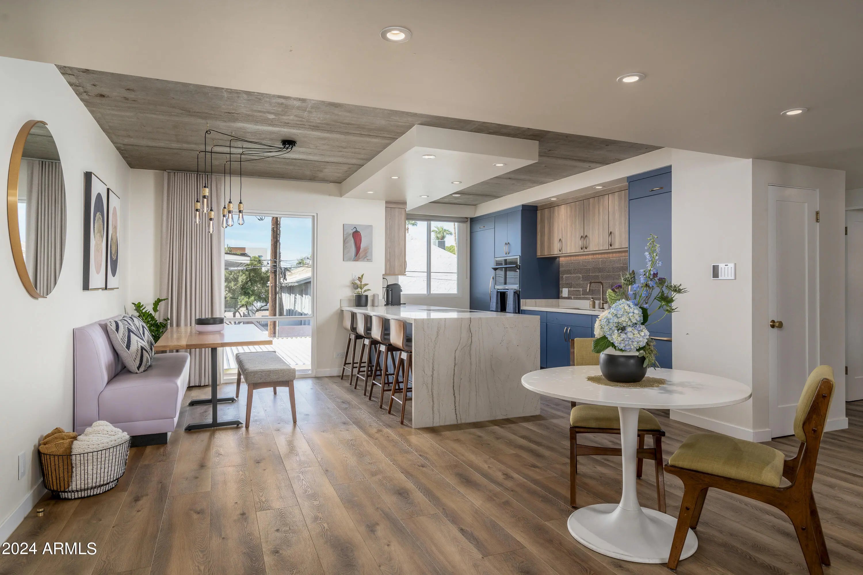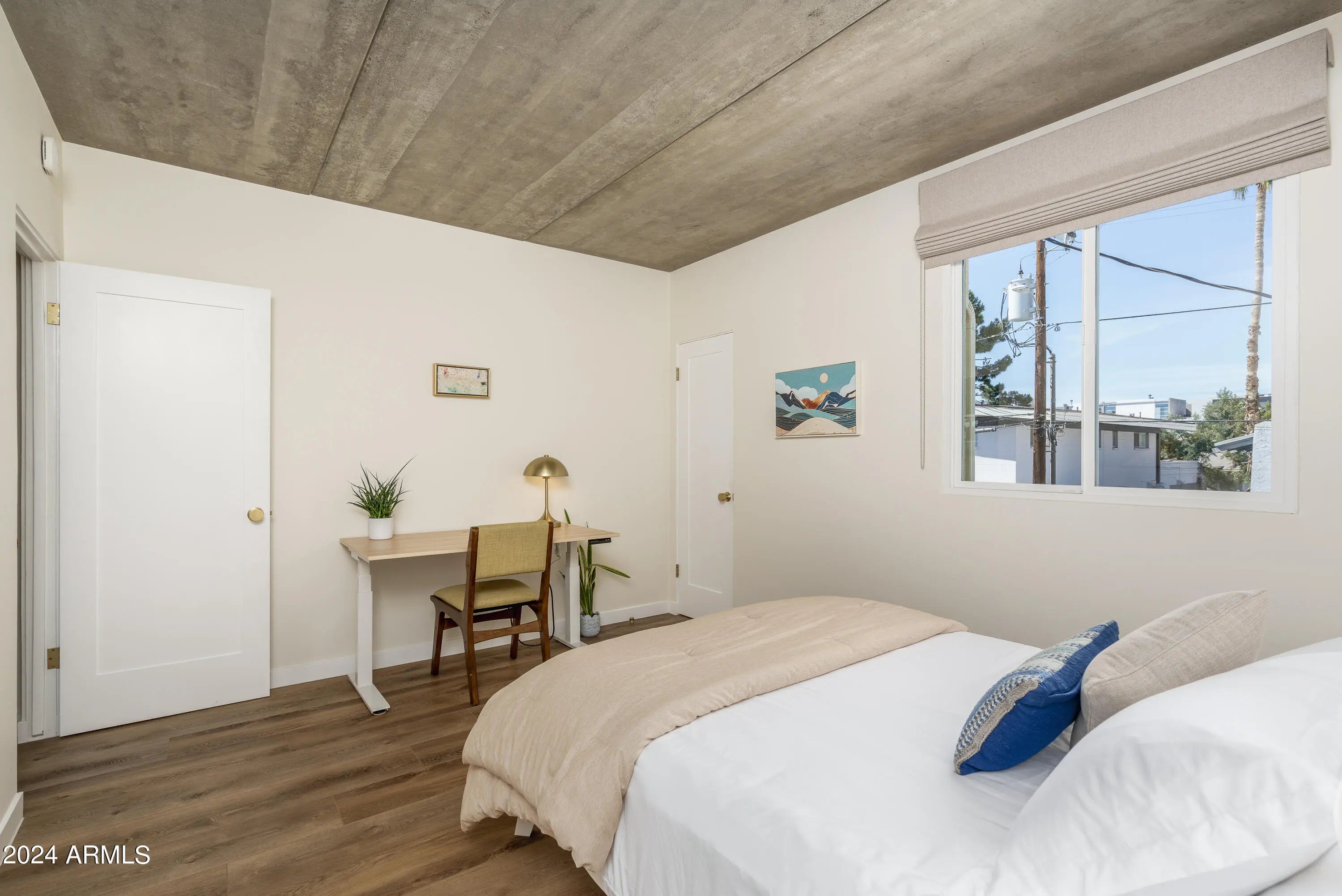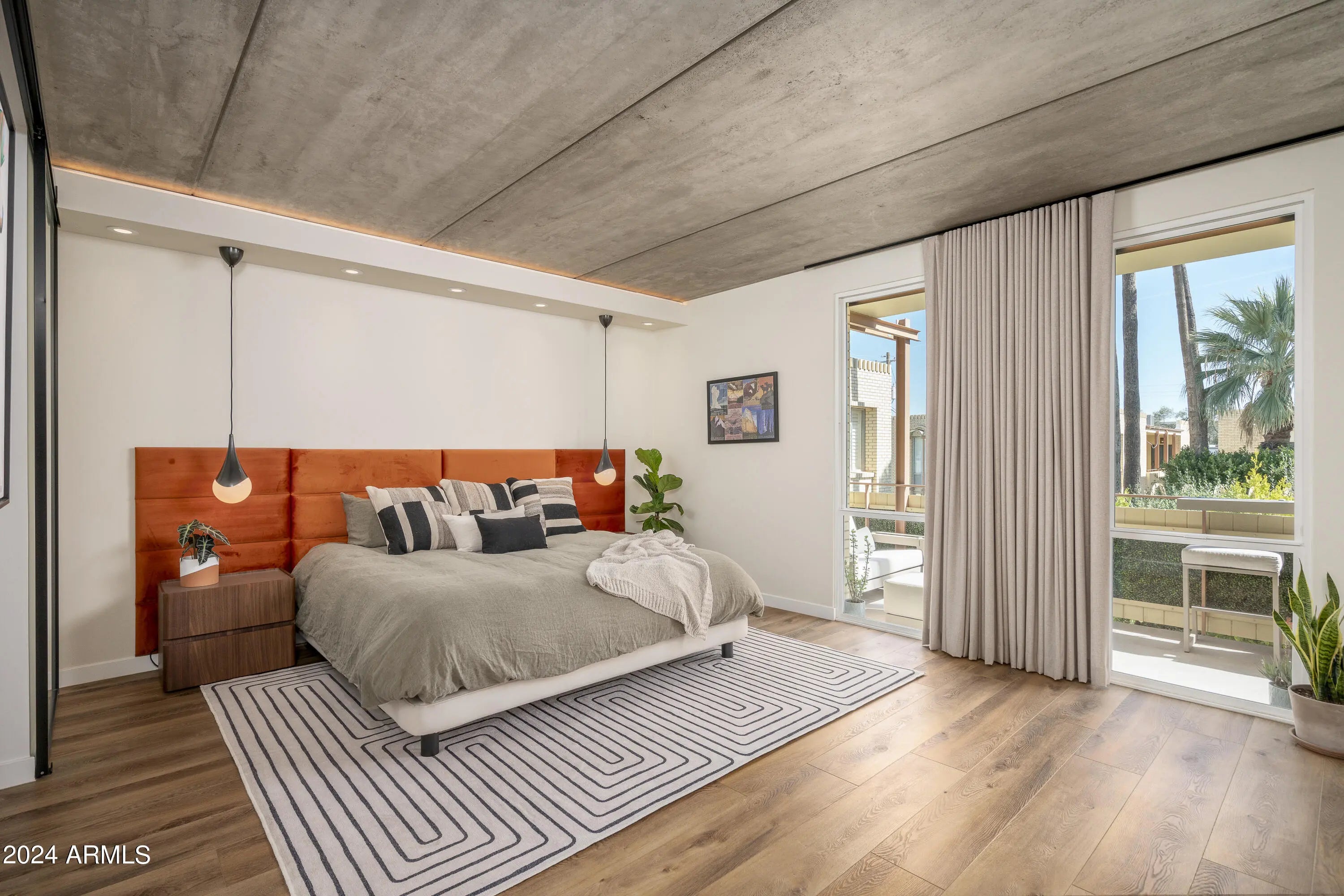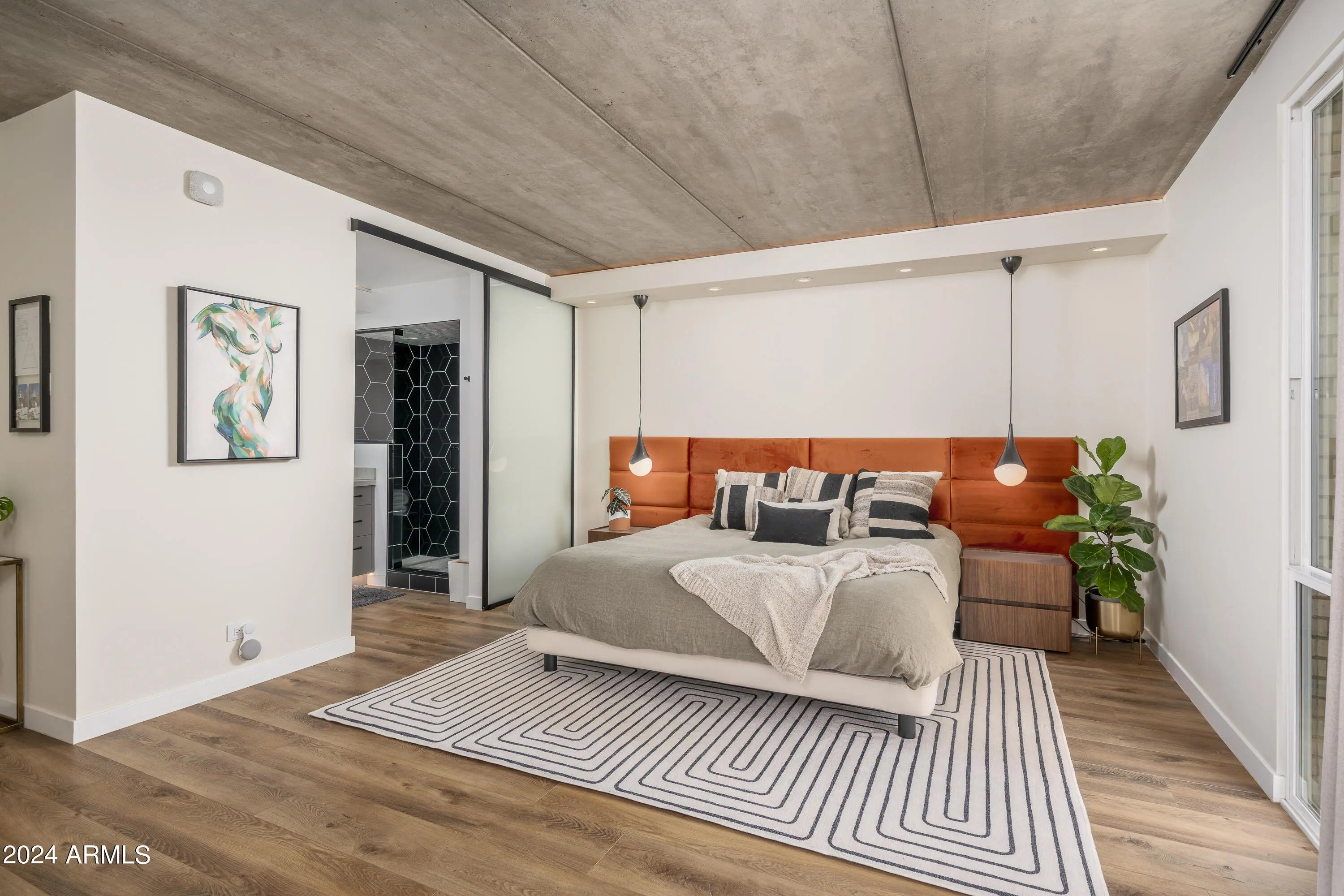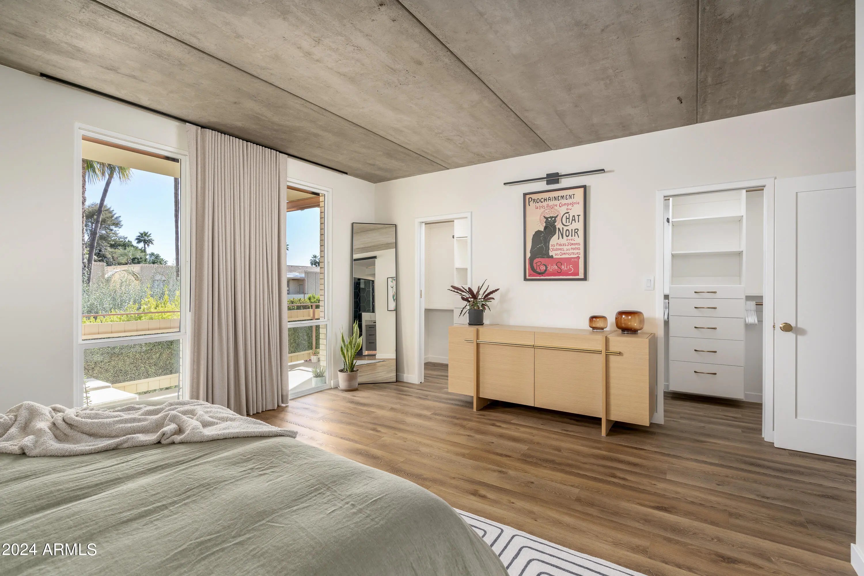 Available 4/1/2026. In Old Town Scottsdale w/ galleries, restaurants and shopping. The attention to detail & implementation of biophilic design elements is certain to exceed expectations. Natural light flows through this open concept while a magnificently exposed concrete ceiling connects the spaces. The primary suite offers 2 custom closets, floor to ceiling windows & a steam shower. The oversized secondary bedroom offers a large custom closet and sit/stand desk. Full size W/D, quartzite countertops, custom cabinetry, smart light fixtures, natural looking oversized LVP flooring w/ zero transitions, level 5 finished walls, Low-E Milgard windows & mor