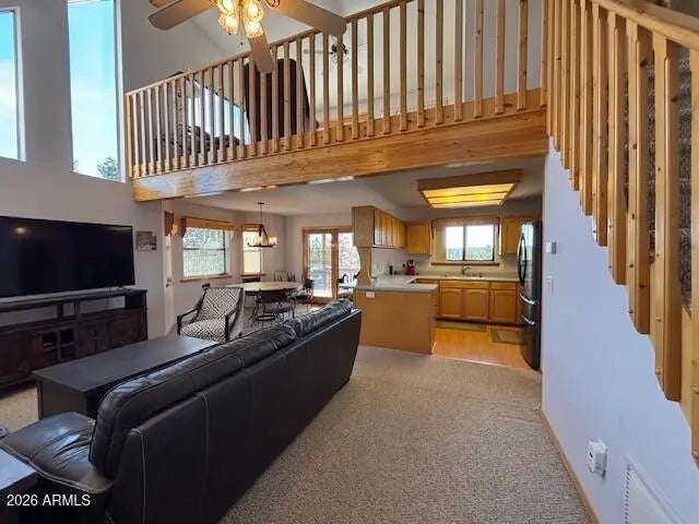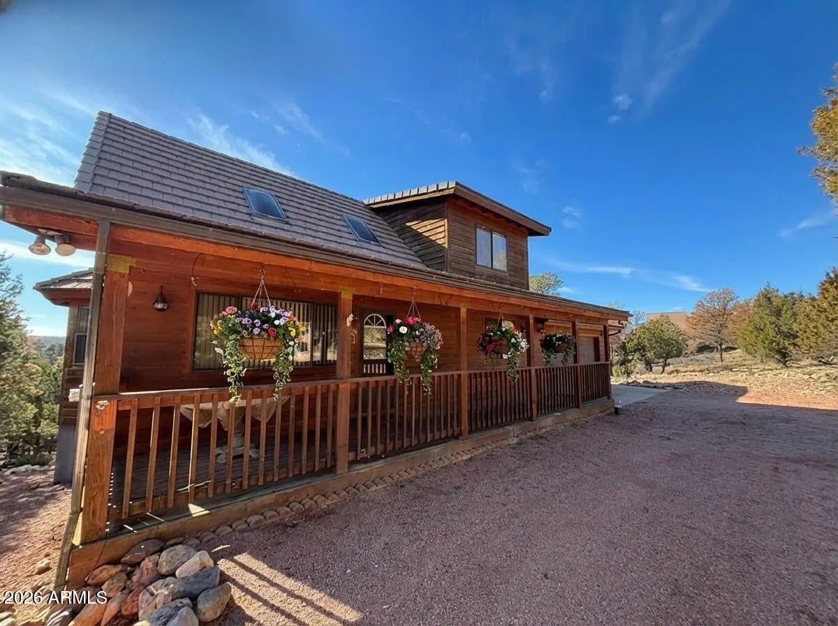 Furnished down to the finest details and move-in ready in the highly desirable Mogollon Airpark. 2 Bedroom, 2 Full Bathrooms HUGE Loft, 2 CAR GARAGE, Unbelievable views from two separate walk decks, sprawling front patio, huge laundry room, perfectly appointed kitchen with stainless steel appliances (including brand new refrigerator) off the wide-open great room. All of this on nearly an acre. Mogollon Airpark offers a clubhouse, pickleball court and landing rights. This amazing home is located in a low traffic area for a quiet and peaceful retreat. The views are simply spectacular from the rear walk decks where you can see for miles and experience the amazing AZ sunsets.