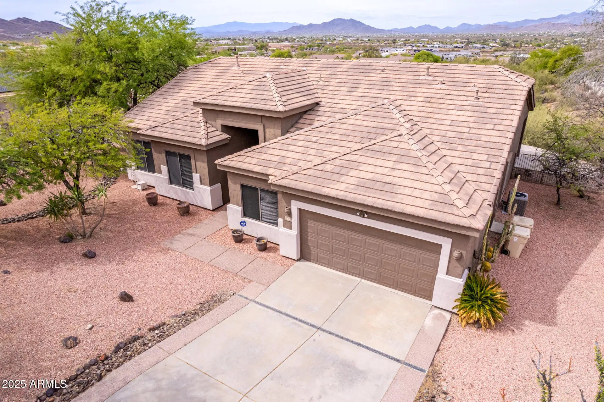 Welcome to your desert sanctuary siting on just under 1 acre! Nestled in the sought-after Desert Hills / North Gateway area, this home offers the best of both worlds — peaceful desert living with city conveniences close at hand. This beautifully maintained home offers the perfect blend of modern comfort and Southwestern charm, set against the breathtaking backdrop of North Phoenix's Sonoran Desert Preserve. Step inside and you'll be greeted by an open, airy floor plan with abundant natural light, high ceilings, and elegant finishes throughout. The gourmet kitchen features granite countertops, stainless steel appliances, and a spacious island — ideal for entertaining. The primary suite is a private retreat with a spa-like bathroom and a generous walk-in closet. Enjoy Arizona's spectacular sunsets from the covered patio surrounded by low-maintenance desert landscaping. With multiple flexible living spaces including a home office, media room, or gym this home adapts perfectly to your lifestyle. The HVAC is less than 2 yrs old Outdoor enthusiasts will love the proximity to the Sonoran Desert Preserve, offering miles of hiking, mountain biking, and horseback riding trails right outside your door. You're just minutes from shopping, dining, and entertainment at Norterra and Anthem, with quick access to I-17 for an easy commute into central Phoenix or Scottsdale. Minutes from TSMC chip factory, plus top-rated schools and a close-knit community make this neighborhood especially attractive for families.
