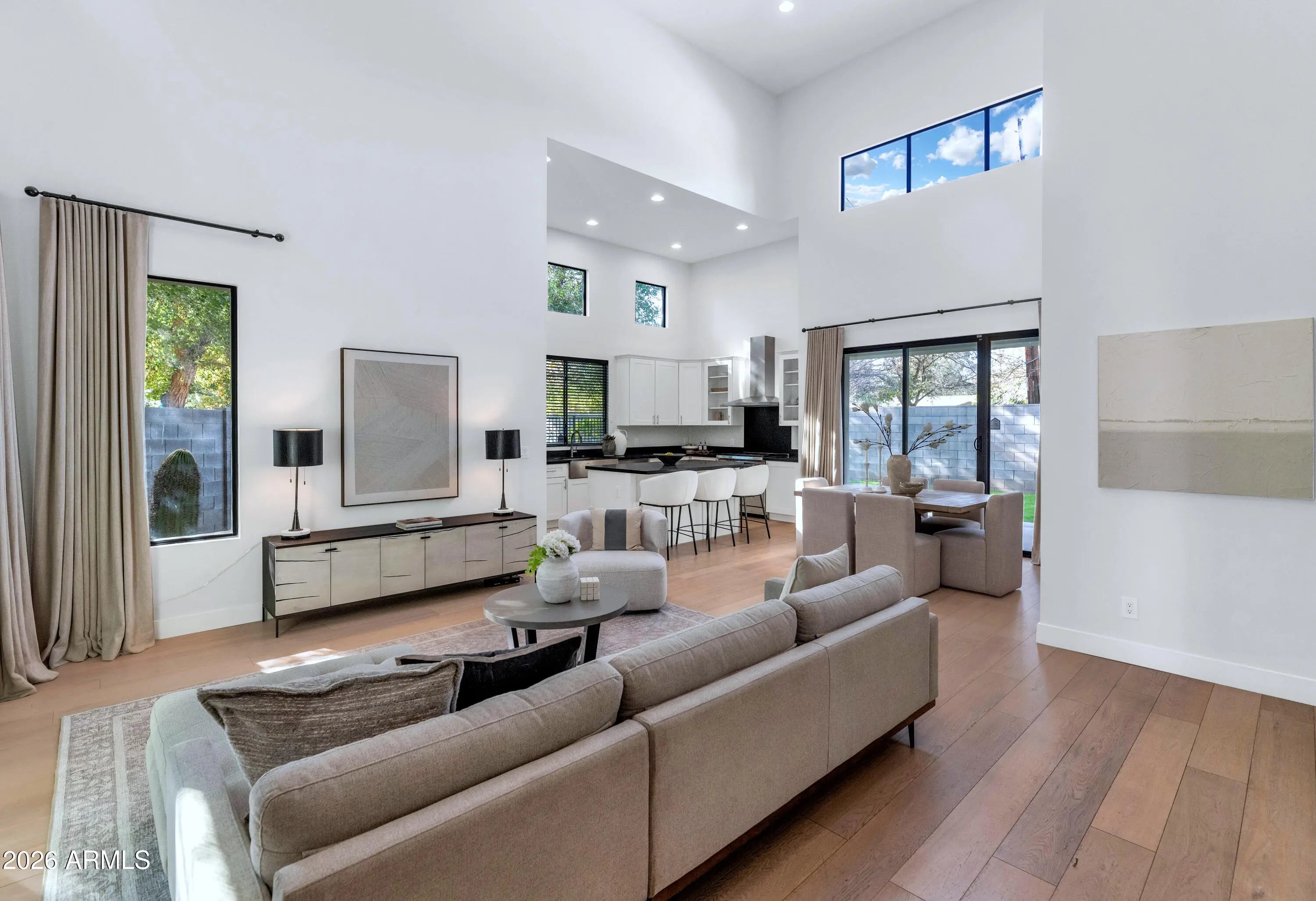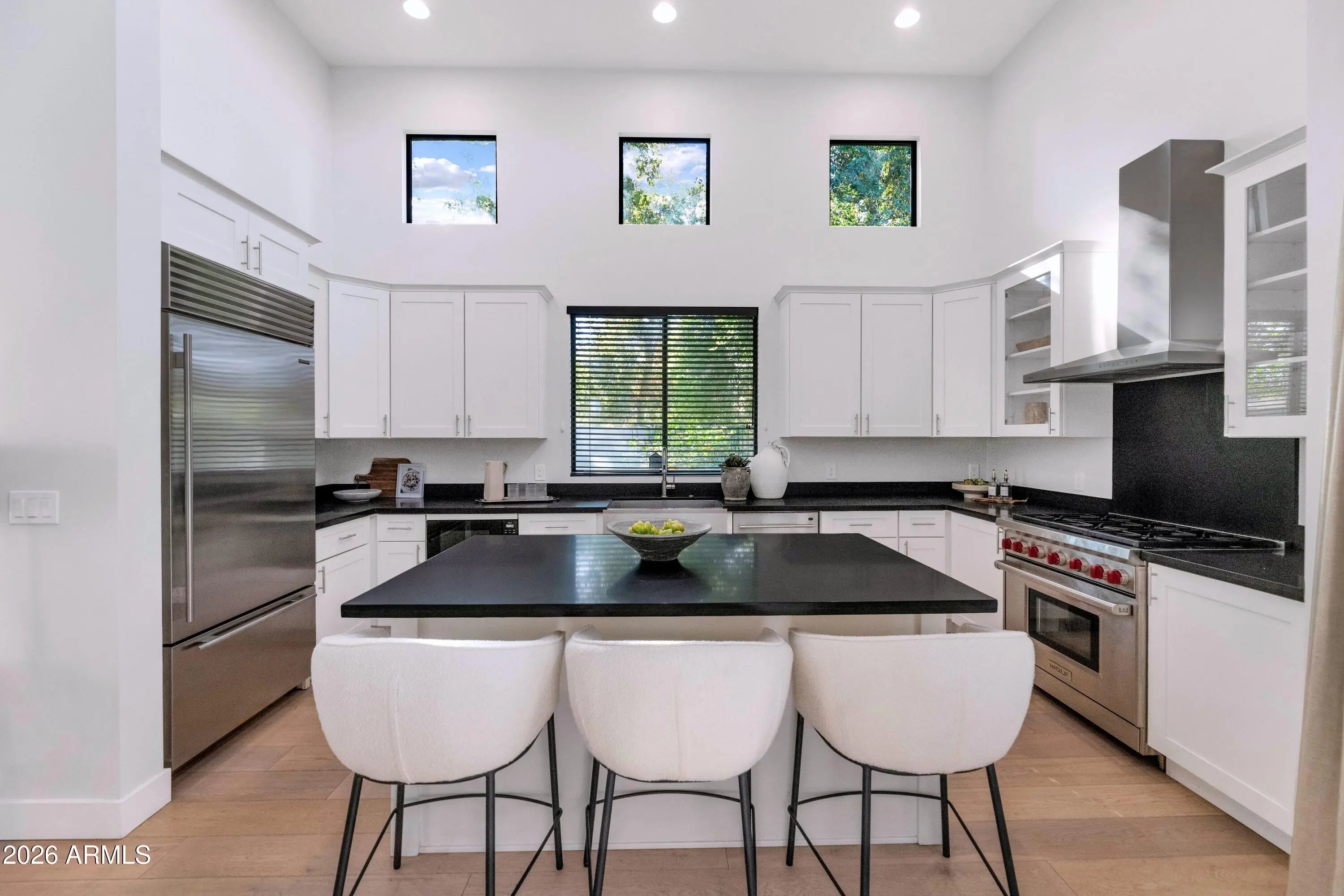 Welcome to this exquisite 2016-built luxury home in the heart of Arcadia! Nestled in the exclusive Arcadia Orchard community—an enclave of just five custom-built homes—this stunning property offers four bedrooms, an office, a spacious loft, and four bathrooms, ensuring ample space for both family and guests. The primary suite is conveniently located downstairs, featuring a resort-style bathroom with a soaking tub, walk-in shower, and an oversized walk-in closet. The open-concept design boasts soaring 20-foot ceilings, seamlessly connecting the kitchen, dining area, and living room. The chef's kitchen is a showstopper, complete with stainless steel Sub-Zero appliances, a Wolf gas range, an oversized island, and abundant cabinetry for storage. Step outside to your lush, private backyard oasis, perfect for entertaining or unwinding. Enjoy the beautifully landscaped space, ideal for relaxing under the Arizona sky. Situated in an incredible cul-de-sac location, this exclusive community offers both privacy and convenience, just steps from Arcadia's most beloved dining spots, including The Vig, La Grande Orange, and Postino. Don't miss this rare opportunity to own a custom-built masterpiece in one of the most sought-after neighborhoods!