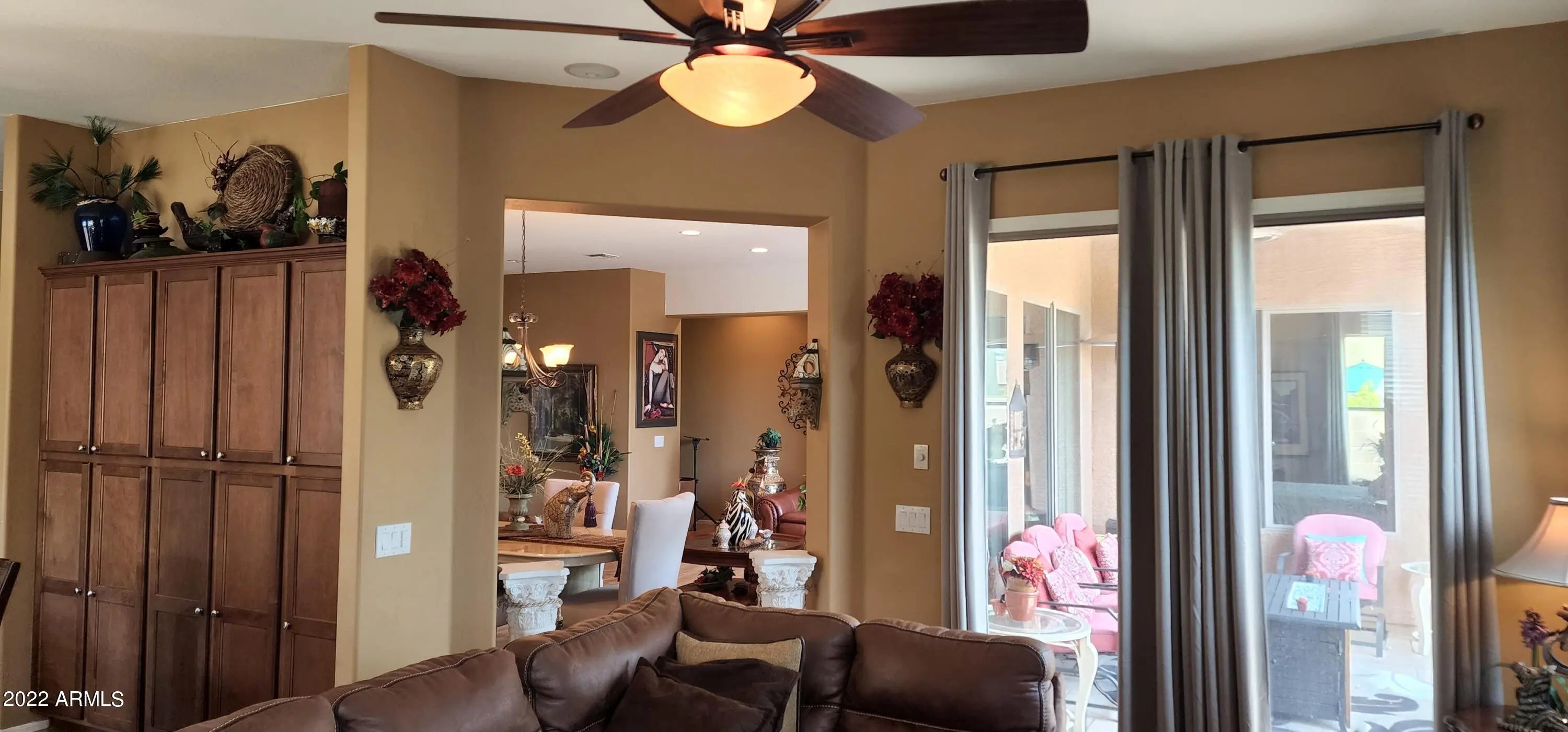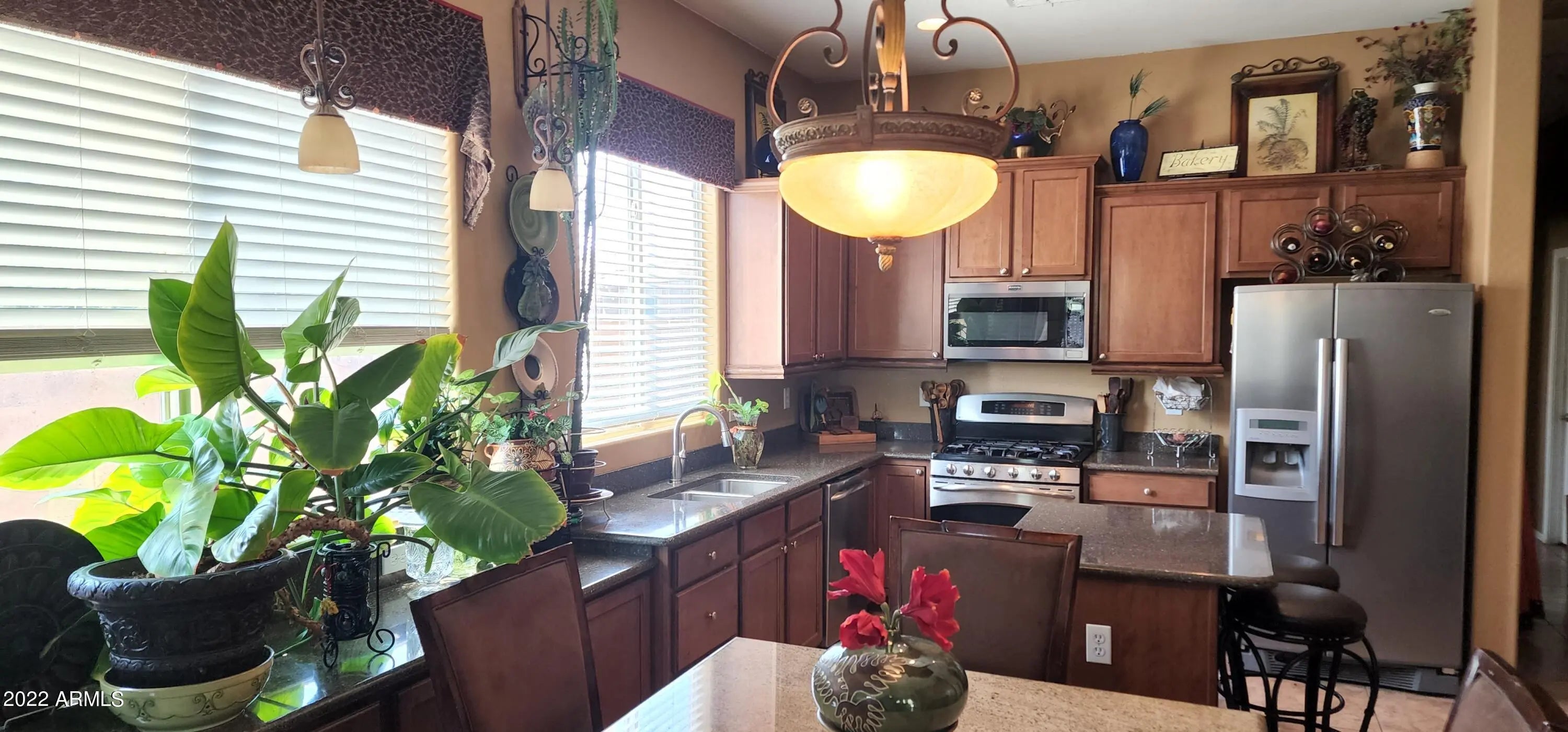 SINGLE STORY, CORNER PROPERTY. CUL-DE-SAC RIGHT BEHIND HOME, MAPLE CABINETS/QUARTZ COUNTER TOPS. NEWER SS GAS STOVE WITH AIR FRYER AND NEWER MICROWAVE 3 BEDROOMS, GREAT OPEN OFFICE SPACE, IN ADDITION A FLEX ROOM WITH CLOSET. 2 BATHS: MAIN BATH HAS SEPARATE SHOWER AND TUB. 2ND BATH HAS SHOWER/TUB COMBO. LOTS OF WINDOWS T/O, ENERGY EFFICIENT LEASE SOLAR PANELS AT A FIX LOW MONTHLY RATE. 110% COVERAGE EQUATES TO SOME MONTHS HAVING APS CREDIT. 2 CAR GARAGE. UNIQUE 4-SLAB PARKING SPACES THAT WILL ACCOMODATE 4 LARGE SUV'S. NEAR BY YOU WILL FIND BEAUTIFUL PARK WITH LOTS OF GREEN GRASS, TREES, AND COLORFUL FLOWERS, A CHILDREN PLAY AREA & GAZEBO, DINNING, COFFEE SHOPS & TOP RATING SCHOOLS, REQUEST APPMT, AND LET'S GET MOVING!