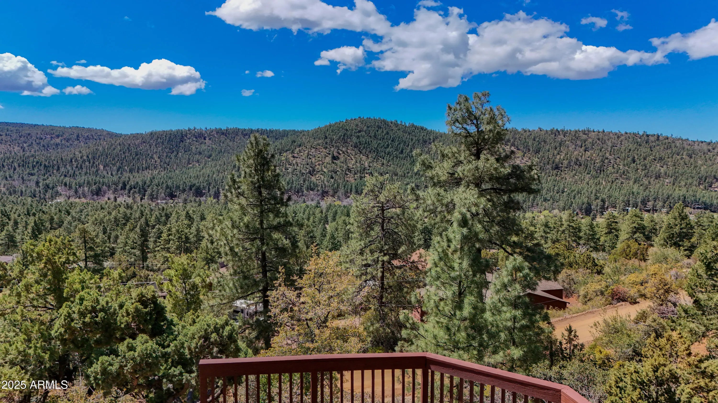 Perched on a .76-acre lot with stunning mountain views and the Tonto National Forest as your backyard, this recently remodeled and reimagined cabin blends rustic charm with modern comfort. The custom kitchen features beautiful Waypoint sage green cabinetry, butcher block counters, floating shelves, and a farmhouse sink. Enjoy incredible views from adjacent bay window dining nook . The living room offers new LVP flooring, pellet stove, and view-framing windows. Primary bedroom features vintage barn doors and large walk in closet. Second bedroom includes en-suite bath with tile shower and private deck access. New modern powder bath in main living space , updated electrical, plumbing, gutters, and split system complete this dream escape—ideal for full-time living, a getaway, or turnkey VRBO