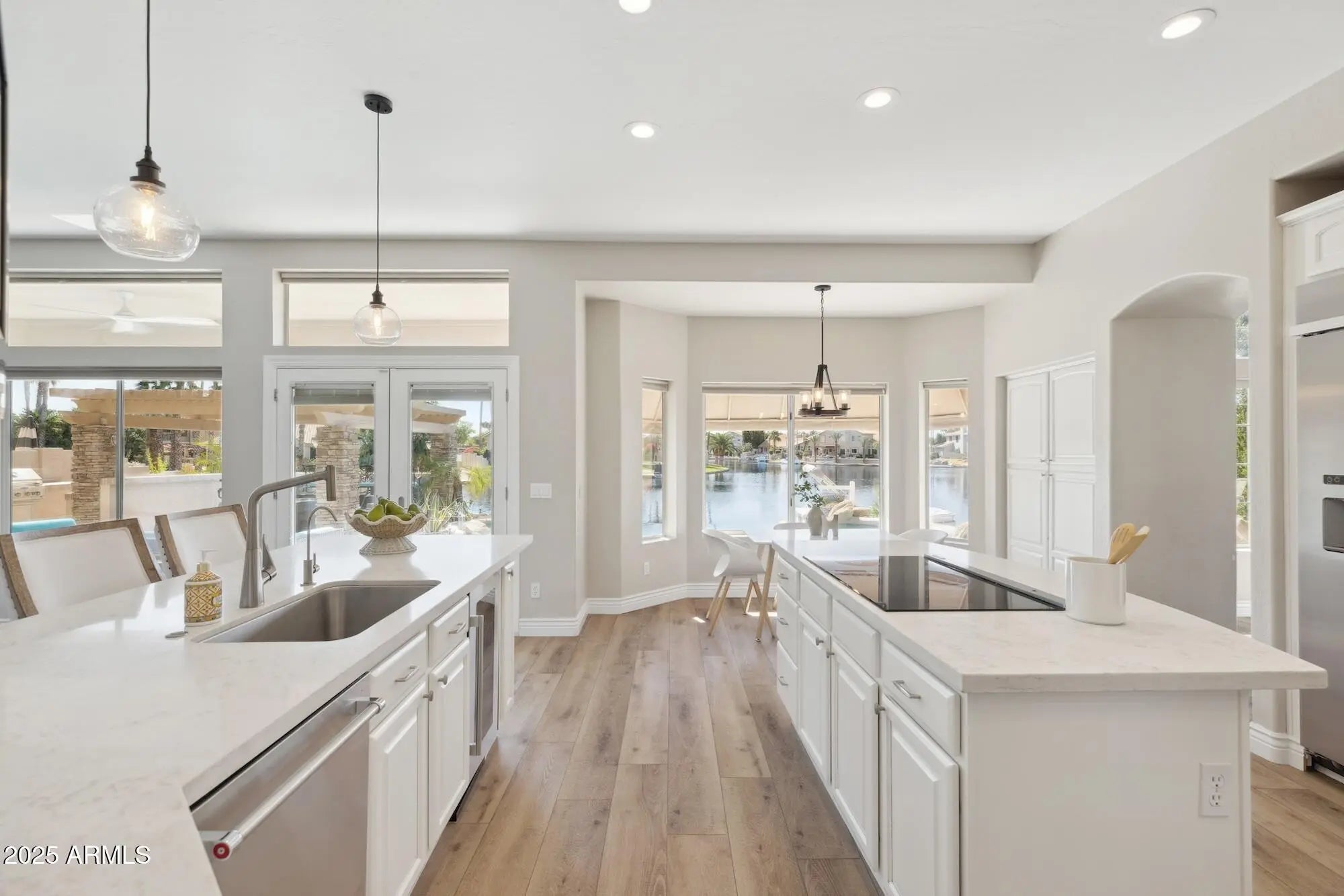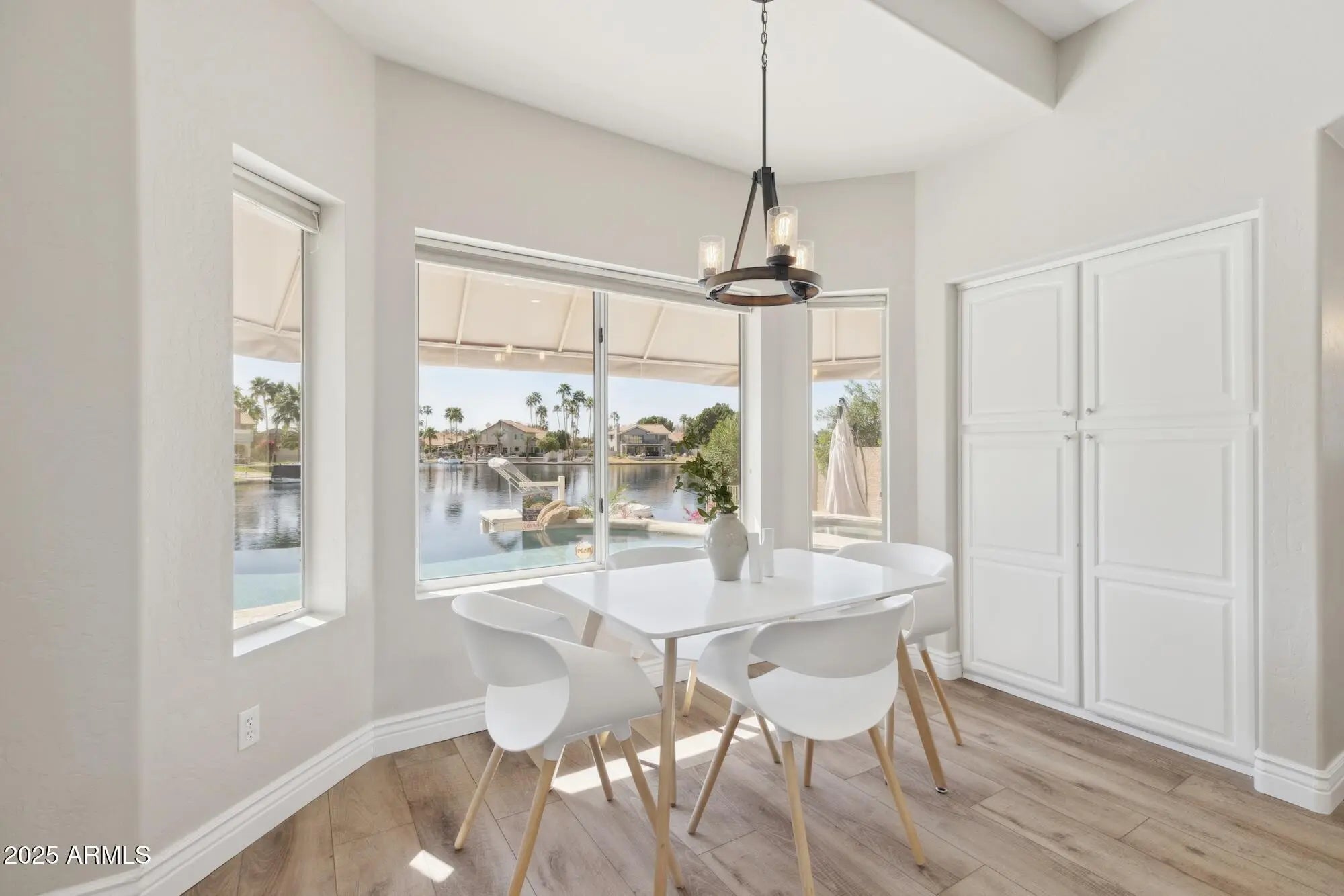 Welcome to your dream lakefront escape! Nestled in a quiet cul-de-sac, this stunning 4,000 sq ft home is currently occupied and not available to view until December. The owners will furnish it and it's available for short- or long-term rental. Enjoy breathtaking lake views, brand-new flooring, a custom kitchen with quartz countertops, and high-end appliances. The master suite offers a private balcony, dual fireplace, jetted tub, and walk-in closet. The resort-style backyard features a negative-edge heated pool, spa, outdoor kitchen, gazebo, and fire pits. Minutes from downtown Gilbert and Chandler. No pets.