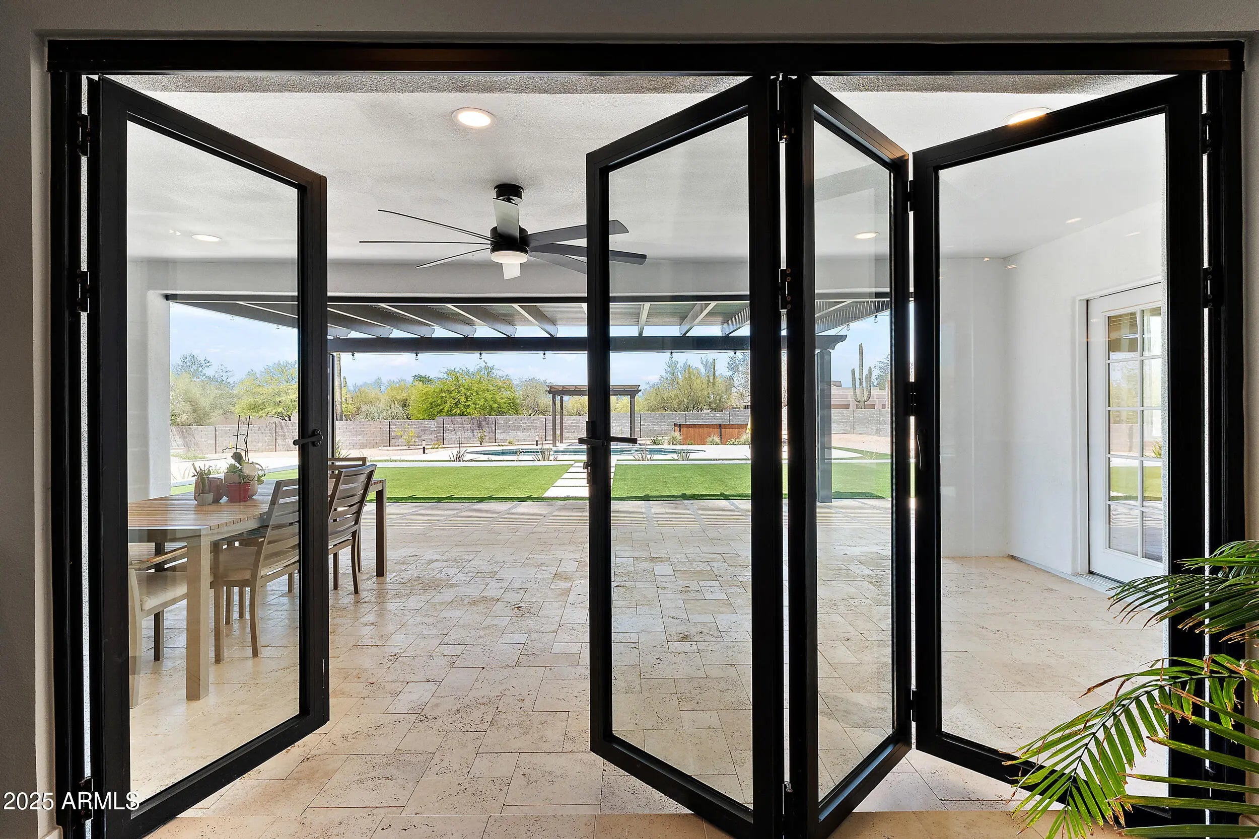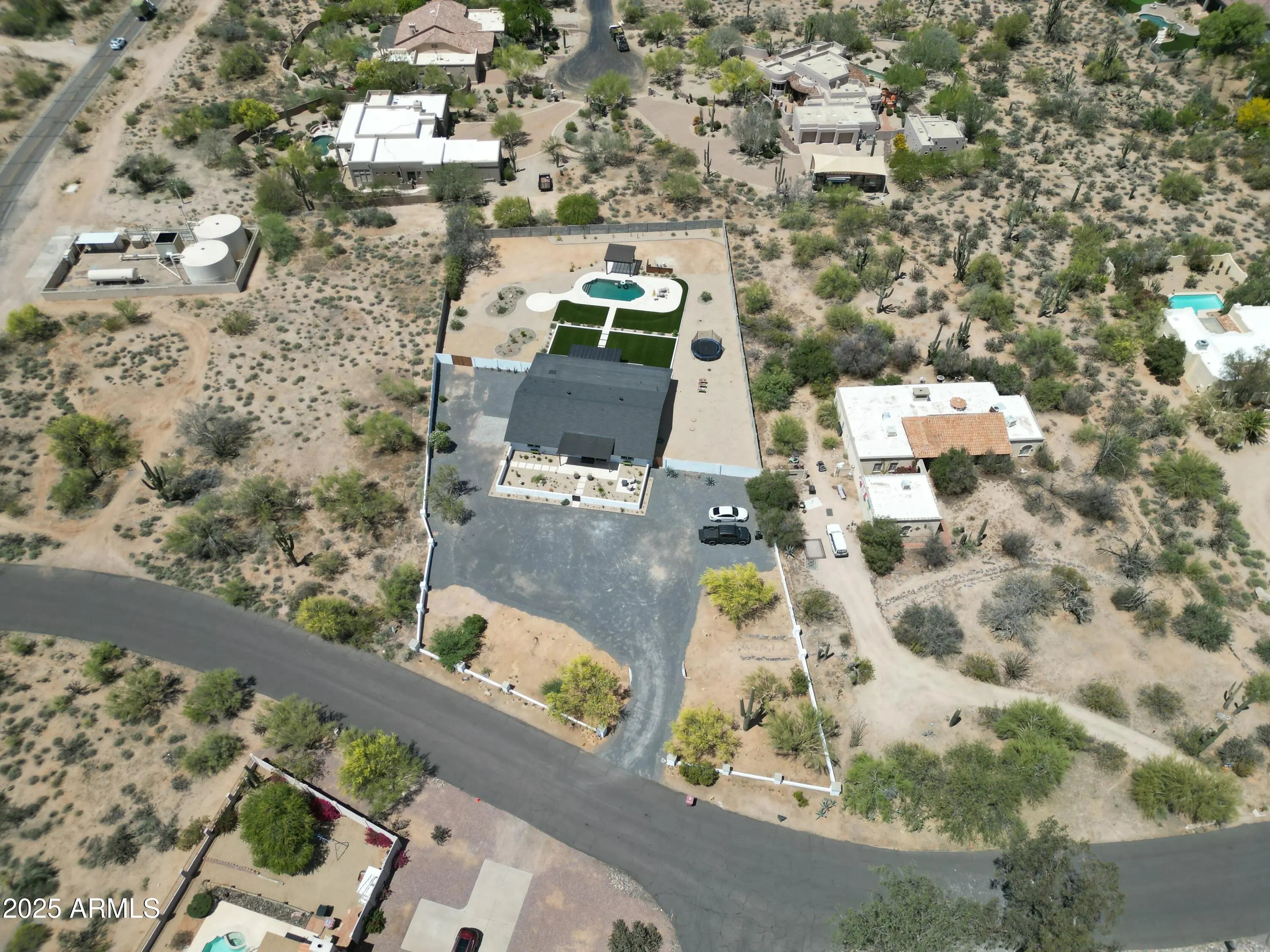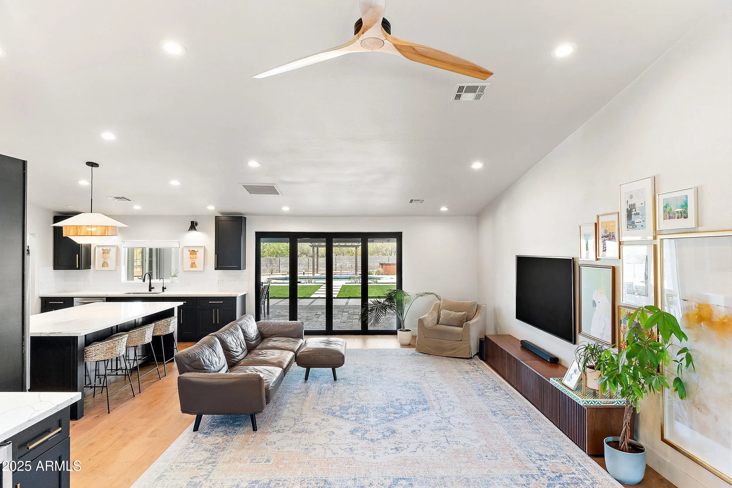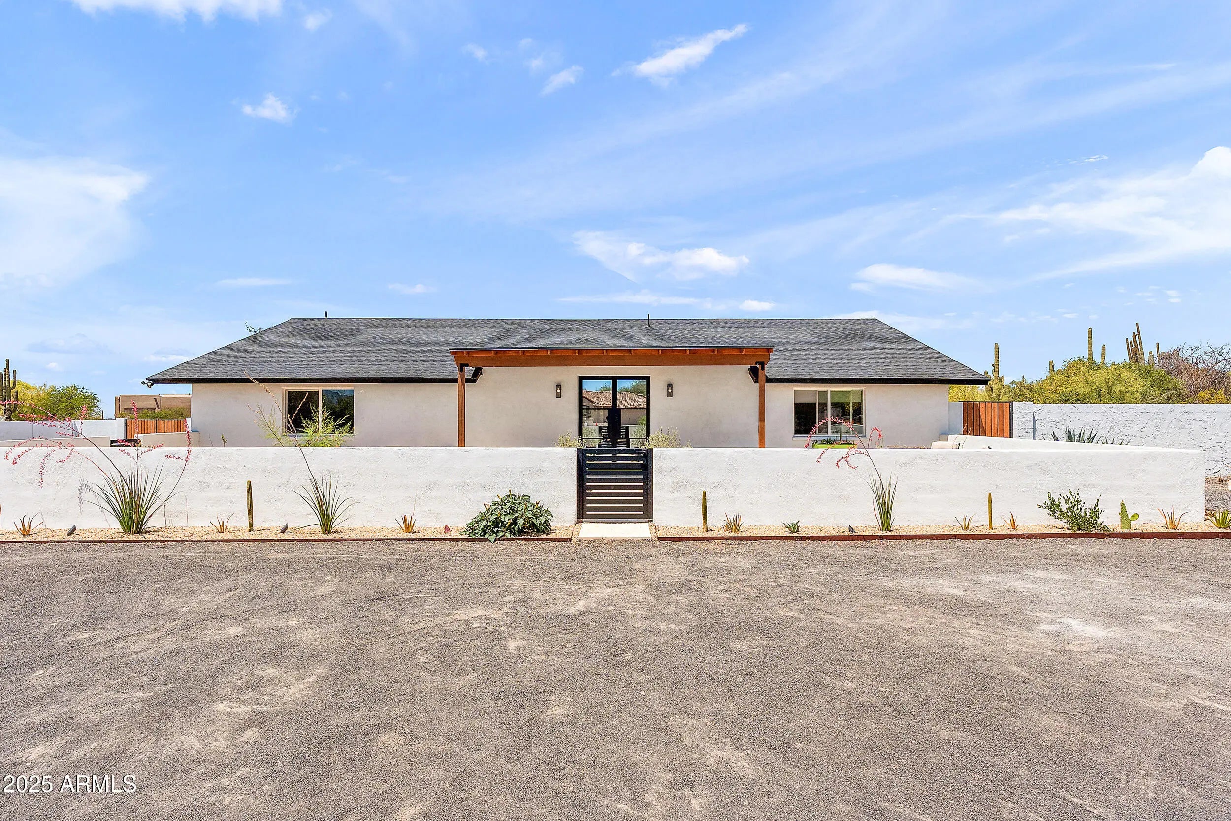 Tucked inside a quiet Scottsdale pocket with no HOA, this fully remodeled 4-bed, 2.5-bath home sits on over an acre of R-43 zoned land — offering rare space, privacy, and freedom just minutes from the best of North Scottsdale. The open floor plan connects a modern kitchen to a spacious great room, highlighted by accordion-style glass doors that open fully to the backyard — blending indoor comfort with outdoor living. Outside, a beautifully landscaped cactus and desert plant garden greets you at the entry, setting the tone for the peaceful, nature-rich setting. The backyard features a resort-style pool, multiple patios, and manicured hardscaping — plus plenty of open space to customize. Whether you're dreaming of a guest casita, workshop, sport court, or space for horses or animals, this property gives you the flexibility to make it your own. R-43 zoning allows for horses, RVs, detached buildings, and expanded outdoor living with no HOA restrictions. Recent upgrades exceed $215K: new roof, upgraded insulation, Culligan water system, new air conditioning unit, updated electrical and plumbing, pool equipment, lighting, and more. Location perks: Within 15 minutes of WestWorld, Kierland Commons, Scottsdale Quarter, Carefree shops, TPC Scottsdale, Troon, The Boulders, and Grayhawk Golf Club. Served by top-rated public and private schools including Notre Dame Prep, Rancho Solano Prep, BASIS Scottsdale, and Chaparral High School. Where land, lifestyle, and luxury come together welcome home.