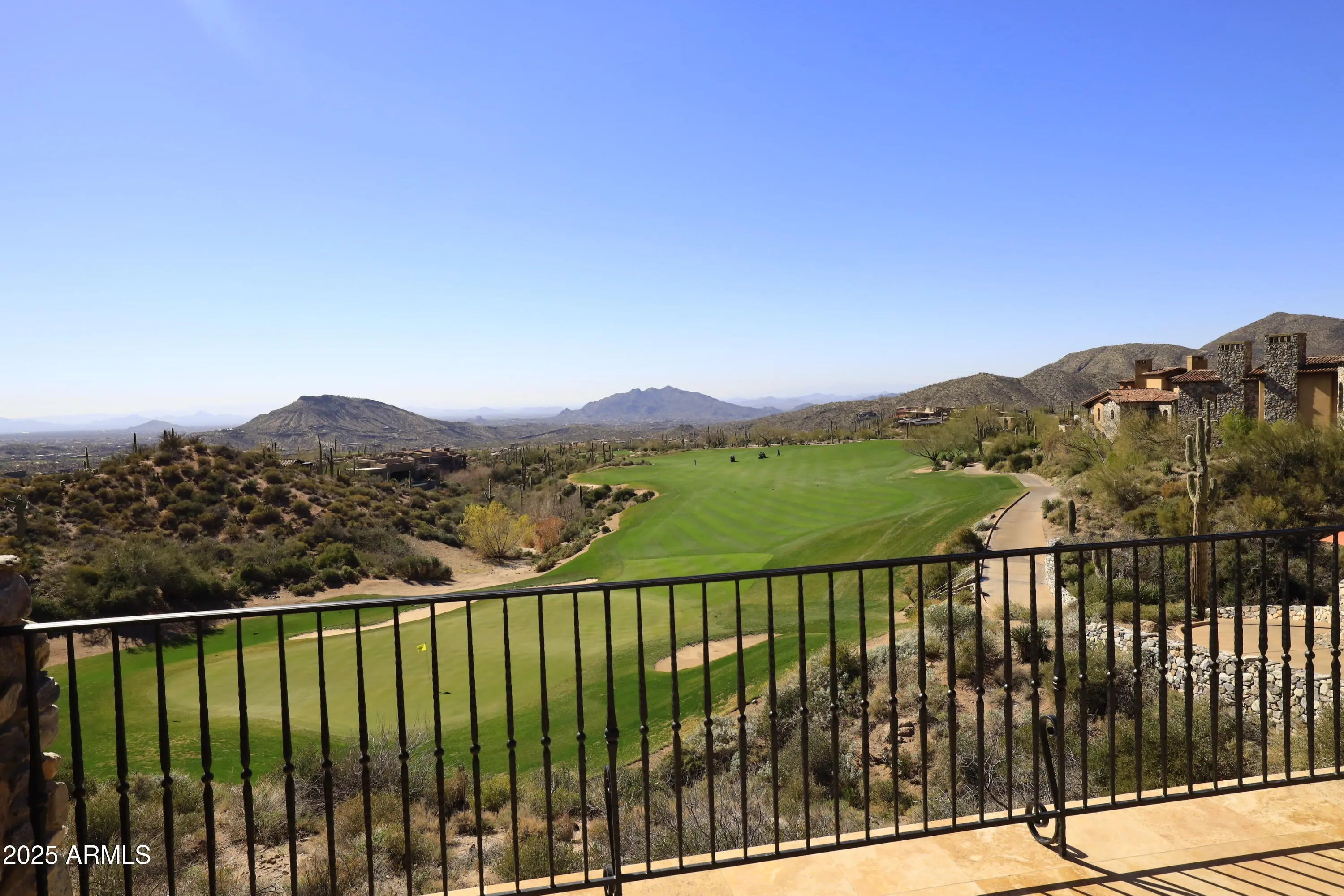 Welcome to Desert Fairways 12 in Desert Mountain, Scottsdale's premier private golf and outdoor recreation community! This south-facing, fairway-fronting home comes with immediate access to a Seven Membership in The Desert Mountain Club*. Additionally, Seller is offering a $4,000 credit to Buyer which can be used toward greens fees if Buyer joins the waitlist for a Full Golf Membership. A full remodel, including exquisite furnishings, was completed in summer 2024. Life changes are prompting an unexpected relocation, with the price under owner's cost. Furnishings, accessories and some art pieces, essentially brand new and of highest quality, are being offered via separate Bill of Sale at a handsome reduction from recent purchase price. Continue reading for more details and information.. The home offers 3 ensuite bedrooms and a powder room within its well-planned open plan. But, some of the details you might not notice include: a separate storage room off the (air conditioned) garage, rubber tiles on the garage floor, on top of a durable epoxy coating; overhead heaters on the patio, along with a misting system handy for cooling people off on the back patio; a golf course location, but not in a tee shot landing zone and with a cart path on the other side of the fairway, itself somewhat distant form the back patio; no interior steps; a wet bar that includes a hand-hammered copper sink, a small, under-counter refrigerator, and a dual zone wine cabinet; dual vanities in two bathrooms; terrific art lighting; great electronics throughout the home including being able to control the shades via voice command; high-end (Wolf, Viking, Cove) appliances in the kitchen; LG ThinQ washer and dryer in a laundry/utility room with natural light; an extensive security system including installed cameras; upscale tile flooring on the pool deck; an extra-cost, tongue-in-groove wooden ceiling system on the high, gabled roof ceiling of the Great Room; various uses of onyx (and some cool backlighting of it!) for countertops and facings; dual vanities in two of the three bathrooms; a firepit on the back patio; a pool for swimming laps; many mature trees around the back patio that create a verdant, "cool" setting; and a very high level of home maintenance due to having a professional property manager looking after things. Desert Mountain is a thirty-eight-year-old, 8,200 acre, gated, master-planned community with about 2,000 homes in over forty different "Villages". Nearly built-out, there are only about 200 homesites yet to be built upon. It is in a noticeably quiet, serene, safe (manned entry gates; gates at each Village entry; security patrols) and beautiful location, spread east to west across the foothills of the Continental Mountains in the High Sonoran Desert on the northern edge of Scottsdale (the only thing north of Desert Mountain is the Tonto National Forest, fourth largest in the country), with homes at elevations ranging from 2,600' to 3,500' ASL. The various views these properties can provide are legendary ("city lights", "the McDowell Mountains", "sunsets", plus others, obviously including golf course views). Most owners are members of the Club (owning real estate provides the only path to any of several memberships). Its facilities include nine dining venues, seven golf courses, and various dining and other activities in seven different clubhouses. Virtually all of these members (who have come to the Club from Europe, the UK, Canada, and almost all American states, especially New York, Connecticut, California, Colorado, Oregon, Washington and the Upper Midwest) seem to have made socializing and having fun a key priority. There is a LOT to do and they "get after it"! * Upon application approval and separate payment to the Club of an initiation fee, the offered (and optional) Seven membership will entitle the holder to the use of all non-golf Club facilities, unlimited access to the eighteen-hole, Par-54, course known as "Seven" (rated for handicap purposes), up to six rounds per year on Desert Mountain's other six championship golf courses as a guest of a Member, and is upgradeable to a "Full Golf Membership" on a waitlist basis. (Ask Desert Mountain Club for full details). One of the clubhouses, the "Sonoran Clubhouse" is where most of the non-golf and non-hiking trail activities are concentrated: swimming (three pools); tennis (nine unlighted courts including three hardcourts, five Har-Tru, and one grass); fitness (equipment, classes, personal trainers, yoga, etc.); sixteen unlighted pickleball courts; bocce; complete spa services; two golf croquet courts; and an extensive outdoor playground for little people. Close to twenty-five miles of nicely groomed hiking trails await in the mountains at the back of Desert Mountain, reaching Butte Peak, at 4,823' the highest point in Scottsdale. An amazing "country club for dogs", the "Bark Park", was built recently near the Cochise-Geronimo Clubhouse. The restaurants include Constantino's; Café Verde; Angelo's; Arizona Grill at Outlaw; Cochise-Geronimo; The Hideout at Renegade; Seven; Apache; and the Range House at CG. Considerable recent and ongoing investment in keeping Club facilities state-of-the-art, has been and will be funded out of general funds, not assessments. There is no fee for exiting the membership structure. The Front Gate of the community is typically about a forty-minute drive to Phoenix Sky Harbor airport, and perhaps twenty-five minutes to Scottsdale Airport, where many members come and go by private aircraft. Otherwise, nearly seventy bars and restaurants are within about a fifteen-minute drive of the Front Gate in Scottsdale, Cave Creek and Carefree. Major league and collegiate sports, fabulous medical care (including the Mayo Clinic and hospital), and a wide variety of cultural attractions, are all within an hour. Skiing is about two hours away in Flagstaff. The Grand Canyon, Lake Powell and Las Vegas are all four to five hours away. C