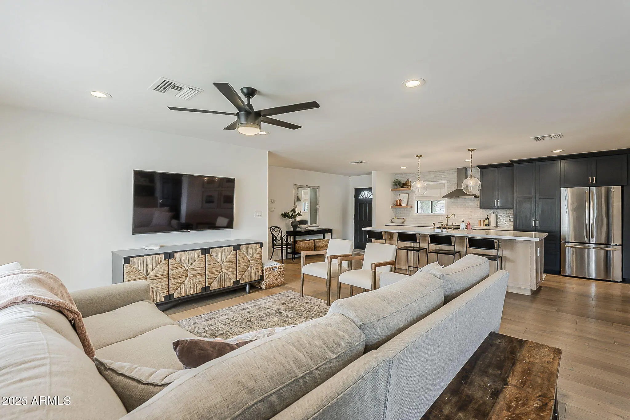 Welcome to this amazing non-HOA Scottsdale home featuring 3 bedrooms, 2 bathrooms and a stunning full remodel by a local interior designer with over $100k in upgrades. Thoughtfully updated with style and comfort in mind, this home blends high-end finishes with modern functionality; all in a prime location close to everything Scottsdale has to offer. Step inside to discover a bright and open floor plan with 8' raised ceilings, gorgeous hardwood floors, designer light fixtures and custom soft-close cabinetry throughout the kitchen, bathrooms, laundry room and built-ins. The heart of the home is a truly elevated kitchen, showcasing quartz countertops, handmade tile backsplash to the ceiling and stainless steel appliances and fixtures. Every inch of this home has been thoughtfully reimagined: Complete overhaul and remodel in 2019 Electrical upgrade full modern wiring with added ceiling lights New plumbing HVAC ductwork & plenum (2018), new AC fan (2025), mini-split in garage New water heater (2024) New carpet and tiled bathrooms (2020), with marble tile in the primary bath Exterior upgrades impress just as much, with a new paver driveway, full landscaping and irrigation systems front and back (2020), fresh stucco and new exterior paint and a new insulated garage door and system (2023). The garage also features epoxy flooring and its own AC unit, making it a perfect extension of the home. This home is move-in ready with major systems already updated, extensive insulation added throughout (including R28 and over the garage) and timeless finishes that make it feel like a model home. All of this just minutes from Old Town Scottsdale, great dining, shopping, and easy freeway access. This is the rare designer-renovated Scottsdale home you've been waiting for.