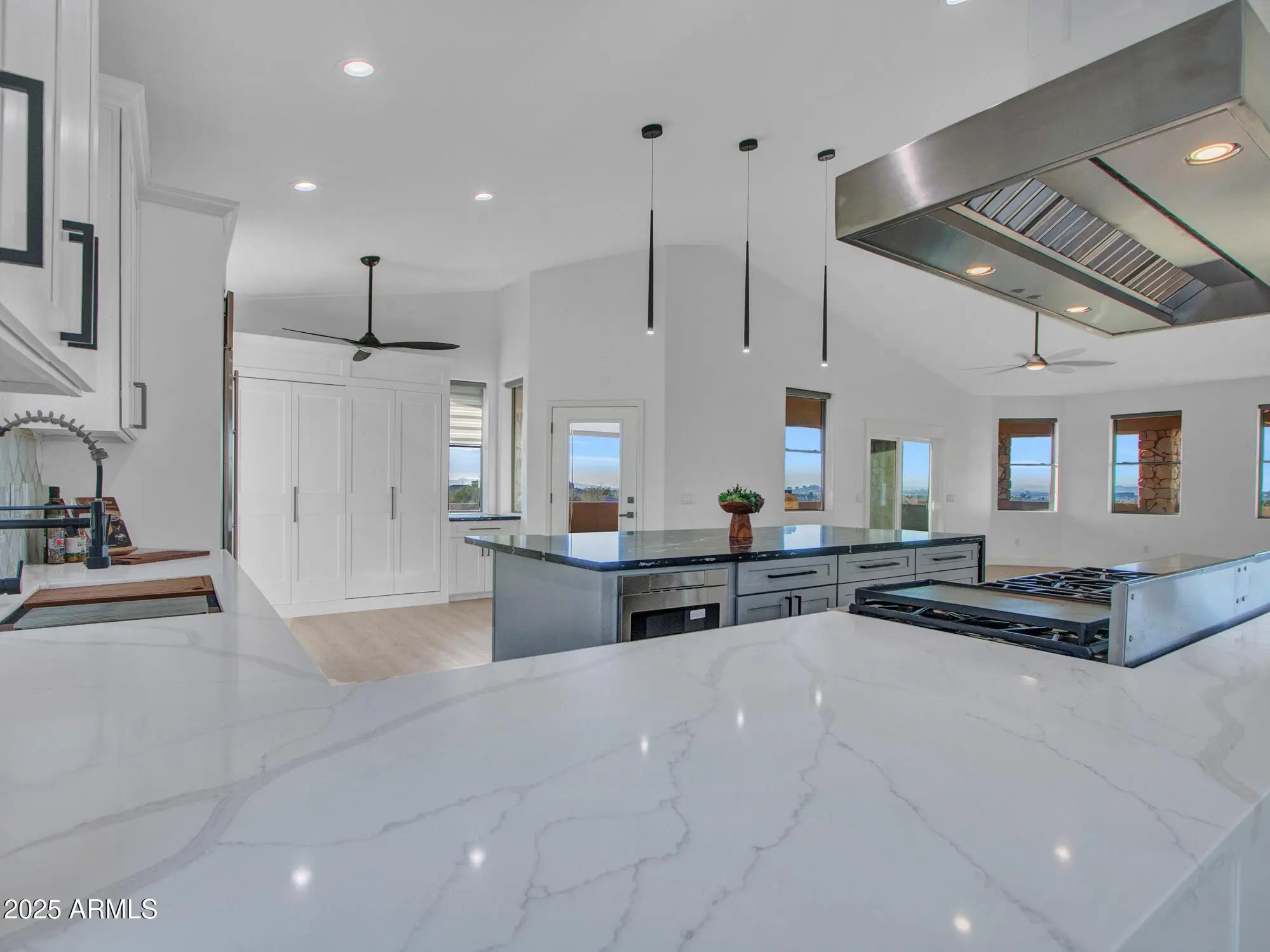 Wake Up to Sunsets, Trails, and Tranquility — Discover the Ultimate Modern Retreat in the prestigious gated community of Highline Canyon, ideally situated in the serene South Mountain area. This custom 4-bedroom, 4-bathroom estate offers 4,485 sq ft of meticulously remodeled living space on a generous 16,760 sq ft lot, blending modern luxury with stunning natural surroundings. Step inside to an open-concept design highlighted by vaulted ceilings (9+ ft), luxury vinyl plank flooring, and expansive dual-pane windows that flood the home with natural light and frame breathtaking mountain and sunset views. The spacious great room, centered around a cozy fireplace, flows seamlessly into a chef's kitchen featuring: " White shaker soft-close cabinetry " Oversized waterfall quartz island " Quartz countertops " High-end finishes and fixtures perfect for entertaining The luxurious primary suite offers a tranquil escape with a private balcony, spa-inspired bathroom, soaking tub, oversized rain-head shower, and dual vanities. Secondary bedrooms are generously sized with walk-in closets and access to fully updated bathrooms. A flexible bonus room makes an ideal home office, gym, or game room. Additional interior upgrades include: " Day & night light-filtering window shades " Updated lighting and bath fixtures " Ceiling fans throughout " Abundant storage and closet space Enjoy true indoor-outdoor living with two expansive balconies one off the master suite and one off the main living area designed for both relaxation and entertaining. The backyard oasis includes a custom firepit, perfect for starlit gatherings. Conceptual pool rendering available to illustrate the possibilities of the backyard. Tucked against the South Mountain Preserve, this home offers direct access to scenic trails including Javelina Canyon, Ridgeline, and Beverly Canyon, with world-class golf nearby at Raven Golf Club, Arizona Grand Resort, and Legacy Golf Resort. All this, just minutes from Sky Harbor Airport and the vibrant amenities of downtown Phoenix. Where luxury meets nature,welcome home.