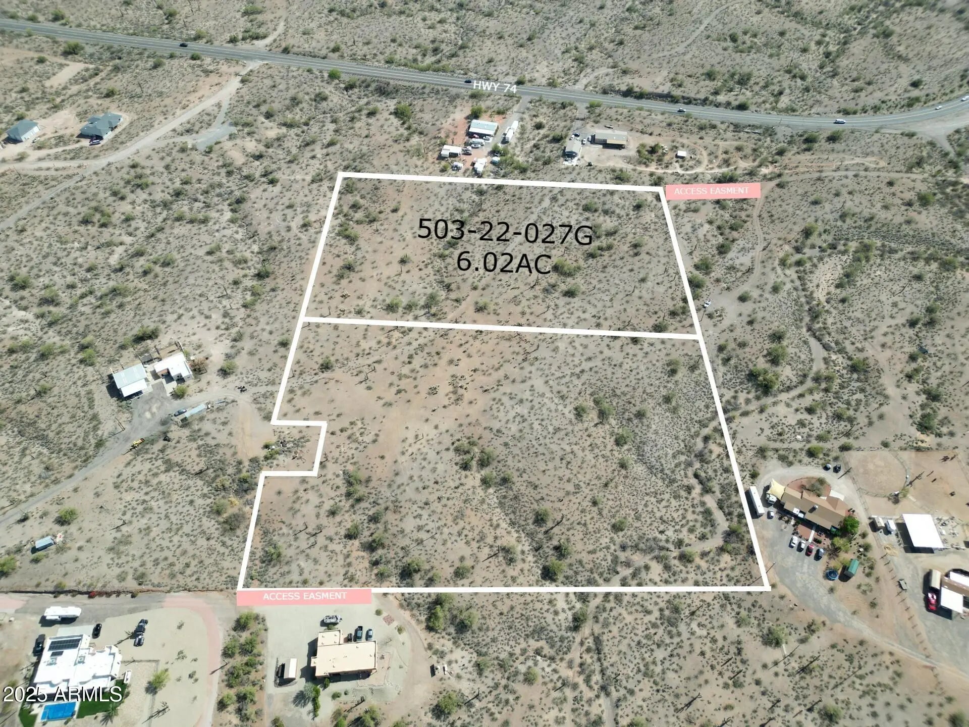 6 Acres! APN 503-22-027G. Enjoy a true Arizona lifestyle with easy access to Wickenburg's world-famous roping arenas, Lake Pleasant's recreation, and the booming job market surrounding the new TSMC semiconductor plant. Located in an area poised for future growth, including the proposed Burlington Northern Santa Fe Rail Hub in nearby Wittmann. Whether you're a winter visitor, investor, or full-time resident, this is a golden opportunity to own land in one of Arizona's most promising corridors. Near the intersection of HWY 74 and HWY 60. APS electricity at adjacent lots. Zoned R43. Owner has had surveyed into 2 lots, each over 3 acres. Deed restricted to 3 acre lots min size. Depicted as lots 3A/3B on attached survey.