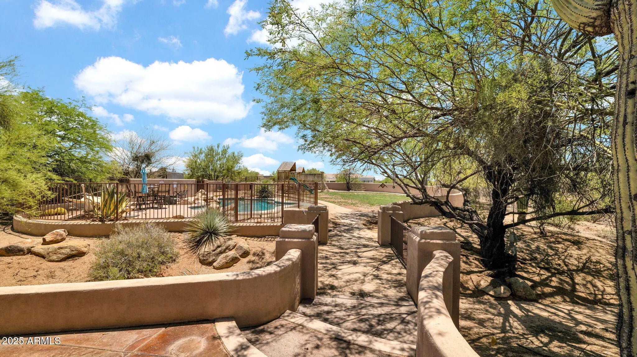 Experience resort-style living in this custom estate on over an acre, offering a true private oasis. Thoughtfully designed with a split floor plan, a sophisticated office with custom built-ins, and an expansive game/theater room perfect for elegant entertaining. The open-concept kitchen flows seamlessly to the family room and out to a serene backyard retreat. Enjoy a charming courtyard, sparkling pool, and breathtaking desert vistas. Ideally located near premier golf, shopping, dining, schools, and scenic parks, with effortless access to the 101 and I-17.