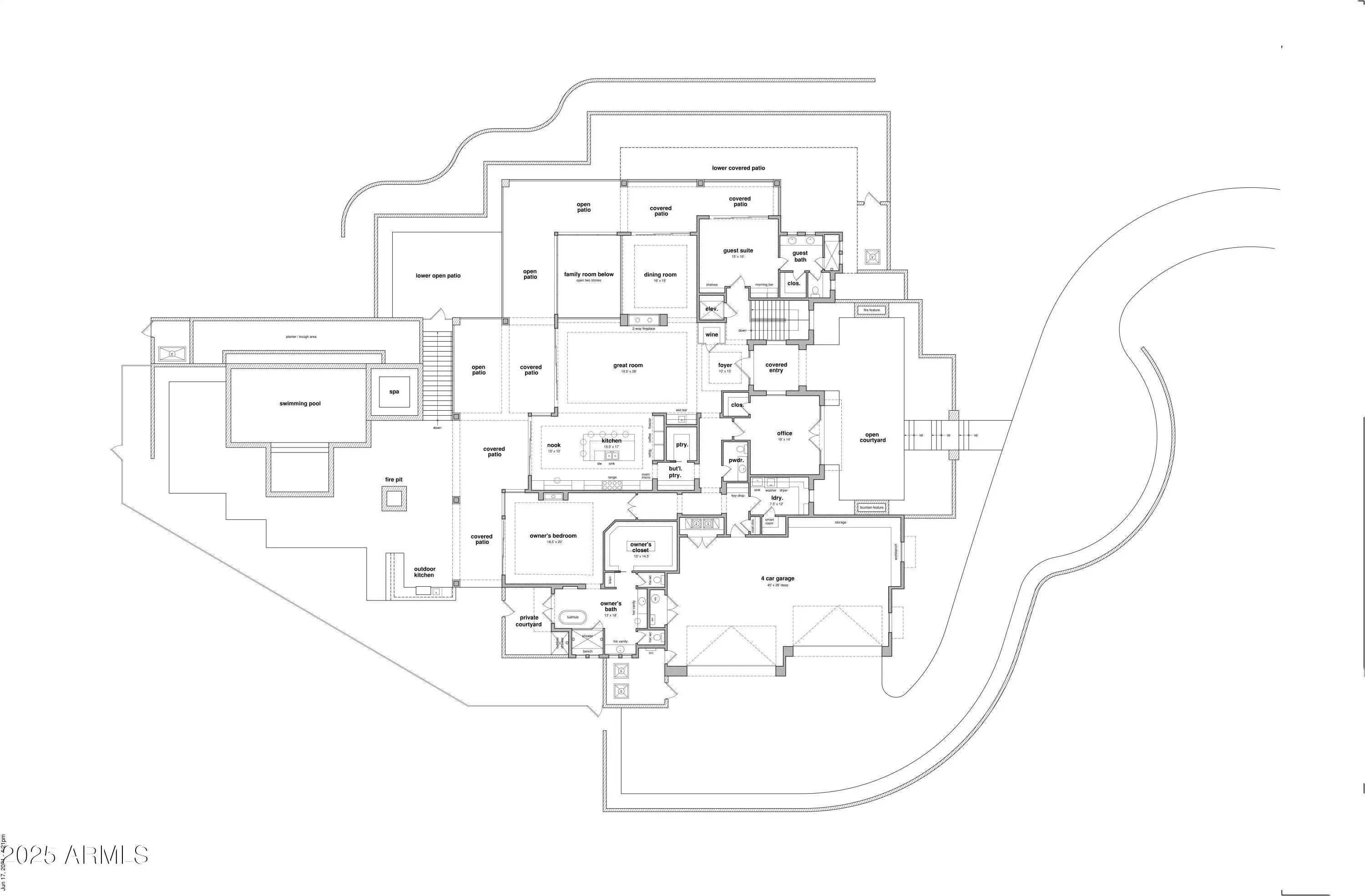 Nestled within the guard-gated community of Eagles Nest. This smart home features desert elegance. Boasting 4 spacious bedrooms, an office, and 4.5 baths, this main floor living, home is designed for both grand entertaining and intimate comfort. Step inside to discover a gourmet kitchen featuring top-of-the-line Wolf appliances and a convenient butler's pantry, perfect for culinary enthusiasts. The expansive living spaces flow seamlessly, enhanced by an elevator for effortless access to the lower level. Indulge in the spa-inspired primary suite, complete with a steam shower.The true masterpiece of this property is the breathtaking, unobstructed views of the Superstition Mountains, and the famous Fountain Hills Fountain. Meticulous craftsmanship and unparalleled attention to detail. Home has 220 in garage for car charging, whole house filtration system, complete smart home, Jura Coffee maker, statement wine cellar in entry.