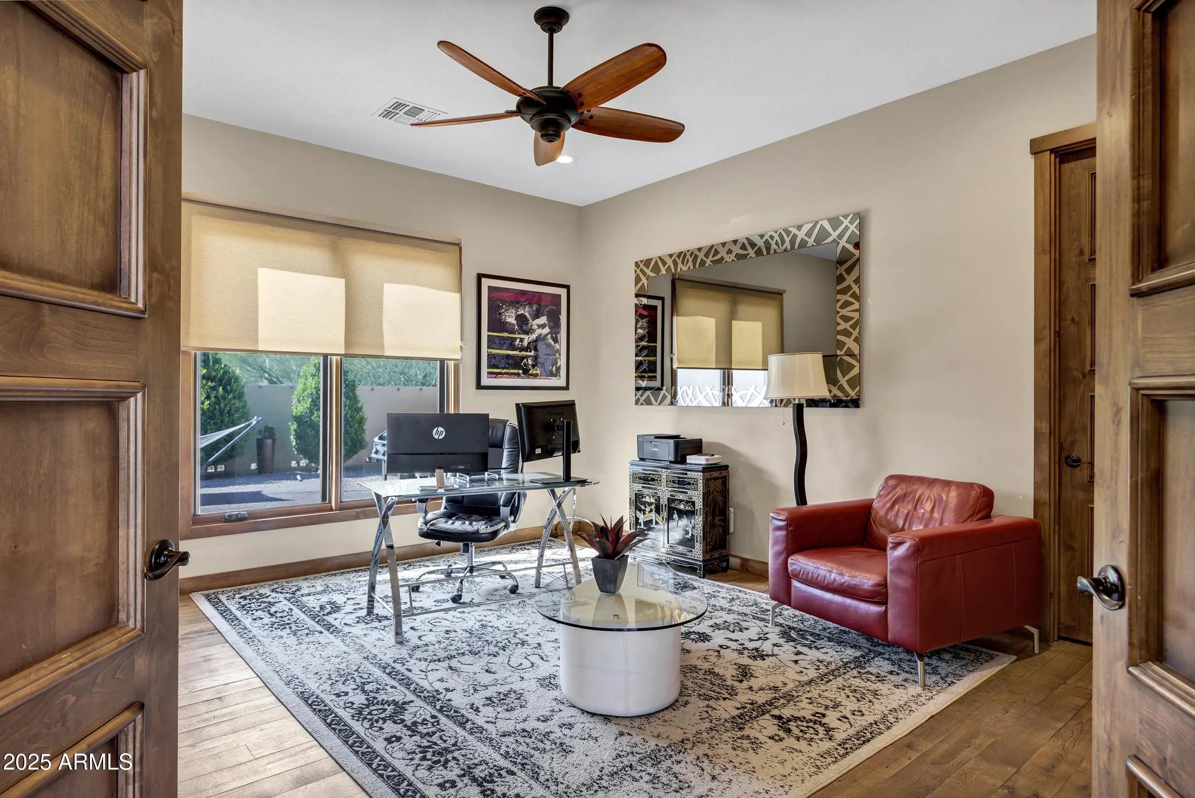 Your Exclusive Mountain Foothills Retreat Awaits! Special features: home room w/surround sound/Thermador appliances/New exterior paint-W&D, water heater, and dishwasher, newer AC unit, scenic mountain views, custom build, oversized bathroom spa themed and closet. Discover the unparalleled lifestyle you've been searching for. Breathtakingly situated along the majestic foothills, this custom-built architectural marvel is more than a home—it's a sanctuary designed to elevate your everyday living. Imagine waking up to sweeping mountain and unforgettable sunset views or watching the clouds dance across the mountain peaks on a rainy day knowing you have direct, coveted access to miles of hiking and biking trails right outside your door. Here, unrivaled privacy and seclusion are guaranteed on your 1.48-acre estate, yet the vibrant energy of Downtown Phoenix, Sky Harbor Airport, hospitals, shopping and major I-10/202 access are just minutes away. The Privilege of Privacy & Architectural Grandeur This is not a cookie cutter home; this isn't just a neighborhood; it's an exclusive enclave. The street is defined by spectacular custom homes, averaging 3,000 to 8,000 square feet, all requiring a minimum of one acre per owner with low turnover. This commitment to spaciousness ensures maximum privacy and a sense of serenity, while the amazing scenery of other outstanding architectural homes provides a visually stimulating and prestigious backdrop. Your investment is elevated by Carver's prestige. A Home Crafted for the Connoisseur Step inside and feel the difference only true craftsmanship can make. Built by a skilled carpenter artisan who built this home as his own personal sanctuary in 2014 they spared no expense on quality and sophistication, the structure is immediately impressive, featuring dramatic 20-foot beamed ceilings, authentic brick accents, distinctive moon-shaped clerestory windows, and the warmth of rich hardwood floors throughout. This is a home designed to inspire. The Culinary Heart: The chef's kitchen is a testament to design and function, boasting handcrafted cabinetry, luxurious leathered granite countertops, professional-grade Thermador appliances. It's a space that demands entertaining. The Great Room Experience: Walls of expansive windows frame the magnificent backdrop, effortlessly blending the comfort of indoor living with the rugged beauty of the desert just beyond the glass. Your Private Oasis: The primary suite is a tranquil escape, offering breathtaking, uninterrupted views. The spa-like primary bath indulges with a deep soaking tub, an oversized glass shower, dual floating vanities, and a large walk-in closet that will make you feel like you're stepping into a high-end boutique. Secondary bedrooms are equally spacious, filled with natural light, and offer generous closet space. Irresistible Value & Functional Luxury "Flexible Space: The dedicated theater/media room with built-in surround sound and dimmable sconces (originally the 4th bedroom) is easily convertible back, offering supreme flexibility for your family's needs. " Impeccable Condition: A thoughtfully designed mudroom with built-ins, real hardwood floors throughout, durable metal roofing, fresh exterior paint in 2025, and a newer water heater, one air conditioning unit 3 years old, washer and dryer make this a truly move-in-ready sanctuary which is meticulous in upkeep and energy efficient. " Outdoor Vision: With 1.48 acres, the potential is boundless. Design your ultimate outdoor oasisa custom pool, a detached casita, a workshopthis is the canvas for your future. " Entertainer's Dream: The inviting courtyard is a private outdoor haven, perfectly suited for adding a wet bar or full outdoor kitchen to host unforgettable gatherings. This one-of-a-kind residence masterfully fuses architectural brilliance with the inherent beauty of the landscapecreating an unforgettable setting where you can live, relax, and truly recharge. Don't miss the chance to claim this unique piece of the desert sky. Properties of this caliber and location are highly coveted and seldom available on this street. Come and see today!