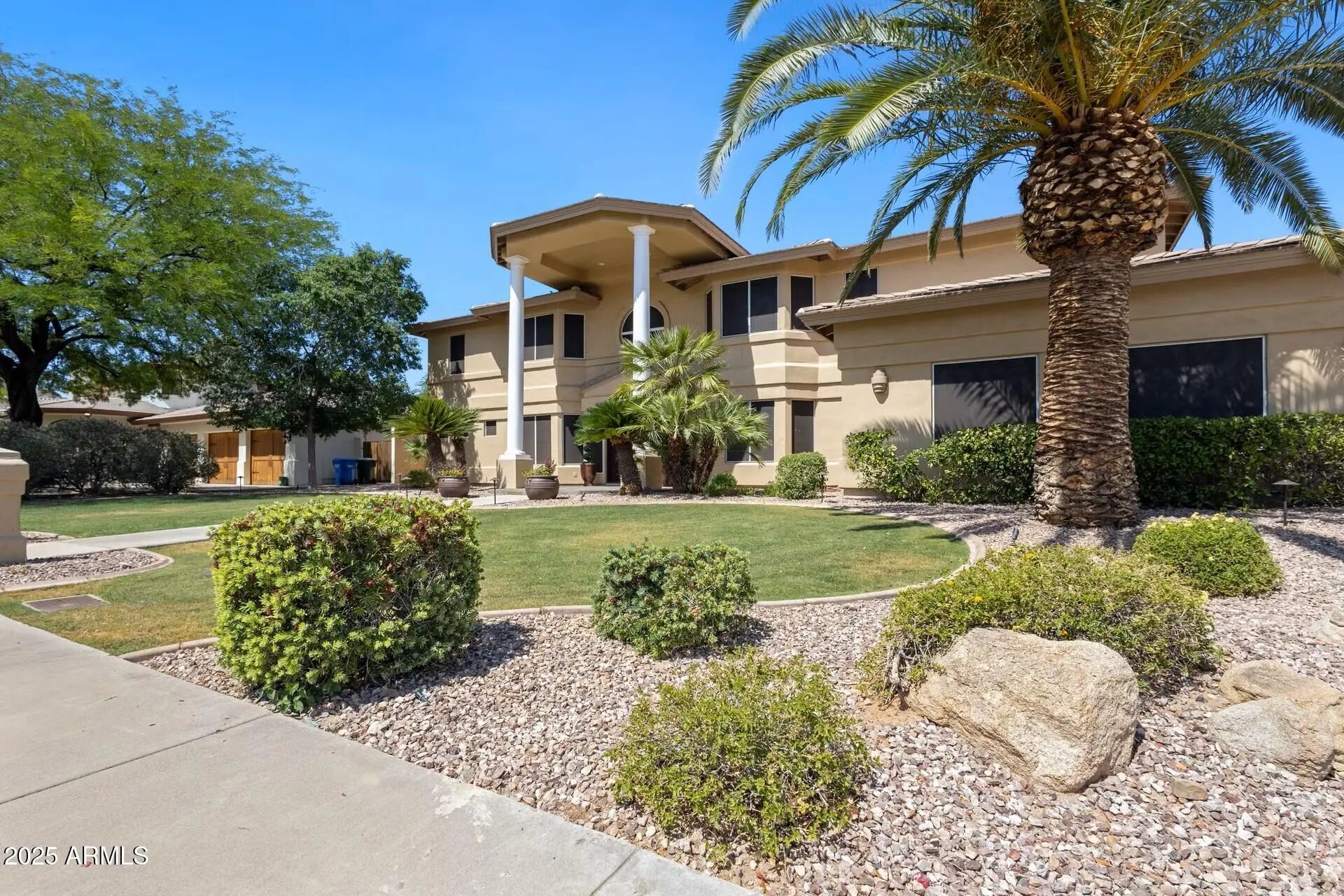 Welcome to this stunning 4,460 square foot traditional home that seamlessly blends elegant living with modern luxury. The main residence offers 3,900 square feet of beautifully appointed living space, complemented by a 550 square foot guest house, creating an exceptional property for both family living and entertaining. From the moment you enter the impressive two-story foyer, you'll be captivated by the thoughtful design and premium finishes throughout. The main level features a spacious master suite retreat with an indulgent spa-like bathroom boasting a heated jetted tub, walk-in shower with body jets, handheld and rain shower heads, dual vanities with granite counters, and two separate toilet rooms. A generous walk-in closet completes this private sanctuary. Entertain with ease in the formal dining room adorned with classic wainscoting, while the soaring two-story formal living room creates a dramatic focal point. The heart of the home flows effortlessly from the vaulted family room with fireplace to the gourmet kitchen, featuring top-of-the-line appliances including a 48-inch Wolf dual fuel range, Sub-Zero 48-inch built-in refrigerator, Sharp microwave drawer, and Bosch dishwasher. The custom hood and oversized island with seating make this a chef's dream, while the breakfast nook opens to spectacular backyard views. A convenient main-floor office with built-in bookcases provides the perfect work-from-home space. Upstairs, three generously-sized bedrooms each feature private ensuite bathrooms, plus a large bonus room offers endless possibilities. The backyard is a true resort oasis featuring a lagoon-style heated pool with diving waterfall rocks and heated spa. Gather around the gas fireplace or fire bowl near the ramada, which houses a complete outdoor kitchen with built-in BBQ, Twin Eagle 36-inch grill with sear station, sink, and beverage refrigerator. The built-in misting system and ceiling fan ensure year-round comfort. The attached one-bedroom, one-bathroom guest house offers complete privacy with its own entrance, full kitchen, living room, and stackable washer/dryer. The accessible walk-in shower with safety grab bars makes this ideal for in-law accommodations. This exceptional property offers the perfect combination of elegant formal living spaces, comfortable family areas, and resort-style outdoor entertainment - all in one magnificent 4,460 square foot package. Prime East Valley Location: Perfectly positioned in the center of the East Valley with convenient access to both the 51 and 101 freeways within 10 minutes, plus nearby shopping. Outdoor enthusiasts will love the short walk down the street to the Phoenix Mountain Preserve and Piestewa Peak park, offering endless riding and hiking trails right at your doorstep.