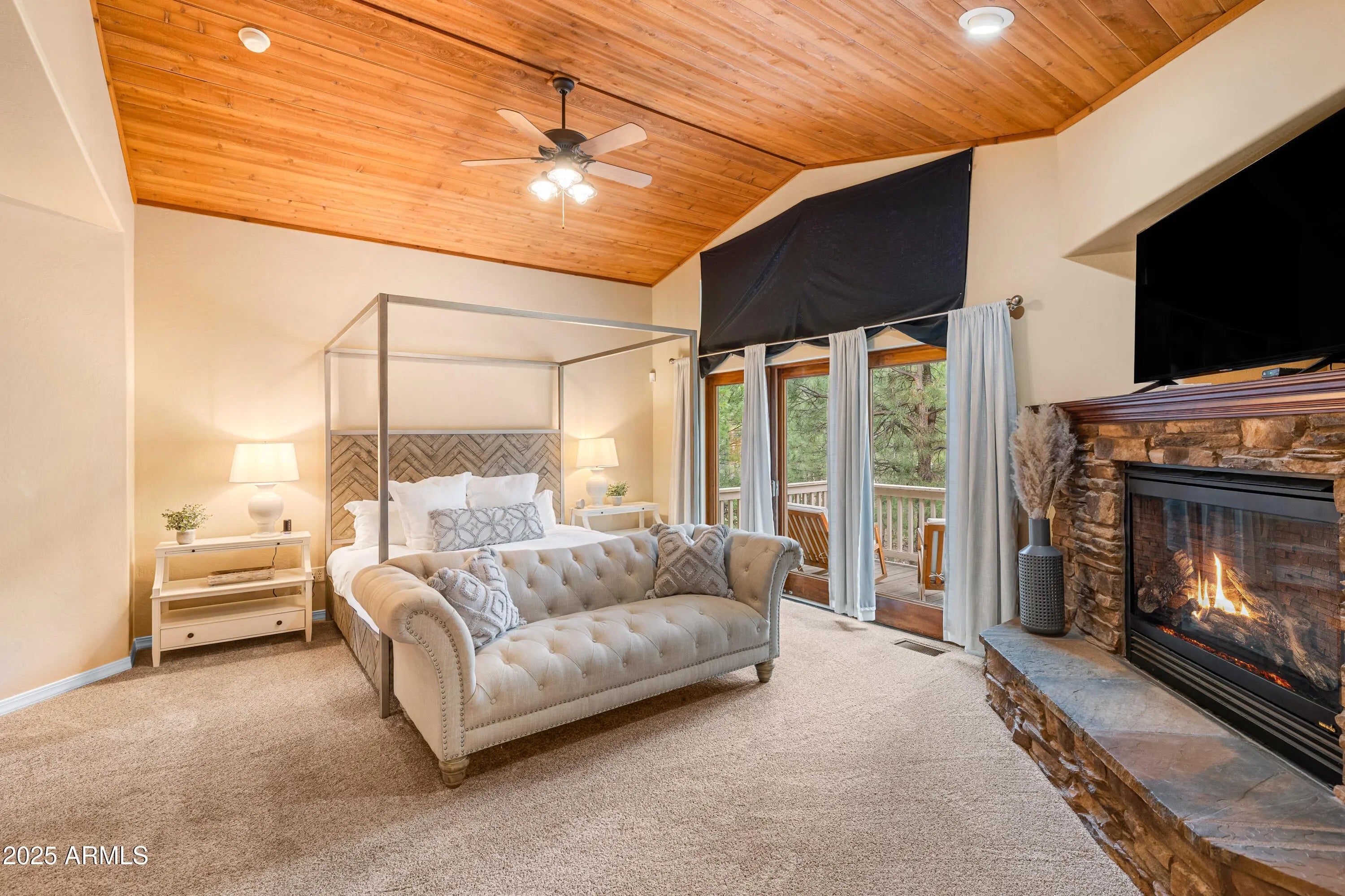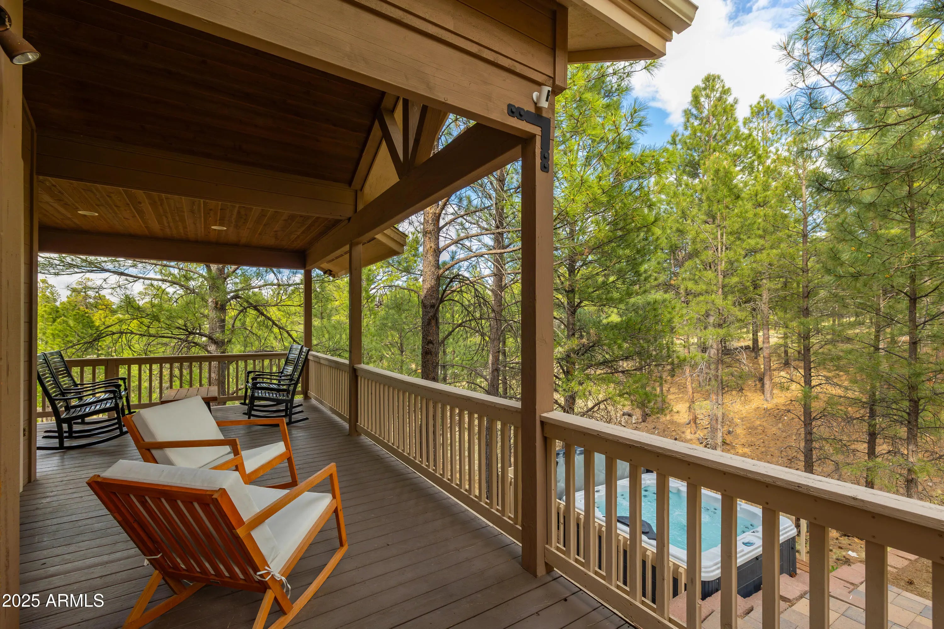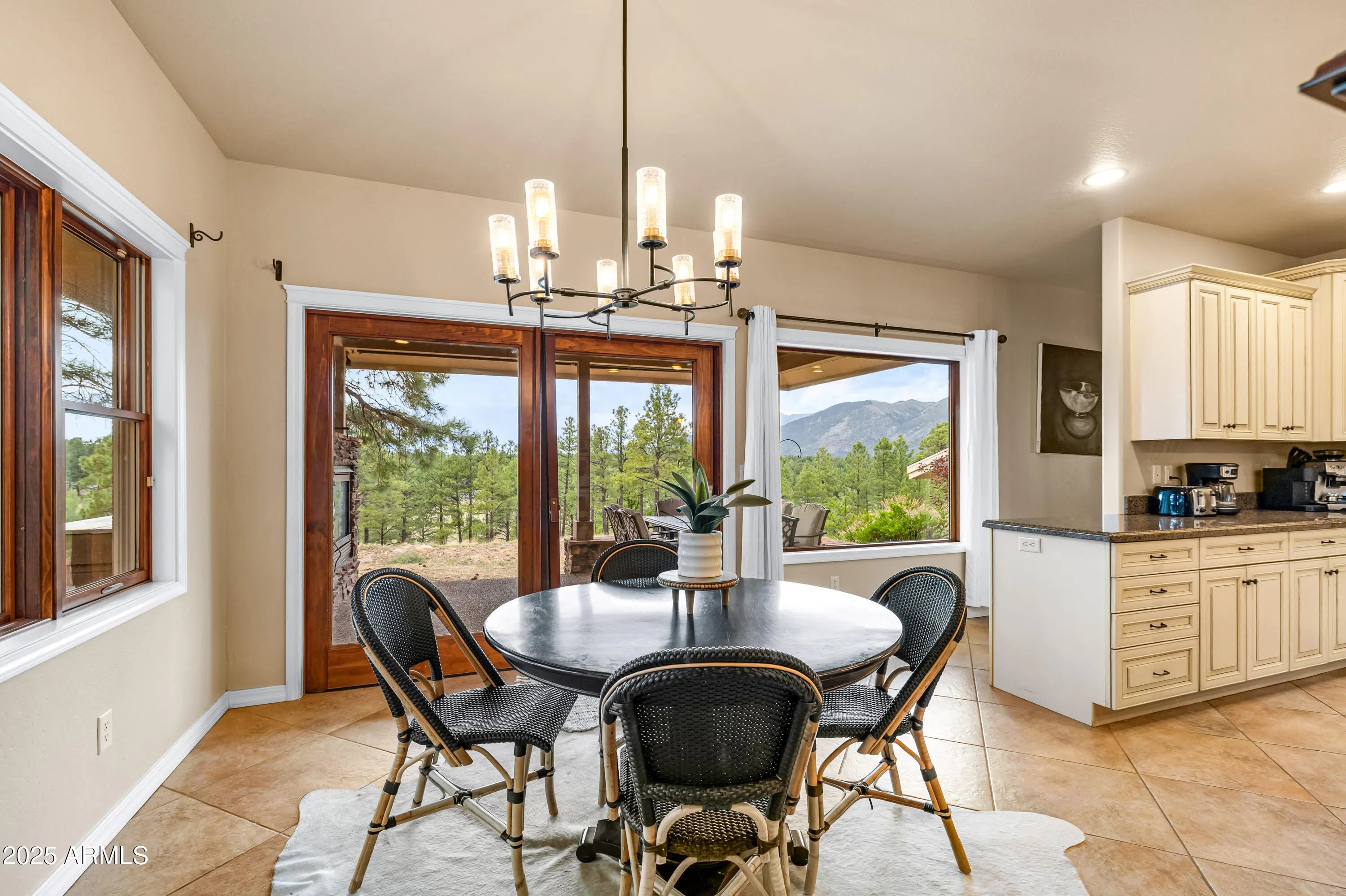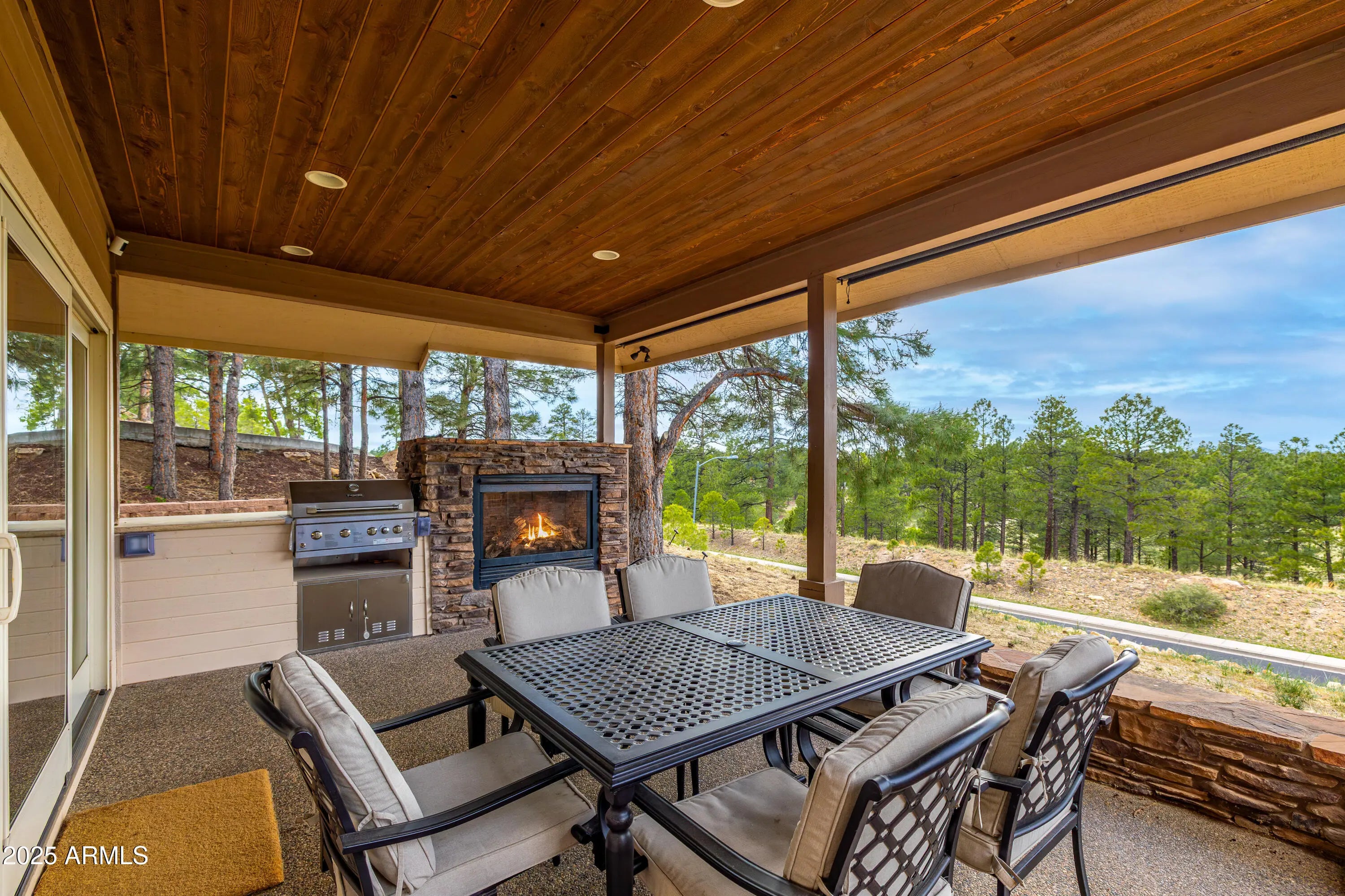 Welcome to 1018 N Amberwood Street - Your dream home in the prestigious Amberwood community of Flagstaff, AZ. Situated on nearly 1.5 acres of beautiful grounds with views of the San Francisco Peaks, this tastefully updated and timeless residence offers a perfect blend of luxury, comfort, and privacy. Boasting 5 spacious bedrooms, 5 well-appointed bathrooms, and a versatile bonus room, this home is designed to accommodate both everyday living and entertaining. The open-concept floor plan features soaring vaulted ceilings, abundant natural light, and high-end finishes throughout. The gourmet kitchen showcases custom two tone cabinetry, sleek granite countertops, farmhouse sink, stainless appliances, and a gas fireplace shared with the dining nook. Retreat to the expansive primary suite with a spa-like bathroom and serene views of the surrounding pines. Each additional bedroom offers comfort and style, with ample storage and complete with their own ensuite bath. The bonus room provides endless possibilities, ideal for a home office, media room, or fitness space. Step outside to enjoy the tranquil outdoor living spaces, complete with a covered patio, mature trees, and plenty of room to relax or entertain. Located in one of Flagstaff's most desirable neighborhoods, you'll enjoy easy access to trails, parks, schools, and downtown amenities while savoring the peace and privacy of your wooded retreat.
