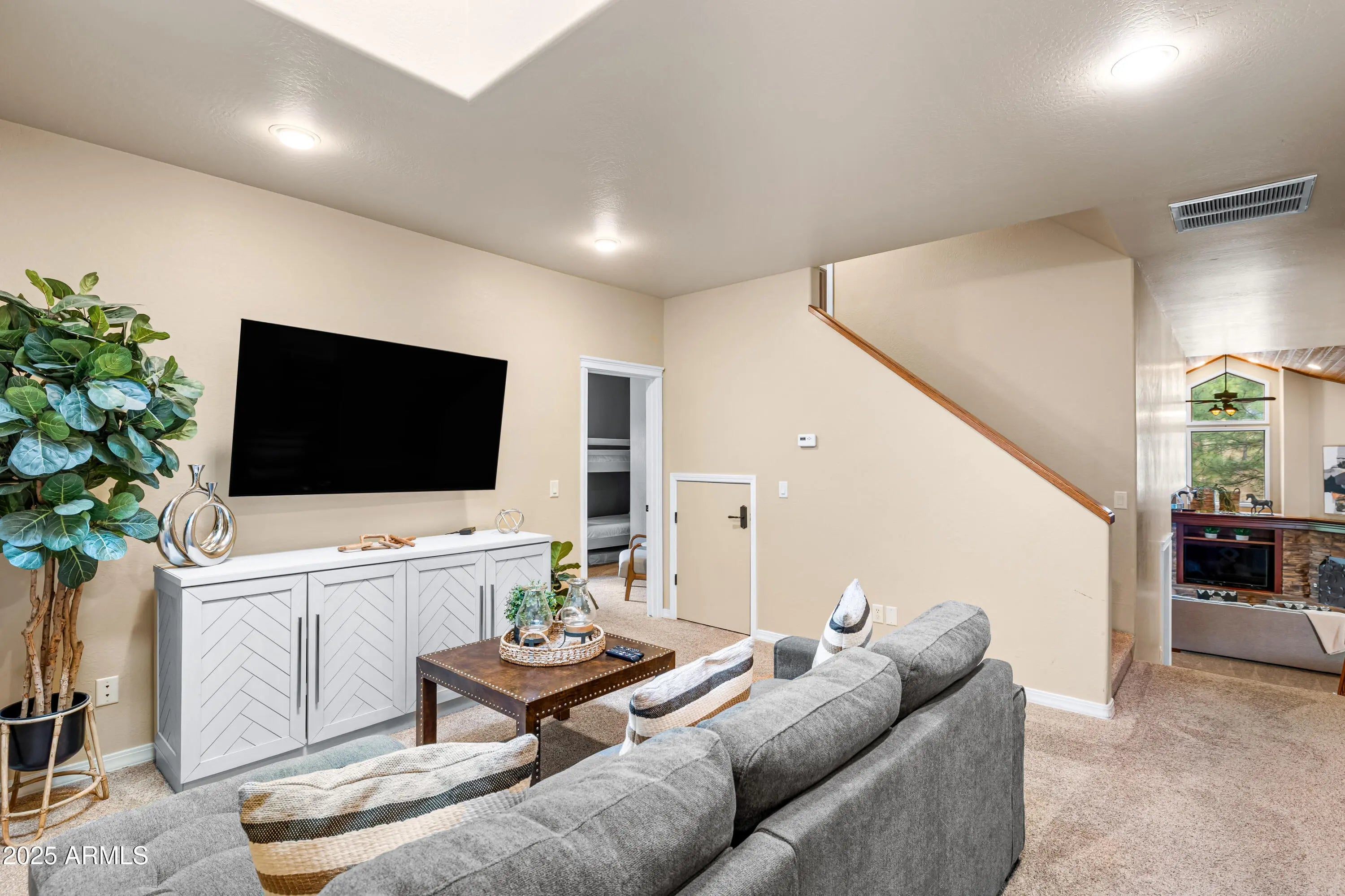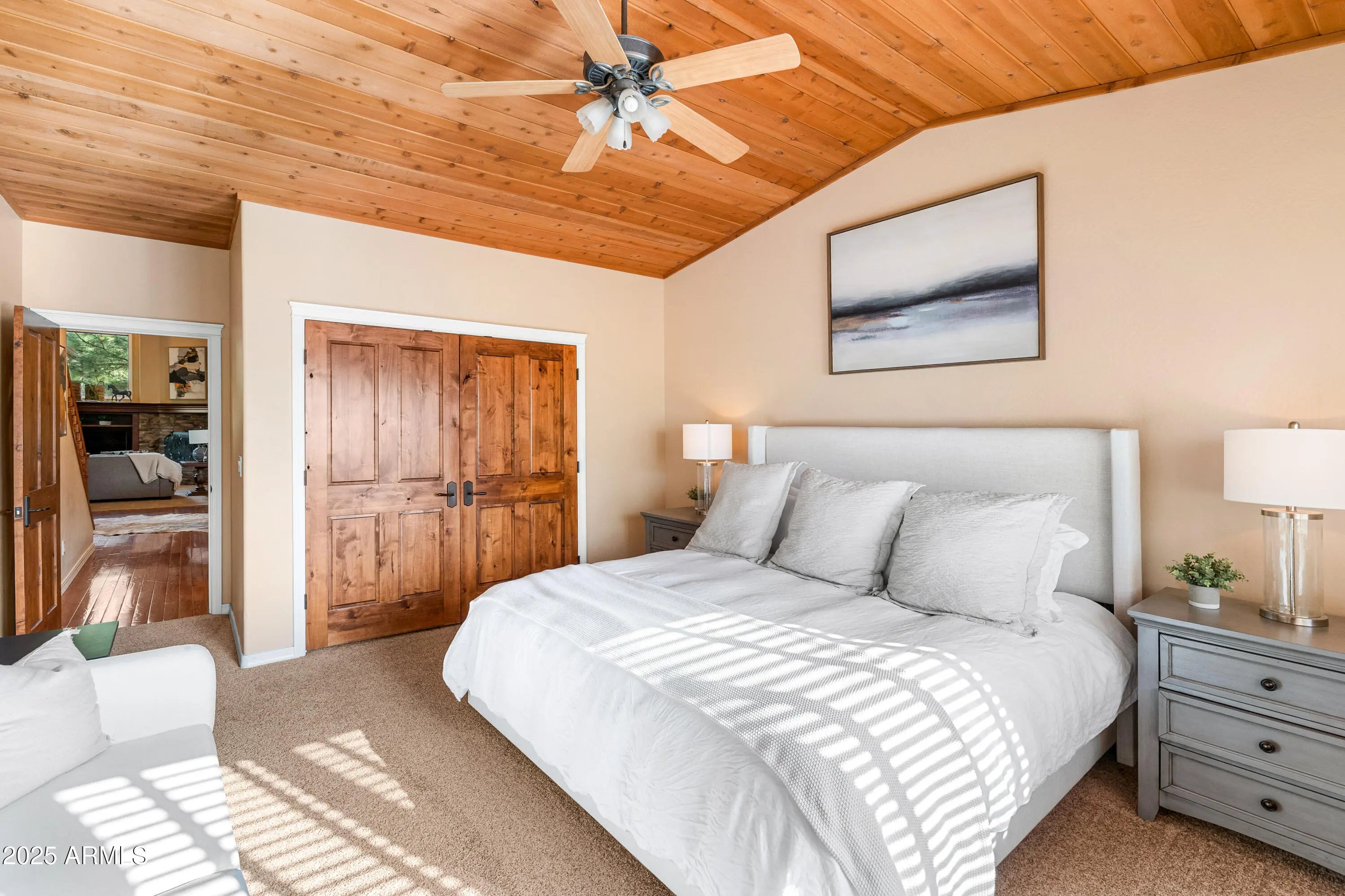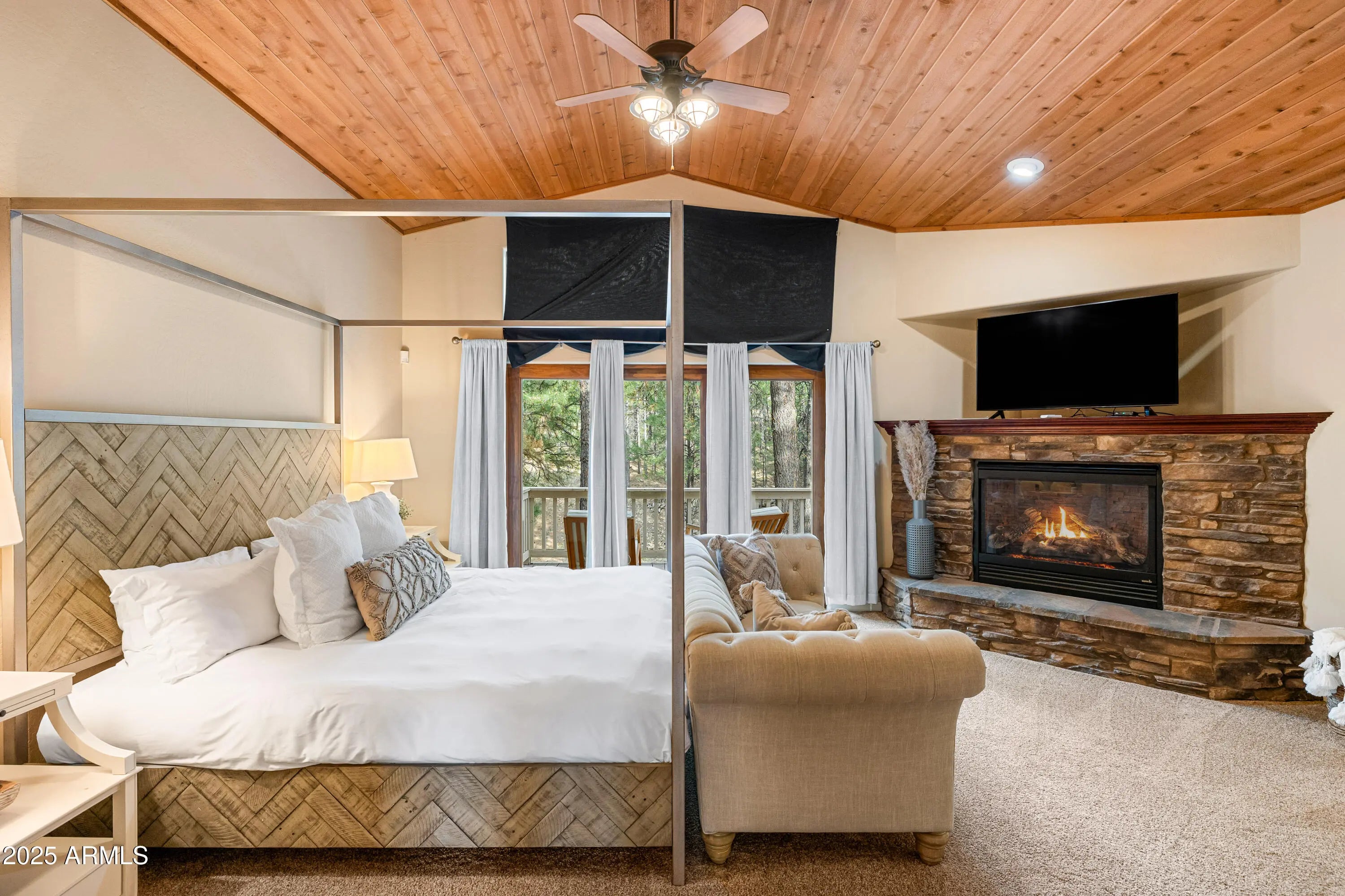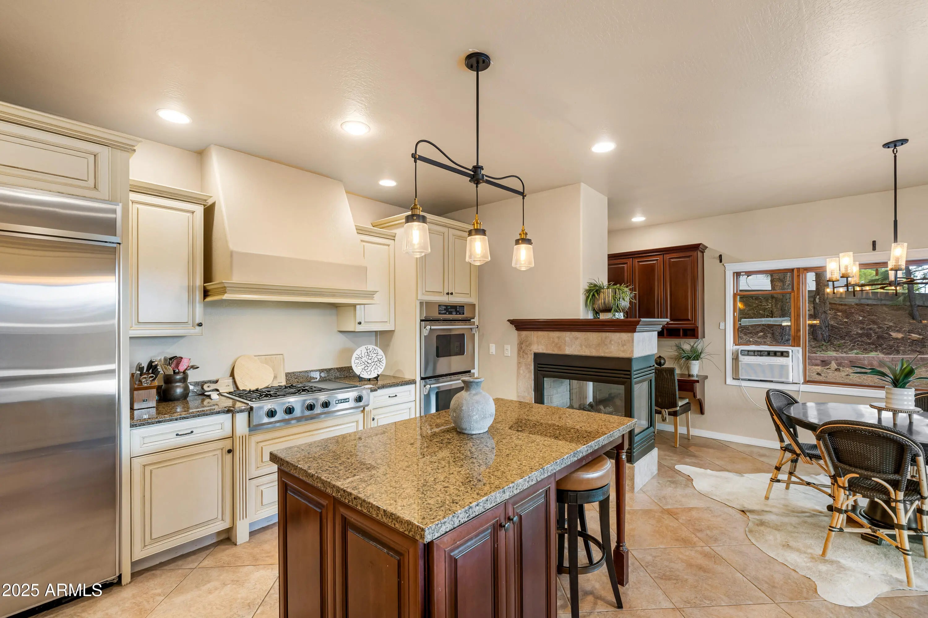 Welcome to 1018 N Amberwood Street - Your dream home in the prestigious Amberwood community of Flagstaff, AZ. Situated on nearly 1.5 acres of beautiful grounds with views of the San Francisco Peaks, this tastefully updated and timeless residence offers a perfect blend of luxury, comfort, and privacy. Boasting 5 spacious bedrooms, 5 well-appointed bathrooms, and a versatile bonus room, this home is designed to accommodate both everyday living and entertaining. The open-concept floor plan features soaring vaulted ceilings, abundant natural light, and high-end finishes throughout. The gourmet kitchen showcases custom two tone cabinetry, sleek granite countertops, farmhouse sink, stainless appliances, and a gas fireplace shared with the dining nook. Retreat to the expansive primary suite with a spa-like bathroom and serene views of the surrounding pines. Each additional bedroom offers comfort and style, with ample storage and complete with their own ensuite bath. The bonus room provides endless possibilities, ideal for a home office, media room, or fitness space. Step outside to enjoy the tranquil outdoor living spaces, complete with a covered patio, mature trees, and plenty of room to relax or entertain. Located in one of Flagstaff's most desirable neighborhoods, you'll enjoy easy access to trails, parks, schools, and downtown amenities while savoring the peace and privacy of your wooded retreat.