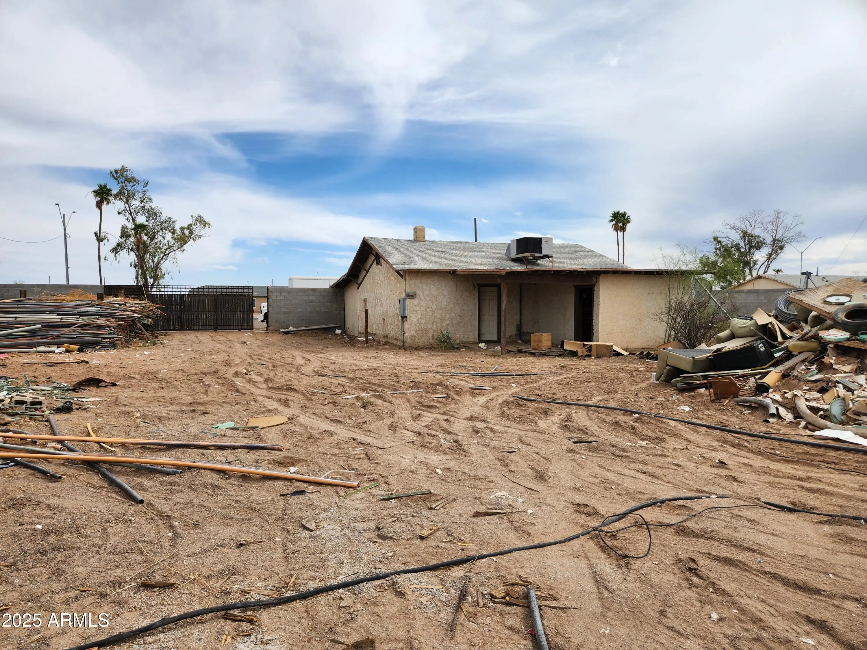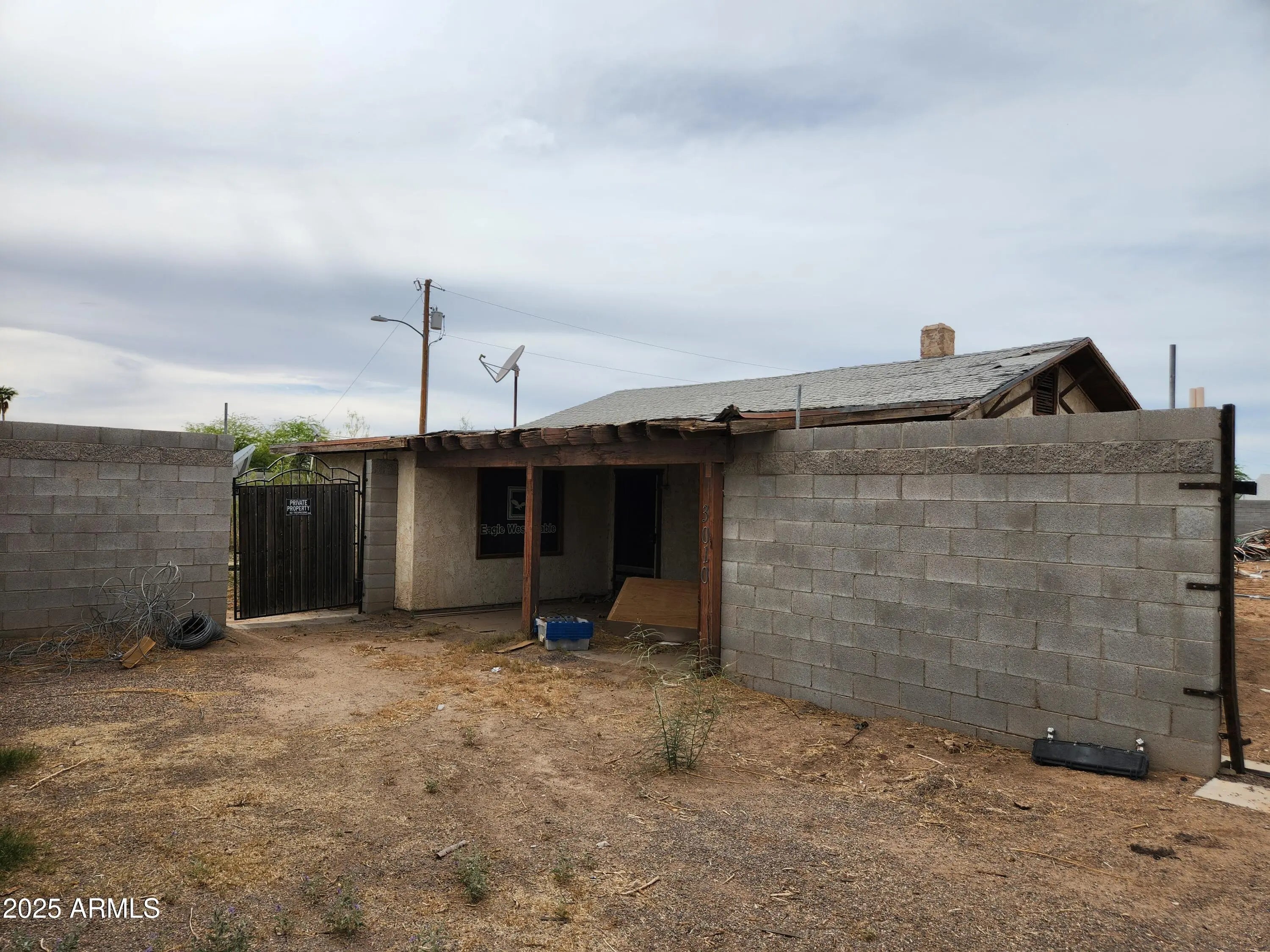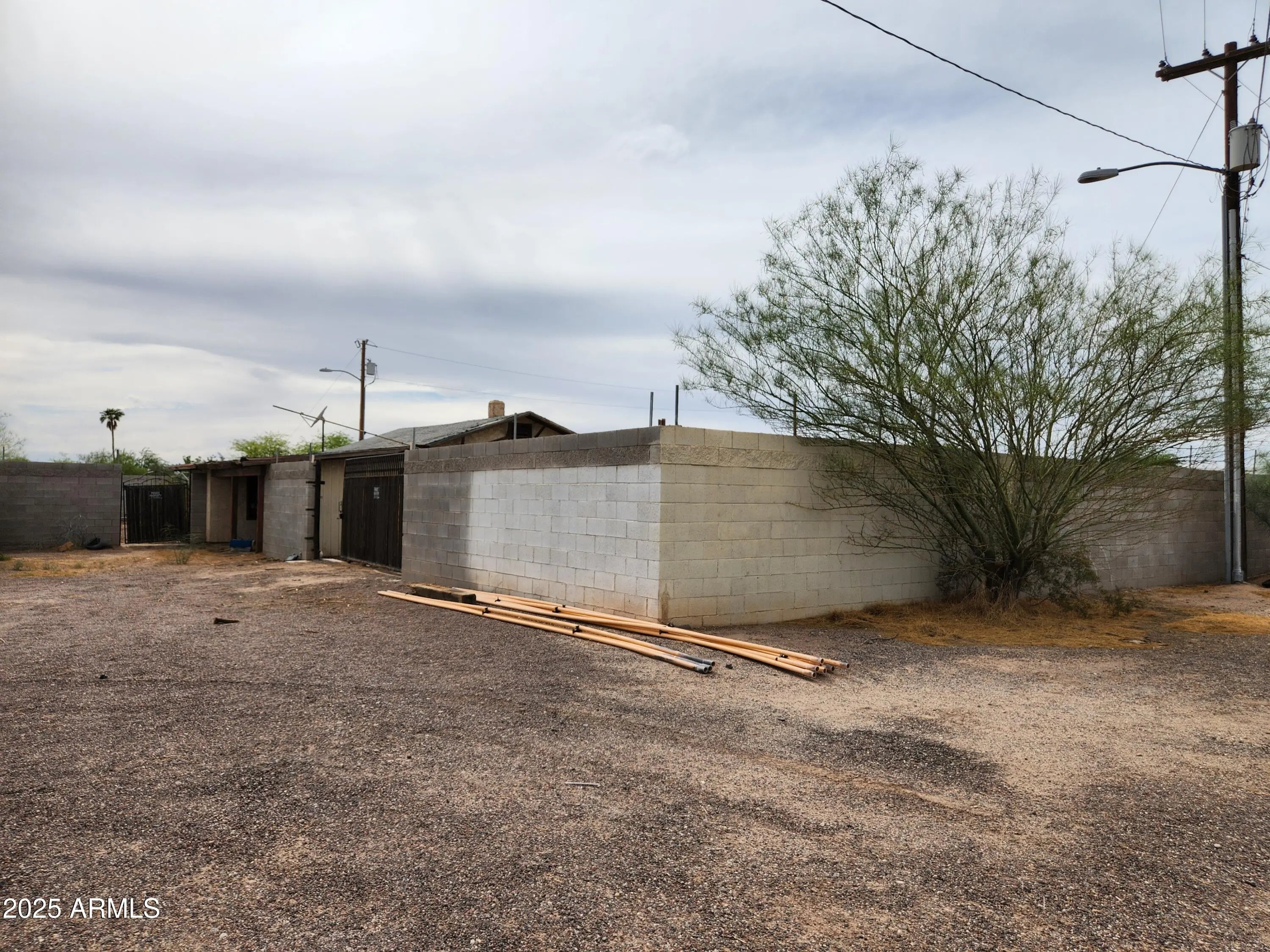 Prime 0.74-acre commercial property in Eloy, AZ, comprised of two fenced parcels with multiple gated access points. Zoned C-1, ideal for professional office, retail, or commercial use needing a small office and large, secure yard. Features an 857 sq ft concrete block office building. Property is in distressed condition; some personal property will remain after the sale. Aggressively priced for investors or business owners seeking value-add potential. Per city zoning staff, property may be eligible for rezoning to R1-6 or medium-high density residential, allowing for duplexes, multiplexes, or small apartment buildings. Not eligible for C-2 zoning, industrial use, or heavy equipment parking.