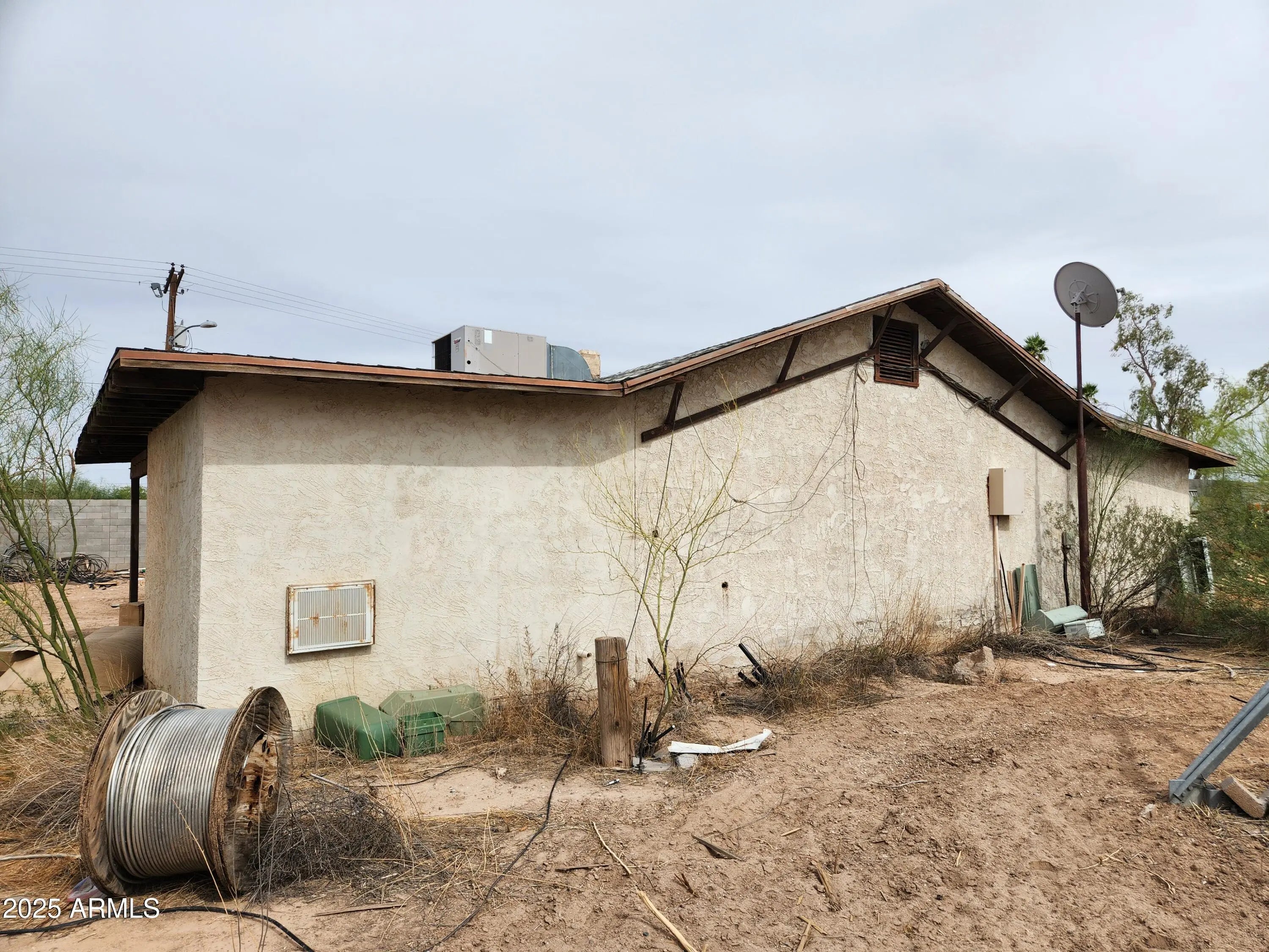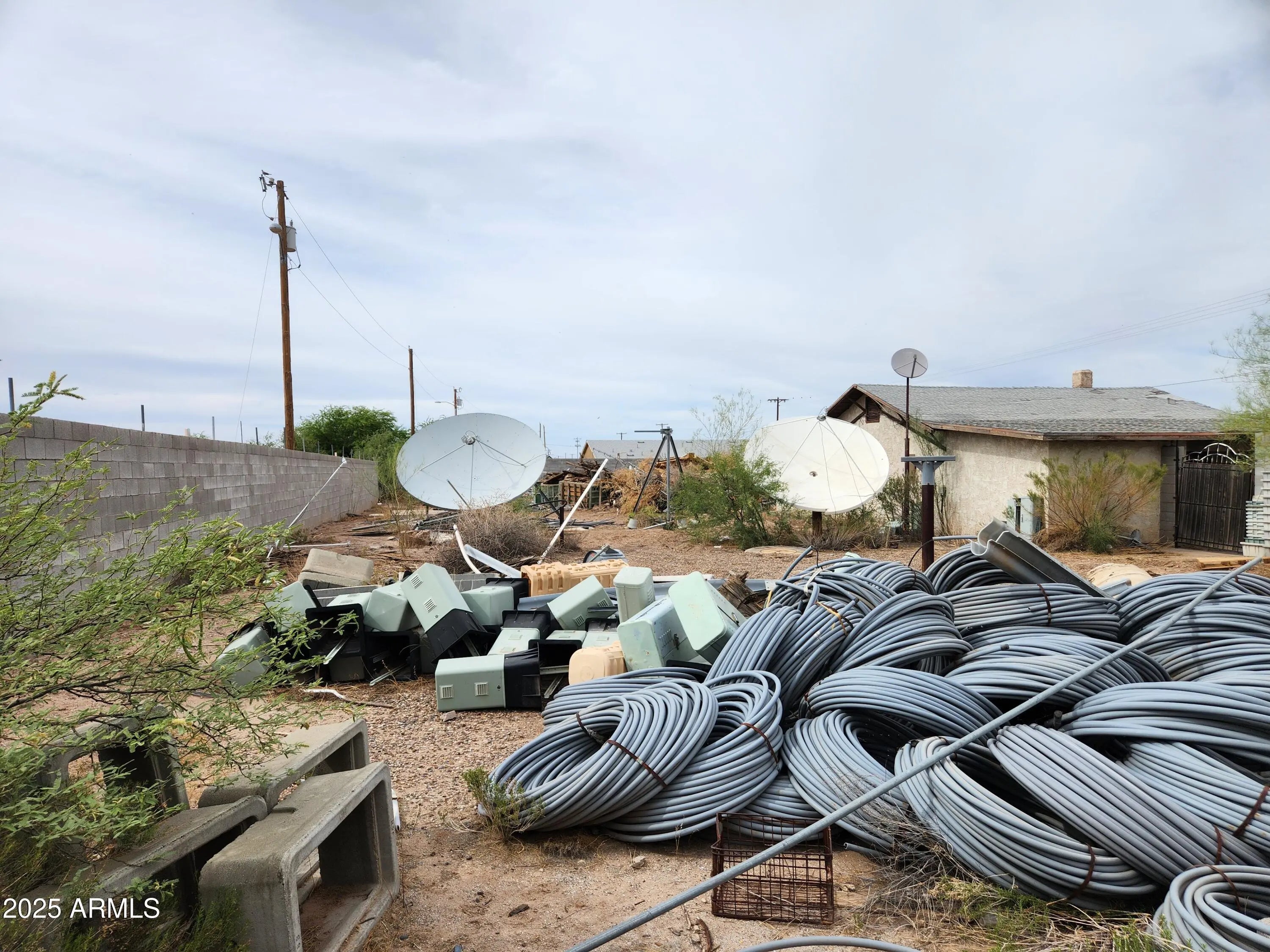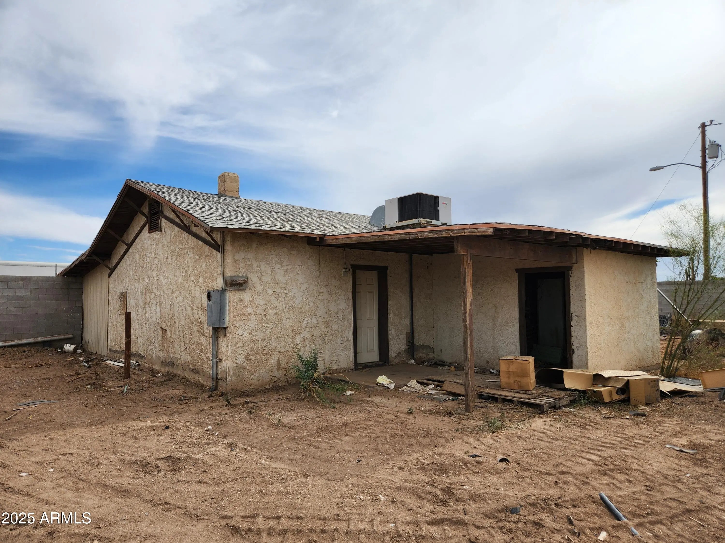 Prime 0.74-acre commercial property in Eloy, AZ, comprised of two fenced parcels with multiple gated access points. Zoned C-1, ideal for professional office, retail, or commercial use needing a small office and large, secure yard. Features an 857 sq ft concrete block office building. Property is in distressed condition; some personal property will remain after the sale. Aggressively priced for investors or business owners seeking value-add potential. Per city zoning staff, property may be eligible for rezoning to R1-6 or medium-high density residential, allowing for duplexes, multiplexes, or small apartment buildings. Not eligible for C-2 zoning, industrial use, or heavy equipment parking.