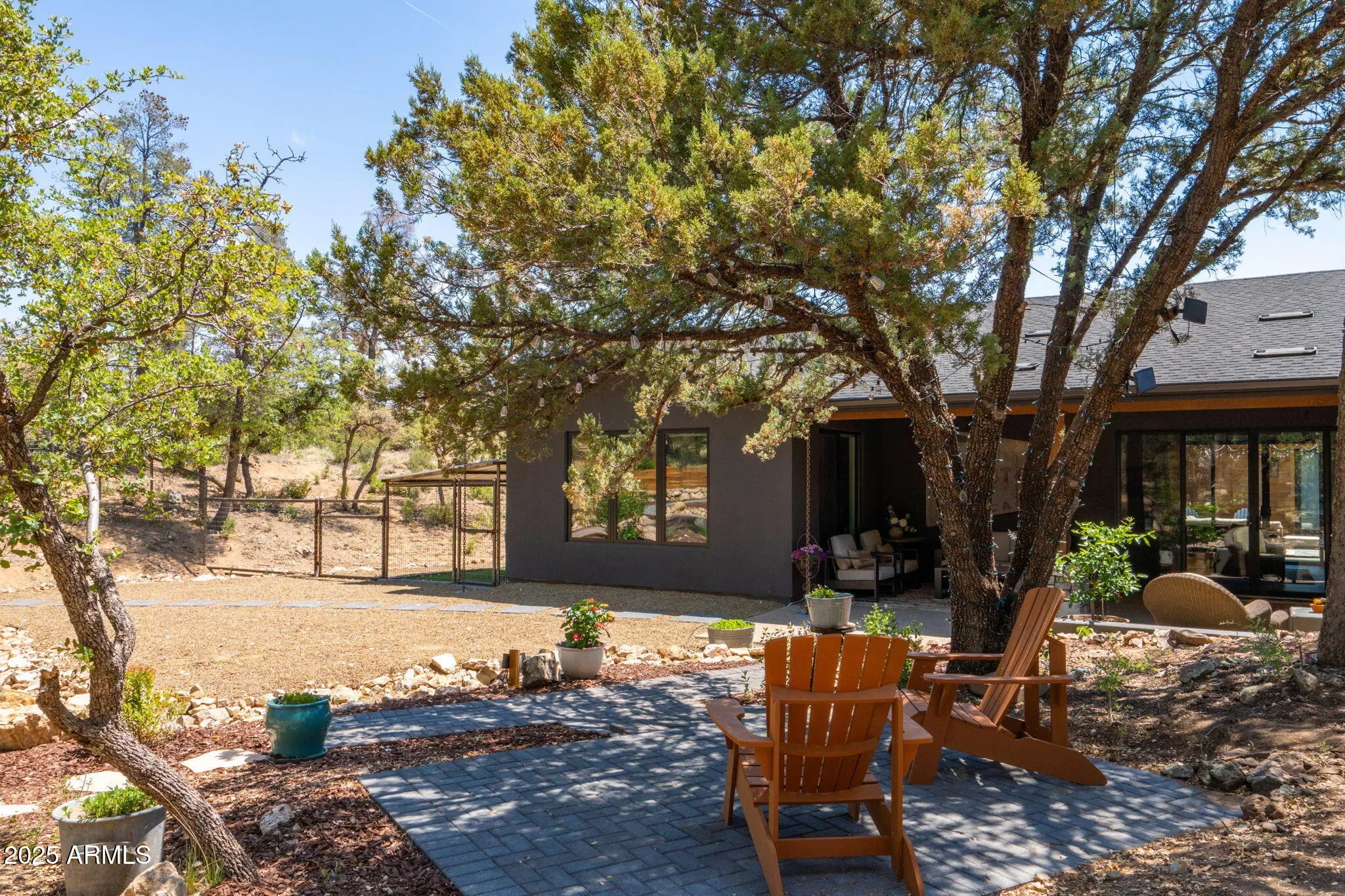 Stunning single level custom home on nearly an acre just minutes from downtown Prescott. Construction completed in 2024 as the builders personal residence, this home has everything. The open and inviting layout surrounding a large courtyard makes you feel like you're living in your own private oasis. You'll love entertaining in the large private fenced backyard, complete with a full covered patio and outdoor kitchen, or just enjoying sitting by the fire listening to the creek water feature. The inside of the home is just as impressive; with white oak flooring throughout., vaulted tongue and groove ceiling, and a well thought out floor plan with spacious rooms and high ceilings. high end appliances, including a 48" gas stove and an additional refrigerator in the walk in pantry. There's plenty of room for your cars and toys, as there's a oversize 3 car garage and attached RV garage with tons of storage. And as a bonus, no HOA!! Owner is listing agent/contactor. For clarification, there are 3 possible bedrooms inside, and 1 bedroom in the casita. Please see attached floor plan.