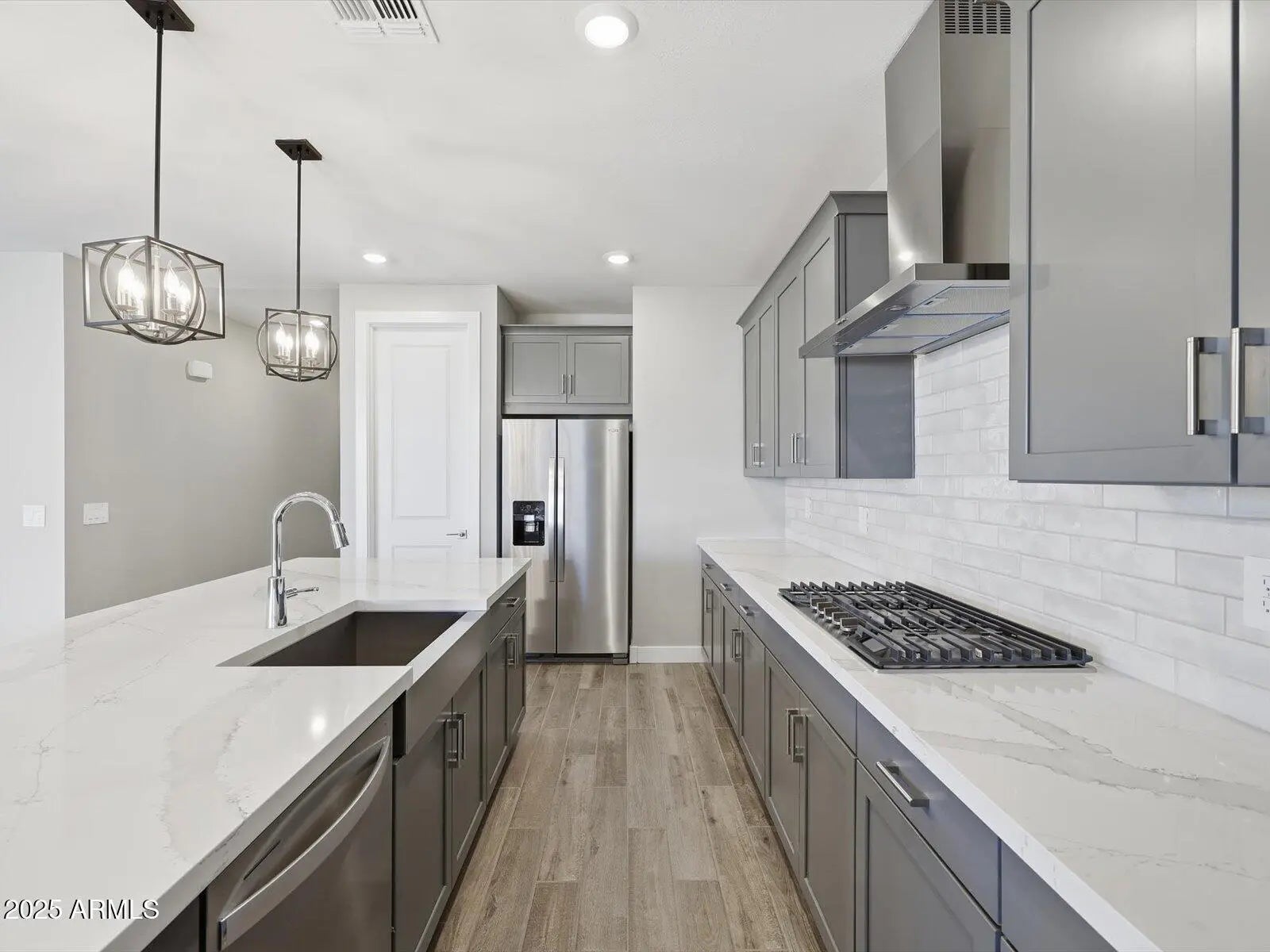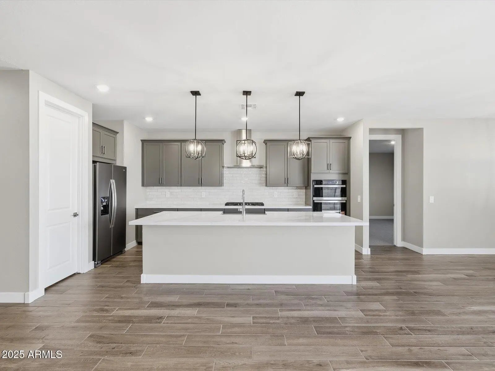 Discover the perfect blend of space, style, and convenience in this beautiful Amber floorplan. This thoughtfully designed single-story home offers 4 bedrooms, 2.5 baths, 3-car garage, a GOURMET KITCHEN with a separate cooktop and wall oven. Enjoy outdoor living with a large covered back patio. This home is finished with Boulder cabinets, quartz kitchen counter, tile backsplash, wood-look tile floor and carpet in the bedrooms! INCLUDED - washer, dryer, window blinds, refrigerator! Enjoy EXCLUSIVE community amenities. Shopping, restaurants, entertainment nearby. Each home is built with innovative, energy-efficient features designed to help you ENJOY more SAVINGS!