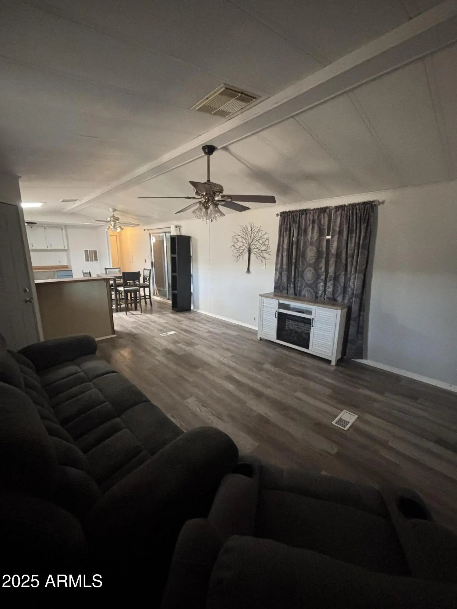 Well-maintained manufactured home featuring 2 bedrooms, 2 baths, a large kitchen, and an open floor plan with new vinyl flooring. Enjoy the oversized enclosed Arizona room with custom double doors for golf cart parking. Includes a 2-car carport—comfortable, functional, and move-in ready!