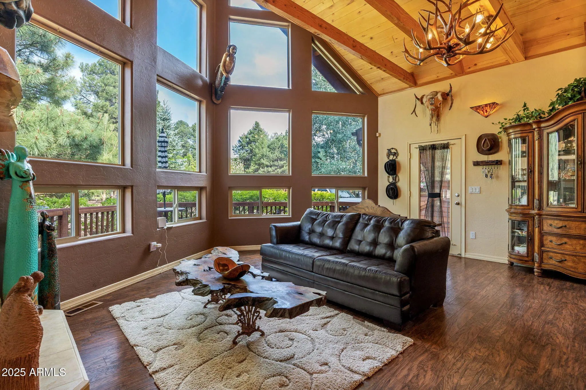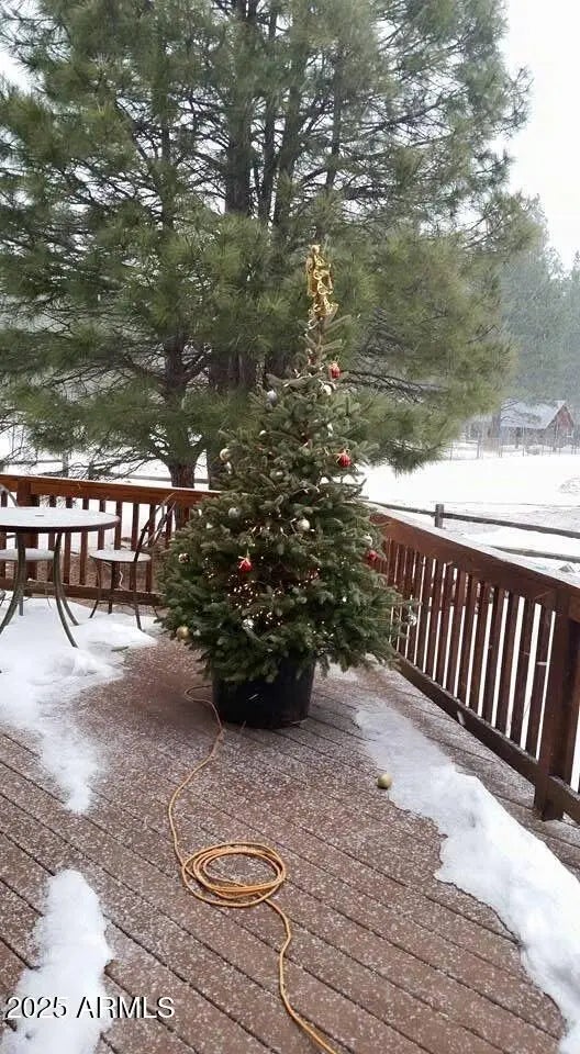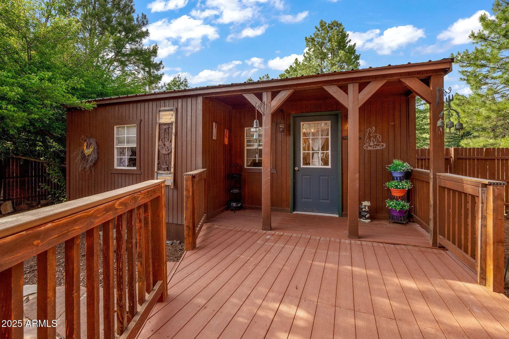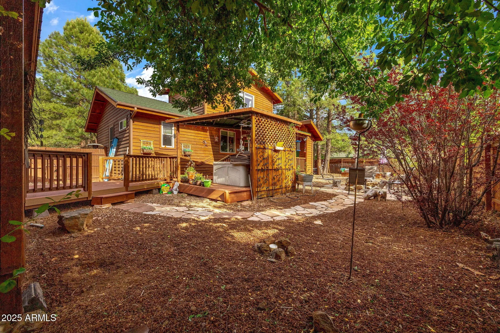 Welcome to the dream home you've been waiting for in the highly sought-after Pinetop Lakes Equestrian community! Tucked away on a quiet cul-de-sac and perched on a premium end lot, this nearly 1/3 acre property offers unmatched privacy--bordering private forest land with no neighbors behind or beside you. This beautifully crafted custom Chalet-style cabin features 3 bedrooms, 2 bathrooms, and 1,529 sq ft of charm and functionality--plus an adorable detached casita (~400 sq ft) complete with its own bedroom, bathroom, and kitchenette--perfect for guests, multigenerational living, or rental income. Additional highlights include RV parking with full hook-up and an extended 2-car garage. Step inside to soaring vaulted ceilings, dramatic wood beams, decorative windows, and an abundance of natural light. The home showcases rich wood-look laminate floors, skylights, custom two-tone paint, elegant chandeliers, and a cozy gas fireplace--all tied together with tasteful, designer finishes. The chef's kitchen is fully upgraded with granite countertops, tiled backsplash, custom cabinetry, stainless steel appliances, a large pantry, recessed lighting, and generous workspace. The floor plan offers two bedrooms and a full bath on the main level, with an additional bedroom, bath and spacious loft upstairs. The detached guest casita feels like something out of a storybook--charming and well-appointed, ideal as a mother-in-law suite, rental unit, or private retreat. Step outside into your very own private outdoor sanctuary, featuring a spa, gazebo, BBQ Grill with Natural Gas Hook up, and extended front and back porches perfect for entertaining or peaceful mountain evenings. The landscaping is exceptional, with planter boxes, fruit trees (apple and pear), lush greenery, and a custom granite firepit surrounded by flagstone. Whether you're looking for a full-time residence, vacation getaway, or investment property with short-term rental potential, this home checks every box. As part of the prestigious Pinetop Lakes Equestrian community, you'll enjoy access to outstanding amenities: a clubhouse, media room, heated pool & spa, fitness center, pickleball, tennis & racquetball courts, walking and biking trails, a playground, golf, and horse privileges with equestrian facilities. Don't miss this truly one-of-a-kind opportunity in one of Pinetop's most exclusive neighborhoods! Total square footage includes detached casita and primary structure, thank you!