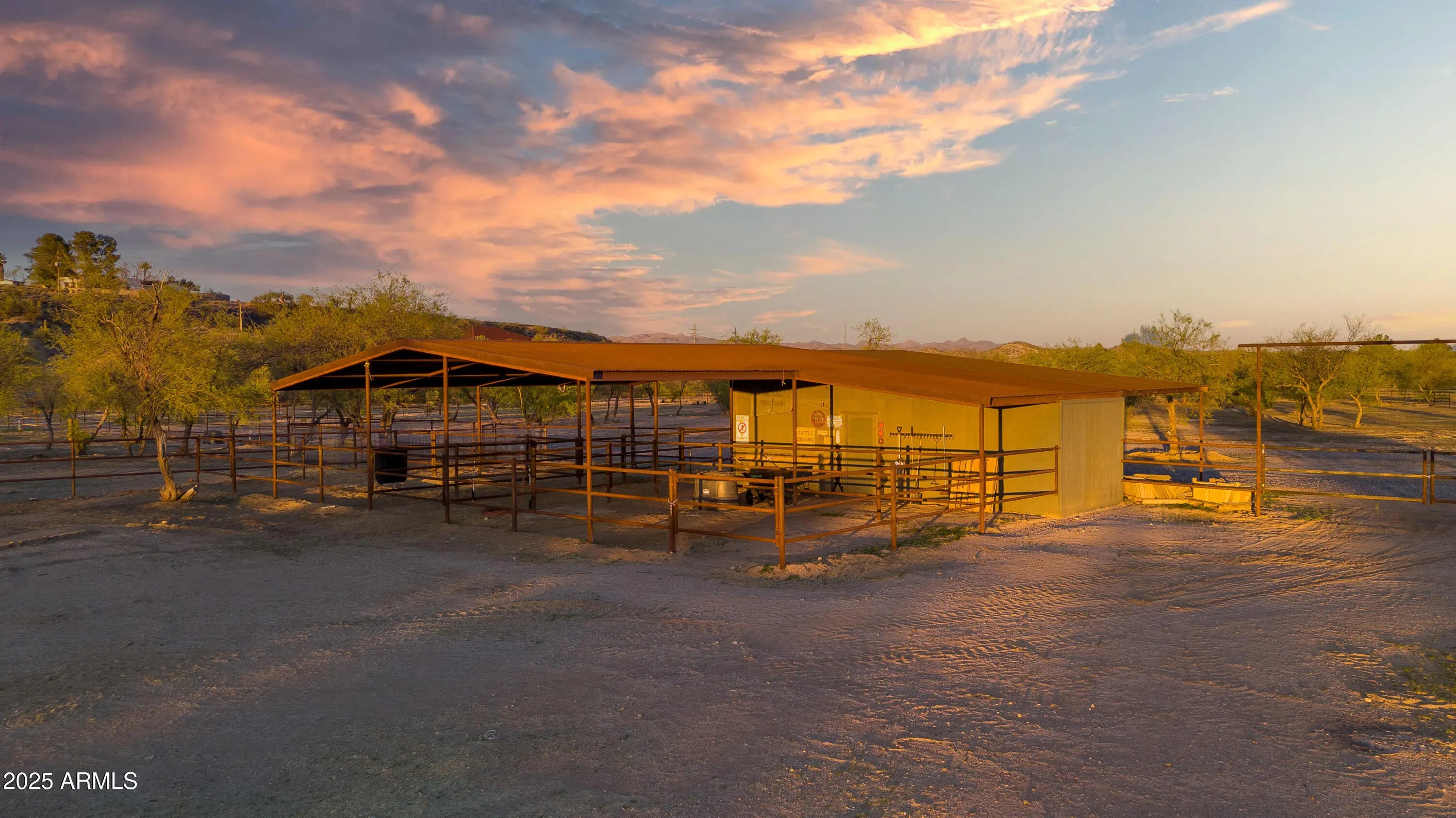 Welcome home! Unique and rare opportunity to own a custom and privately gated 3 bedroom, 3.5 bath home, in town, on 10 acres of horse property. This stunning home features a range of impressive amenities. The interior offers a perfect balance of natural light and cozy elegance. The thoughtful split floor plan features 3 en-suite bedrooms plus a flex room that can serve as an office, home gym or craft room, spacious kitchen with vaulted ceilings, and 2 large walk in pantries. The extended 2 car garage has its own separate entry, utility sink and shop vac system. RV gate to the south, equipped with full RV hookup. Enjoy the natural beauty of the surrounding desert mountains from the backyard while overlooking the horse set up below. The property benefits from a 50/50 shared water well and has its own 50 gallon water tank. The property offers the perfect set up for horse lovers and those seeking a soothing desert lifestyle. The 10 acres boasts a 60' round pen, 2 pastures and 3 stalls measuring 20' x 30'. 15' covered and 15' exposed. All are piped fenced with water. There is also a 10' x 20' tack room, a 10' x 10' feed room with trailer carport and a 24' x 24' green house with water. Quite literally a dream property. Come take a look for yourself and let's make it yours!