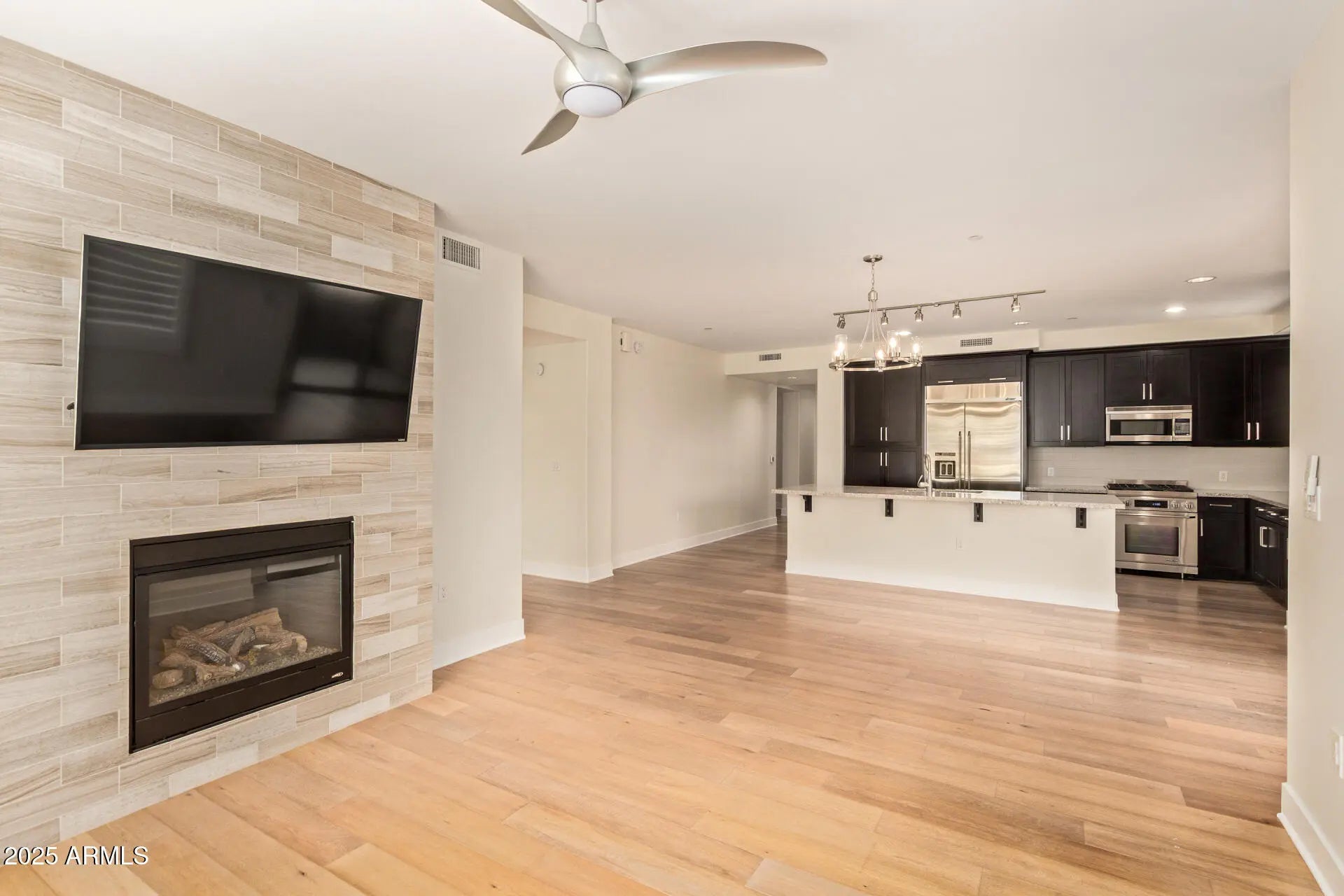 ASSUMABLE LOAN! Enjoy resort-style living in the prestigious Sage Luxury Condominiums, including an upscale clubhouse w/ state of the art fitness center, sparkling pool, hot tub, sophisticated gathering spaces, built-in bbq's & outdoor eating areas. This premium first-floor unit offers direct canal access & breathtaking mountain views! Perfectly situated within walking distance to Scottsdale Fashion Square & renowned dining, this 2-bedroom, 2-bath, plus den home combines luxury & convenience. Featuring a modern split floor plan w/ newly refinished hardwood floors, fresh interior paint, new shutters & a brand-new HVAC system, this residence is move-in ready. The gourmet kitchen showcases mahogany cabinetry, granite countertops, stainless steel appliances, gas range & flows seamlessly into the spacious family room w/ a cozy fireplace & serene views. The primary suite offers a walk-in closet & spa-like bath w/ dual vanities, granite counters, a luxury soaking tub & separate shower. Enjoy your own designated parking space w/ EV charger for your convenience. Come see this premier property today!