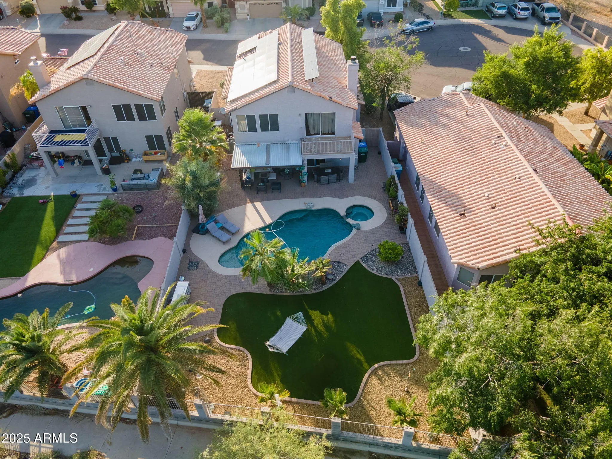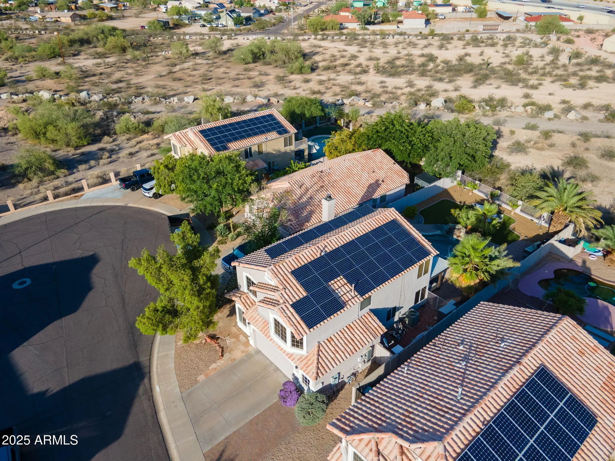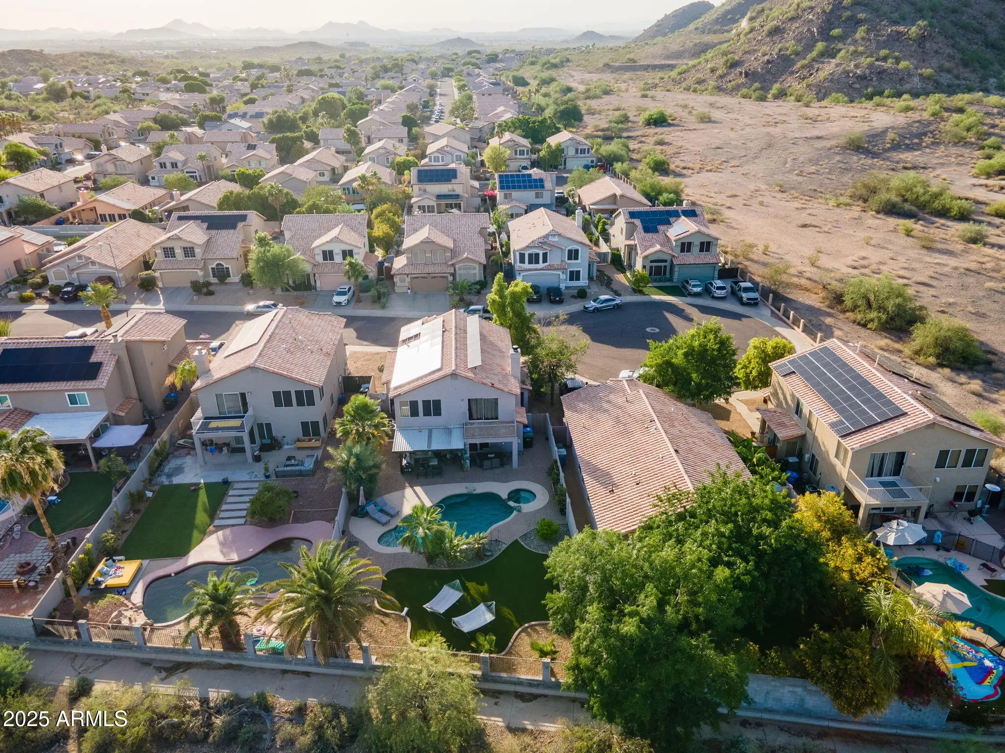Experience unmatched serenity in a large, private backyard oasis—no neighbors behind, just nature- tucked into a quiet cul-de-sac with breathtaking views of the Scarlett Canyon Desert Preserve. This beautiful home features a Pebble-Tech pool with water feature, spa, covered patio, mature landscaping and low-maintenance turf. Ideal for year-round relaxing and entertaining. Upstairs you'll find 4-beds, 2 baths, and a giant sized loft with a balcony, offering plenty of room for everyone. And you'll appreciate the convenience of the upstairs laundry room. Downstairs presents a large den, perfect for a home office, or a 5th bedroom and a nearby, large powder room that can easily be converted into a full bath. NEWER AC unit and solar panels help keep electric bills among the LOWEST in t Valley! Located within the Pinnacle Peak High School boundary and minutes from Desert Ridge for top dining, shopping, and entertainment. Easy access to Loop 101, Cave Creek Rd. and Hwy 51 makes commuting to Scottsdale, Glendale, or Cave Creek a breeze. Say hello to your new HOME!