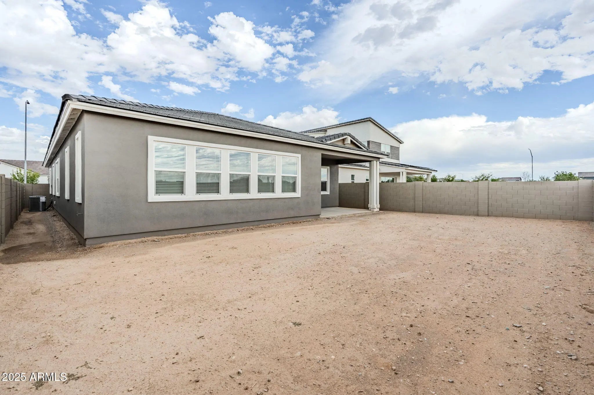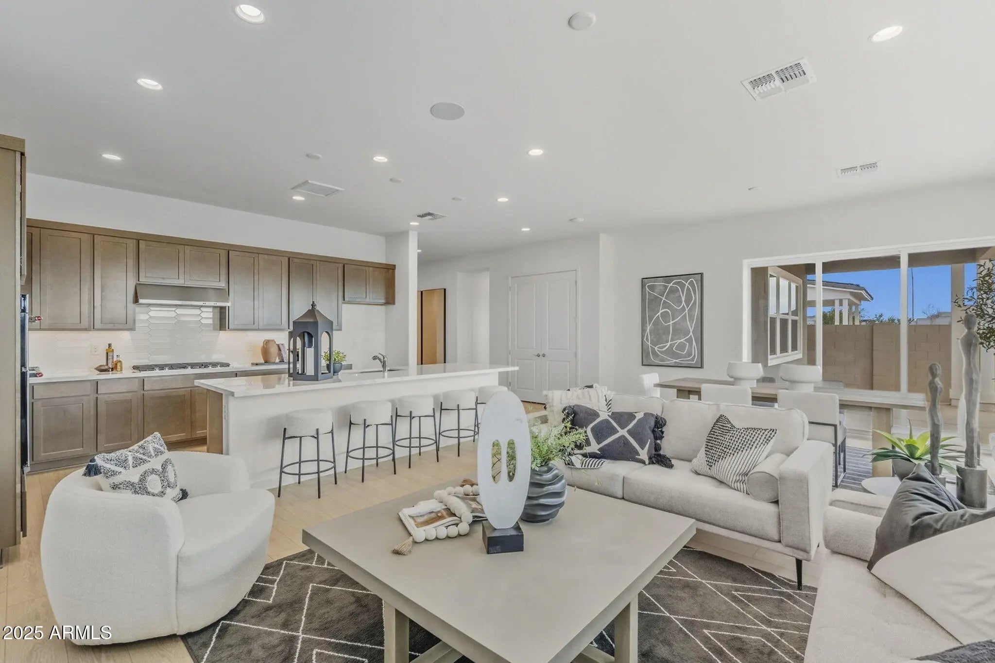 This beautifully designed 3-bedroom, 2.5-bath single-level home blends comfort and elegance with thoughtful details throughout. Off the foyer, a spacious flex den is perfect for a home office, game room, or extra living space. The modern kitchen boasts quartz countertops, stainless steel appliances, and opens to a large great roomâideal for daily living or entertaining. Large windows fill the space with natural light and offer peaceful backyard views. Enjoy the covered patio and spacious yardâperfect for creating your own desert retreat. The backyard will be completed with pavers and designer landscaping. The home is finished with endless upgrades. Do not miss your chance to own this beautiful home!