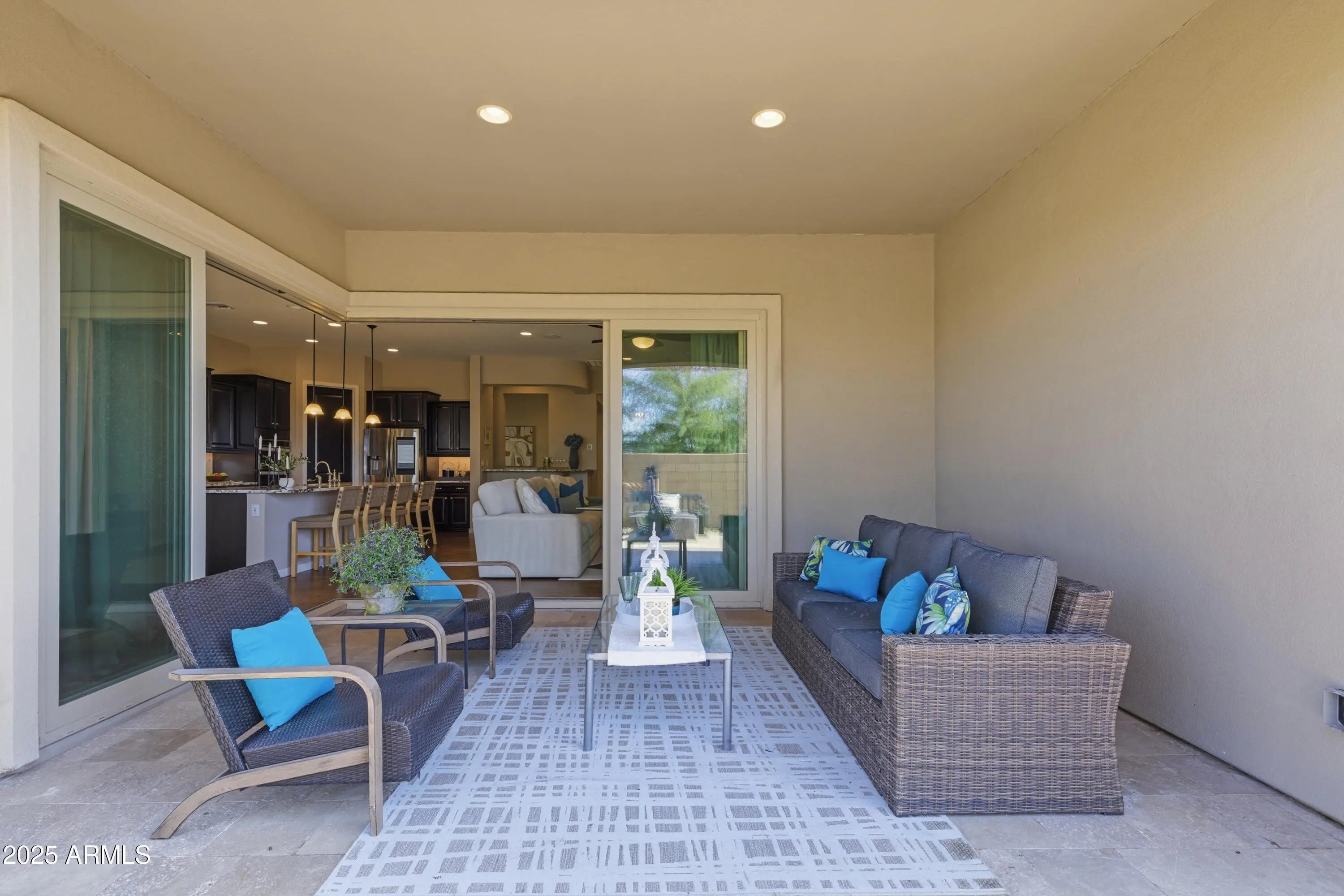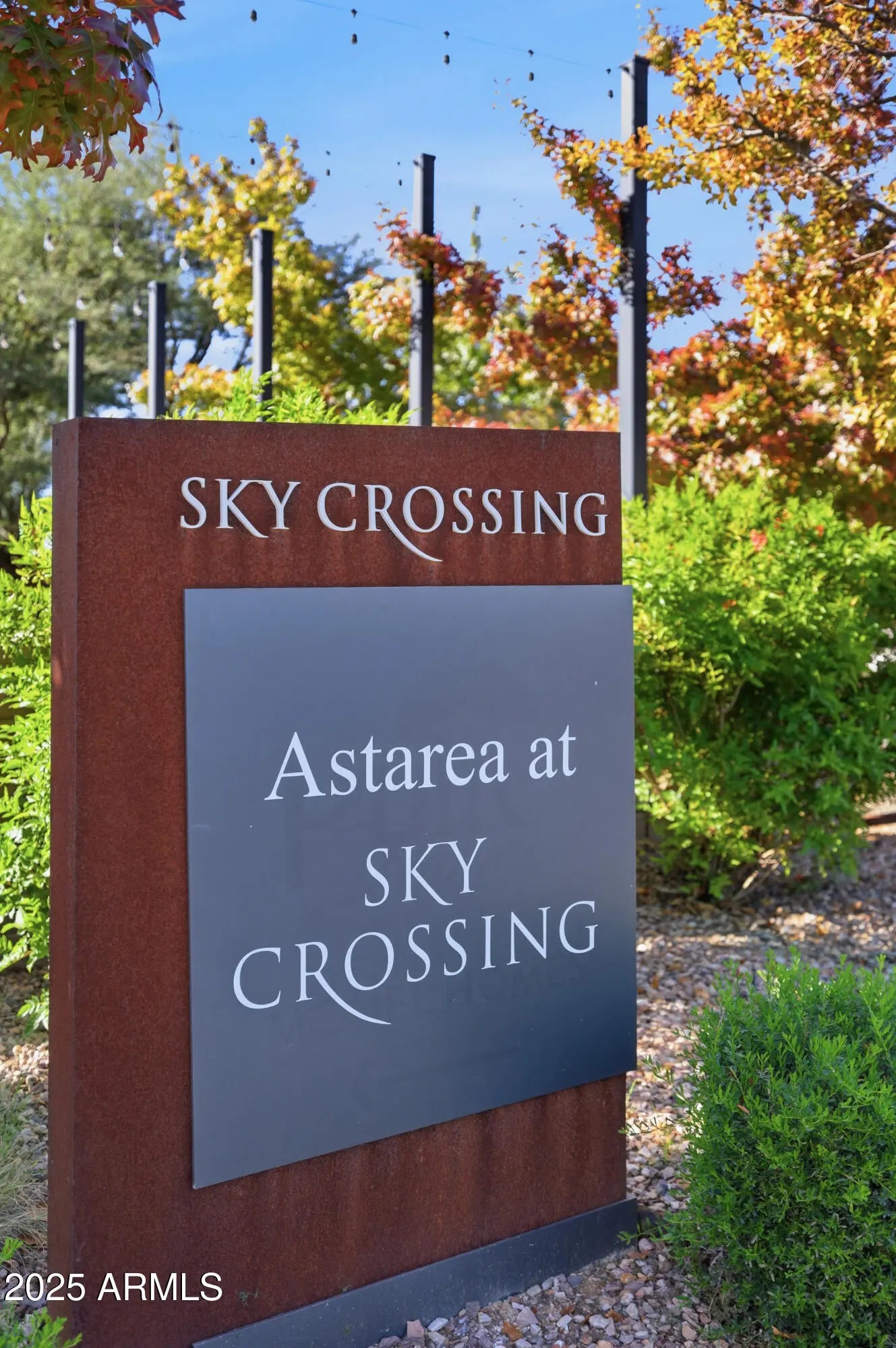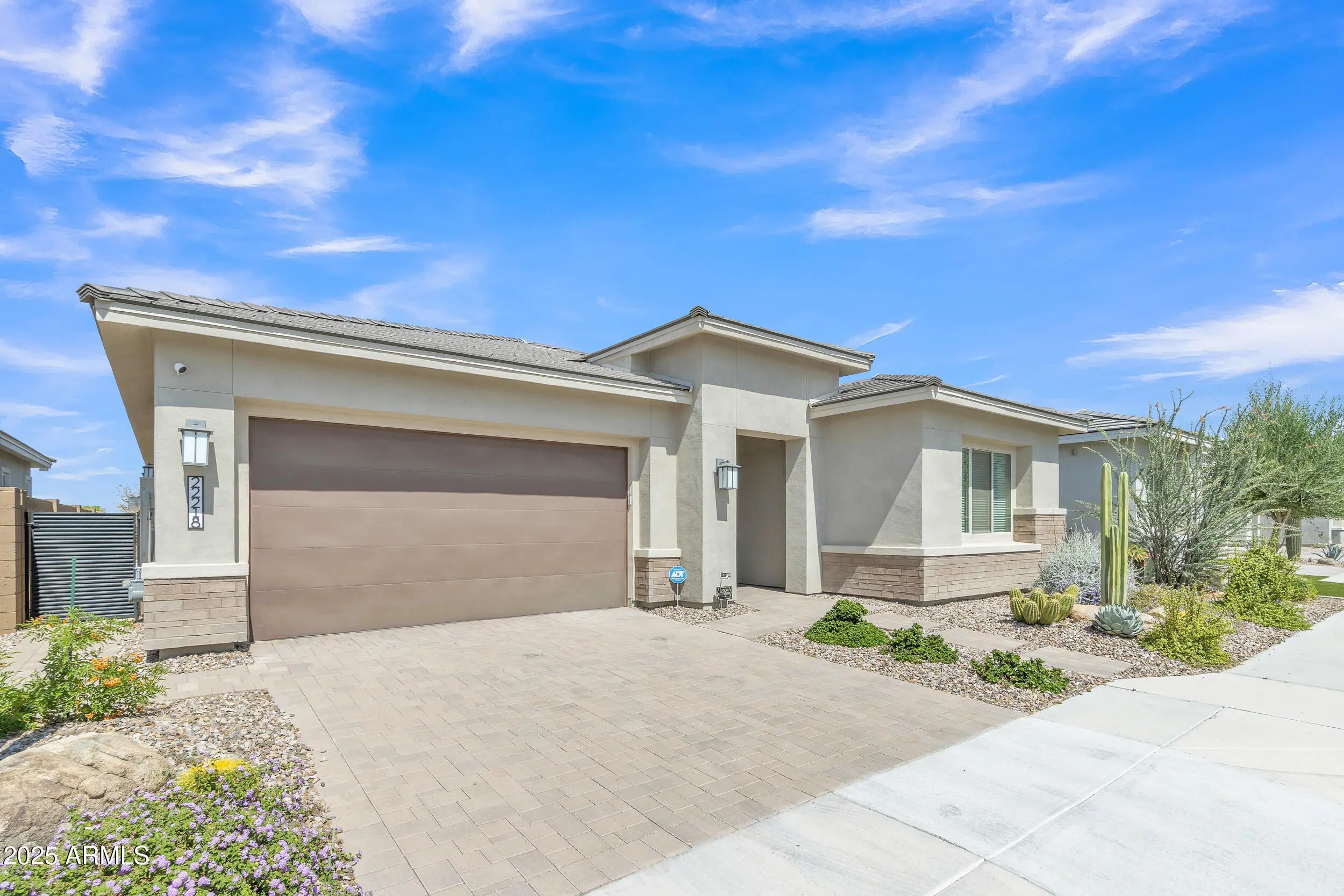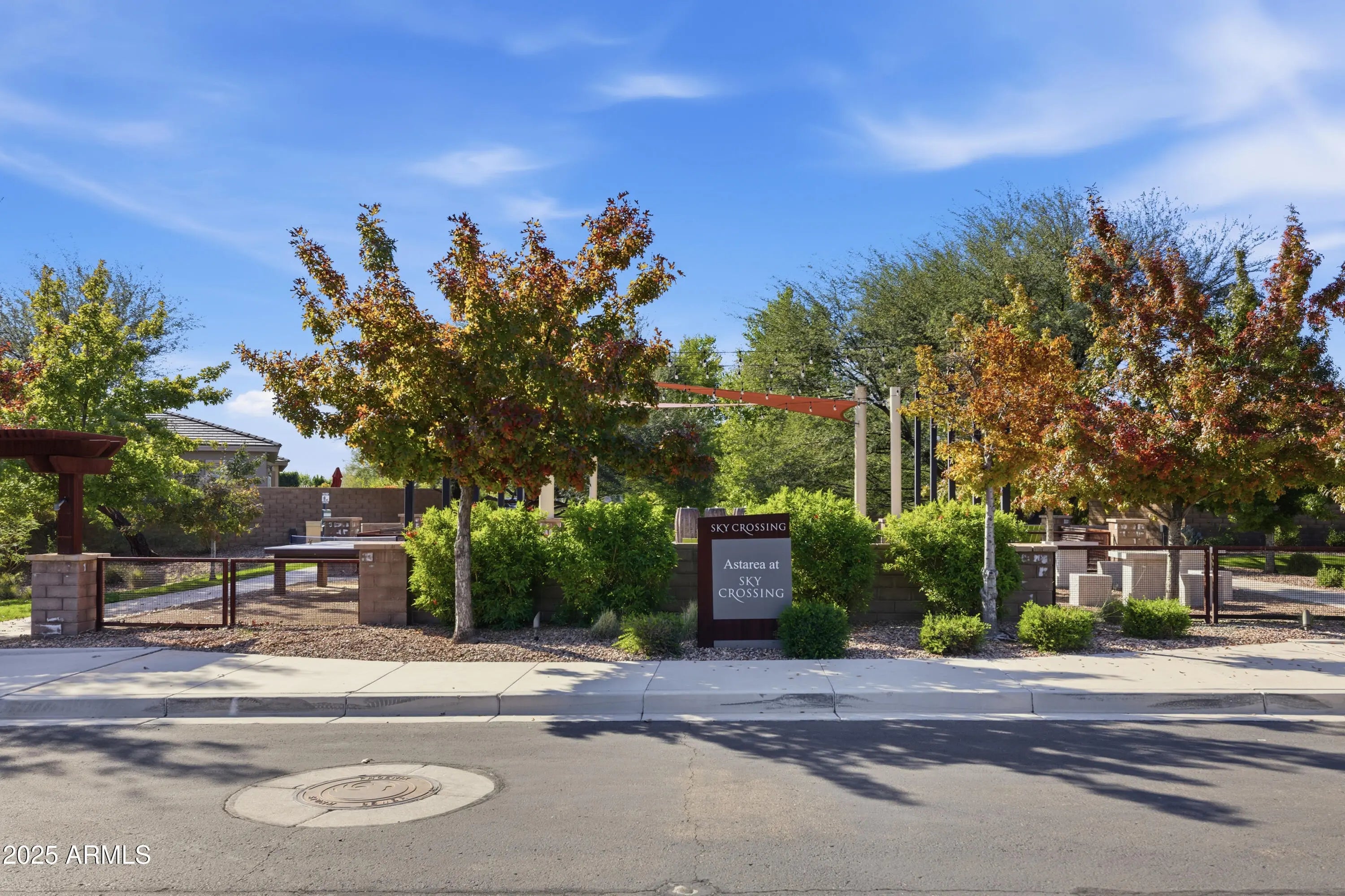 Welcome to refined desert living in the exclusive, gated enclave of Astarea at Sky Crossing. This exquisite 3-bedroom, 2.5-bath residence offers a thoughtfully designed open floor plan that effortlessly blends sophisticated entertaining with everyday comfort. The chef's kitchen is a true showpiece, featuring an oversized island with granite countertops, custom designer lighting, and a massive walk-in pantry. Premium stainless steel appliances include a Samsung smart refrigerator, gas cooktop, and dual ovens—perfectly complemented by a separate beverage bar with built-in wine fridge. Spacious eat-in kitchen OR utilize the separate office space for a private dining room if you entertain more! Retreat to the expansive primary suite, where breathtaking mountain views greet you from the window. The en-suite bath showcases upgraded hardware, luxury fixtures, and a serene spa-inspired design. A spacious laundry room with Samsung washer and dryer adds convenience with style. Enjoy seamless indoor-outdoor living with a corner sliding glass wall that opens completely to a covered tile patio, offering unmatched privacy with no neighbors behindthe perfect space for relaxing or hosting under the Arizona sky. Residents of Sky Crossing enjoy resort-style amenities, including a sparkling community pool, state-of-the-art fitness center, clubhouse, playgrounds, lush parks, and an on-site elementary school. Ideally located just minutes from Desert Ridge Marketplace and City North, this home offers the perfect blend of luxury, comfort, and convenience.