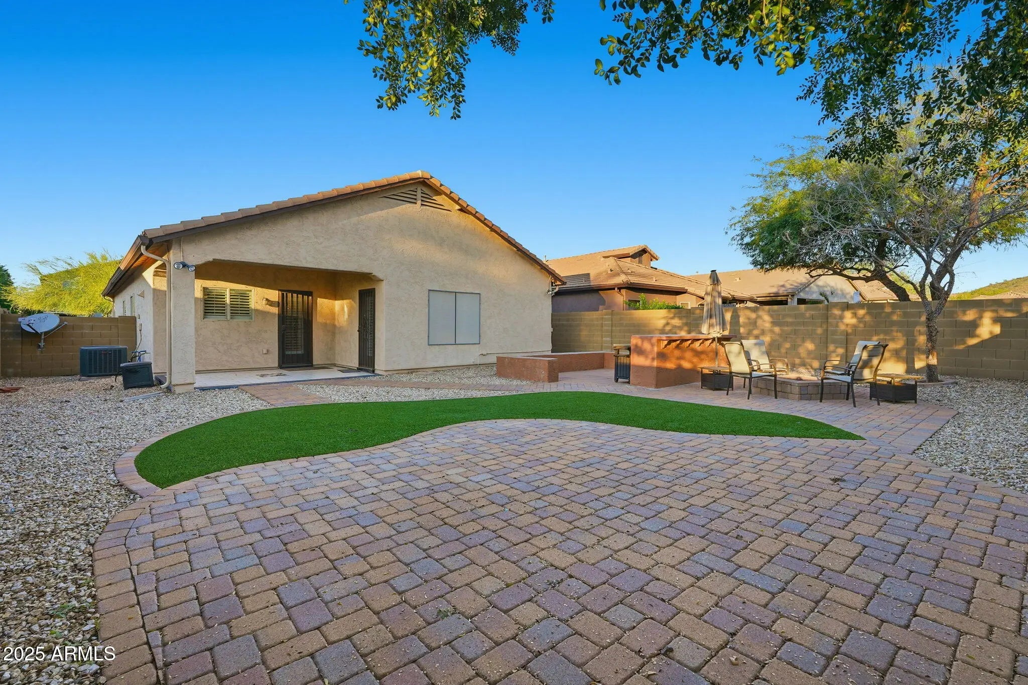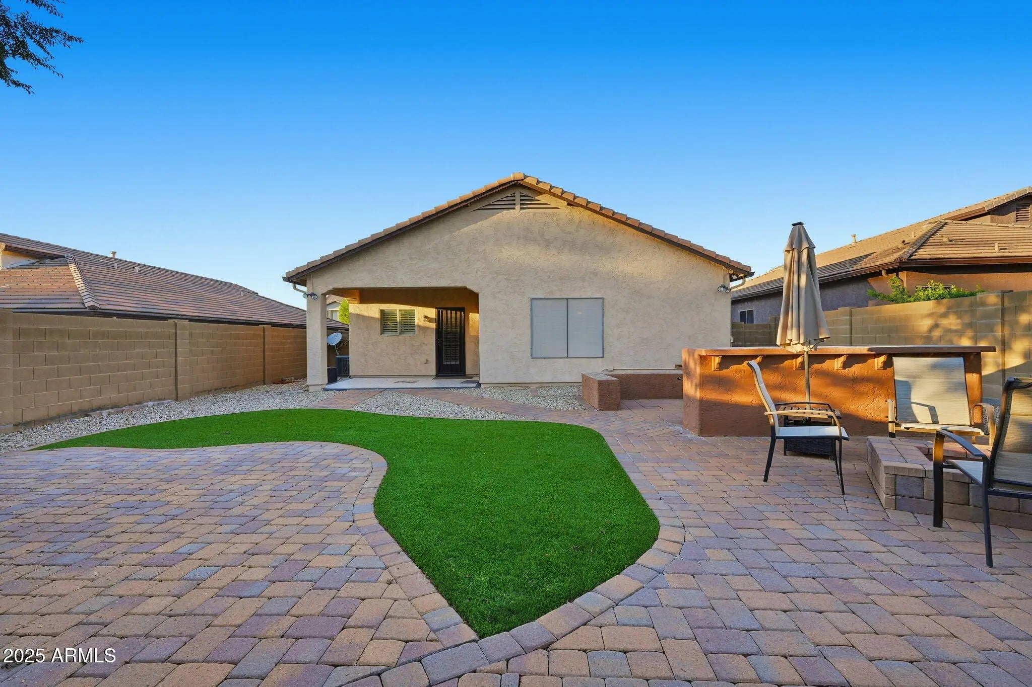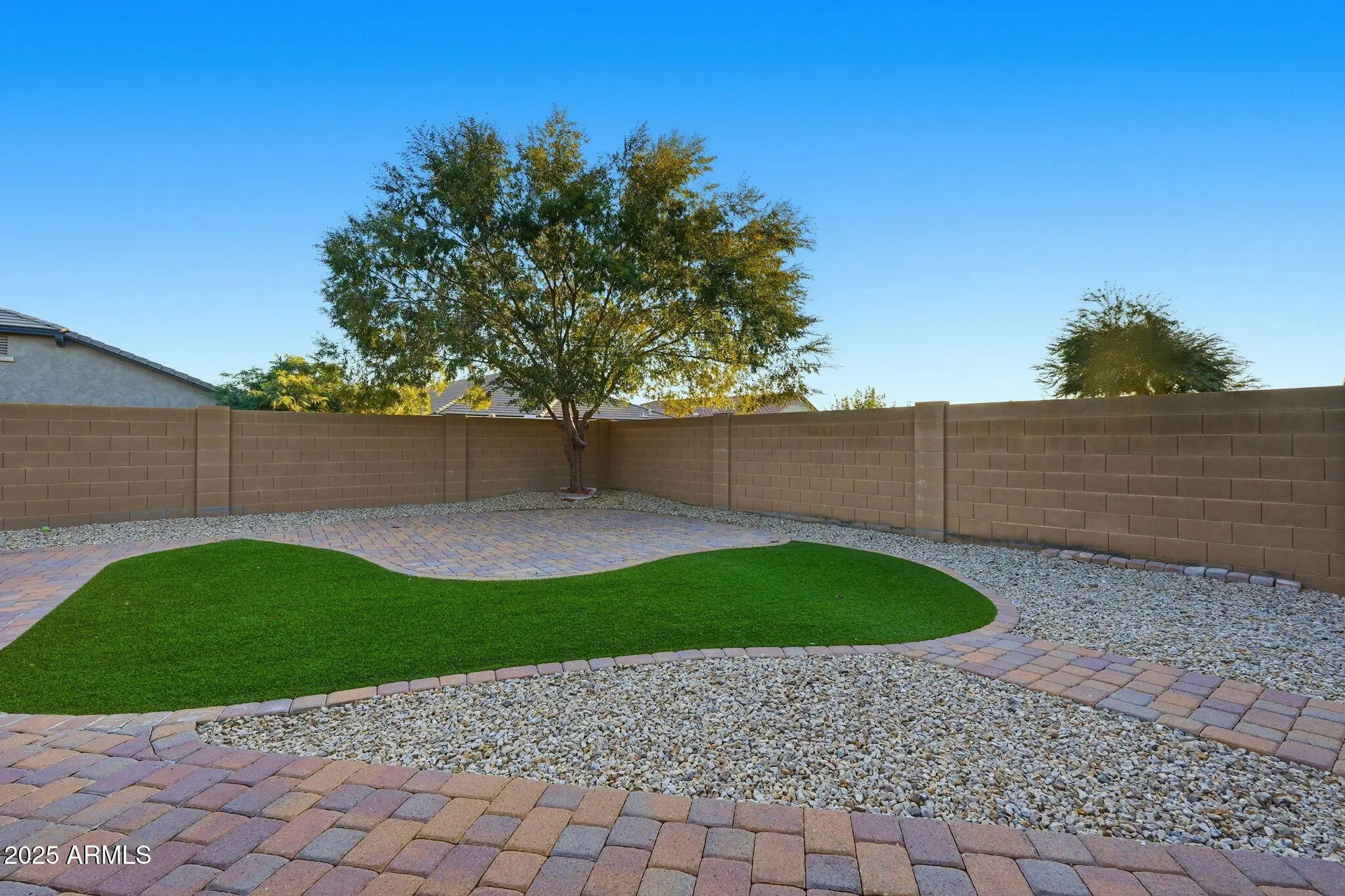 North/South Exposure, Gravel/Stone Front, Synthetic Grass Back, Natural Desert Front