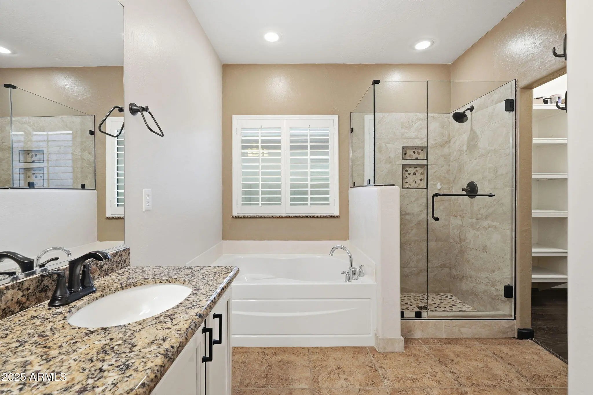 Granite Counters, Double Vanity, Eat-in Kitchen, Breakfast Bar, 9+ Flat Ceilings, No Interior Steps, Pantry, Full Bth Master Bdrm, Separate Shwr & Tub