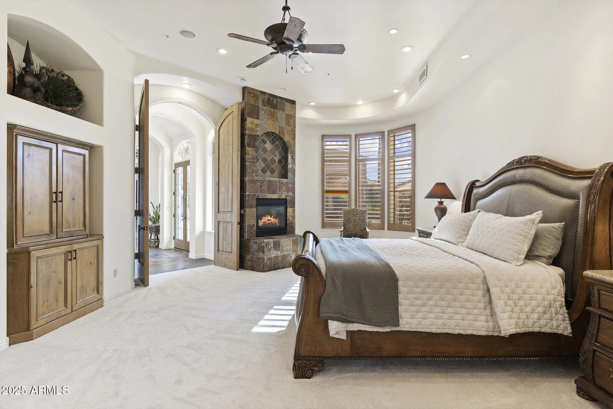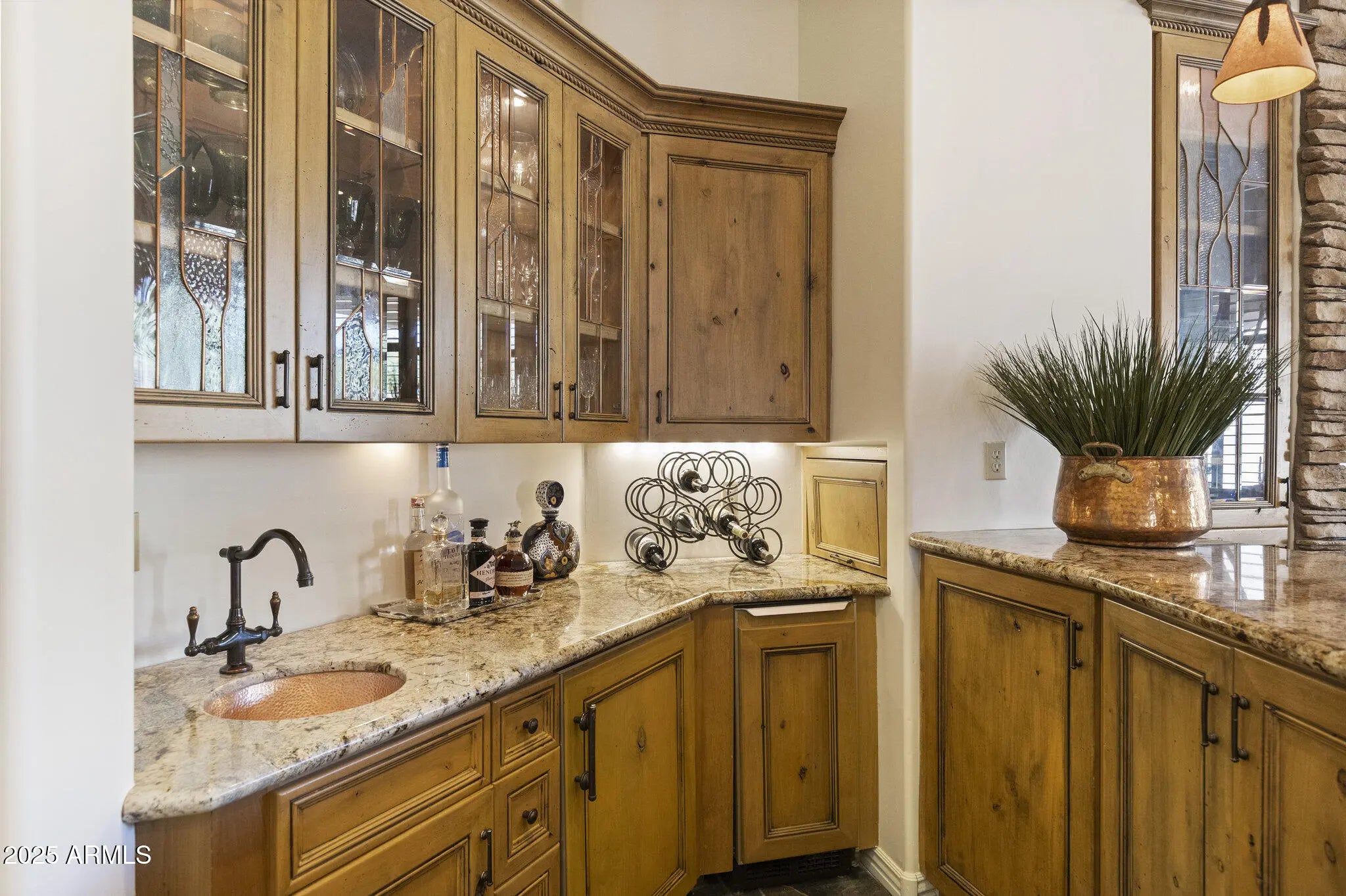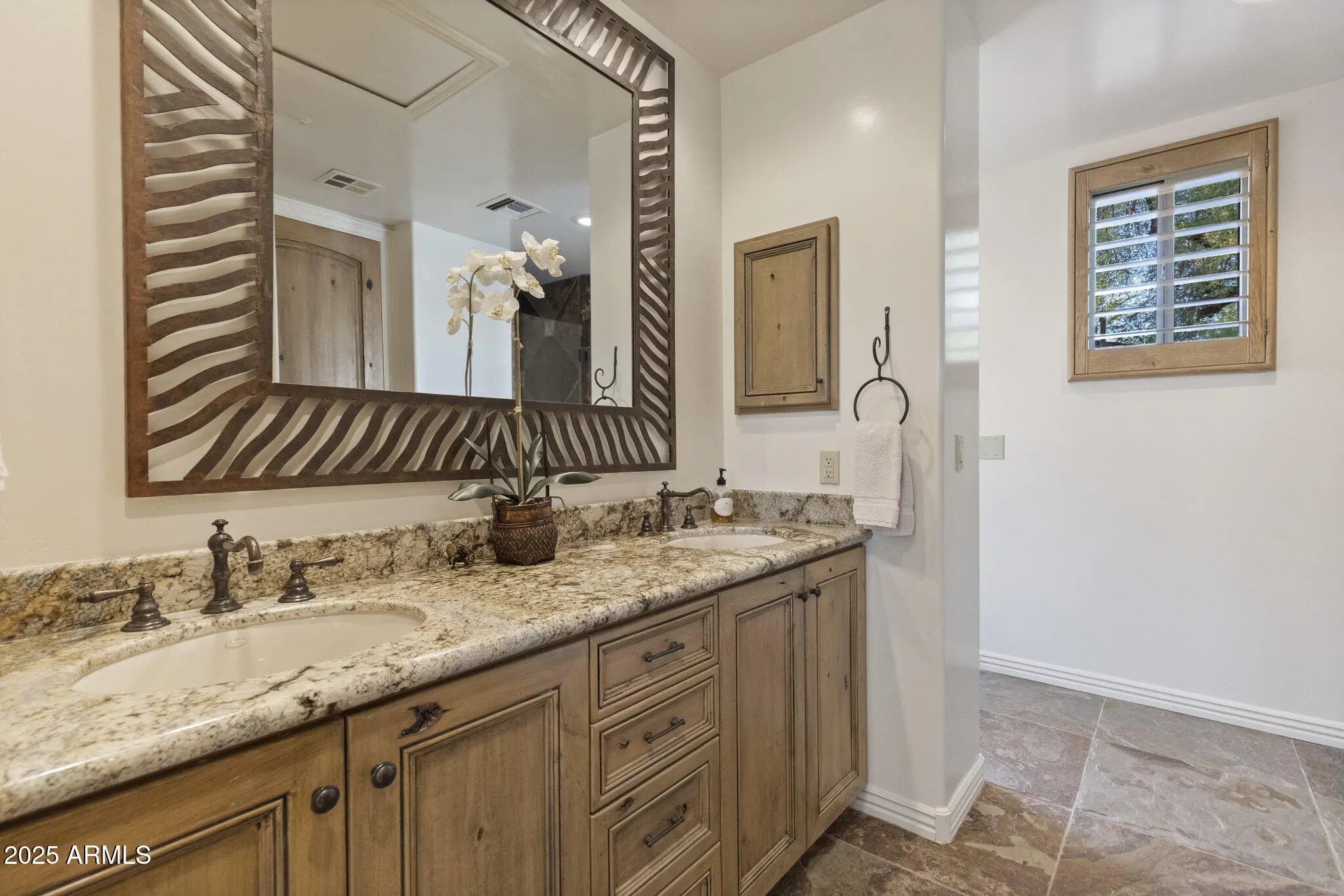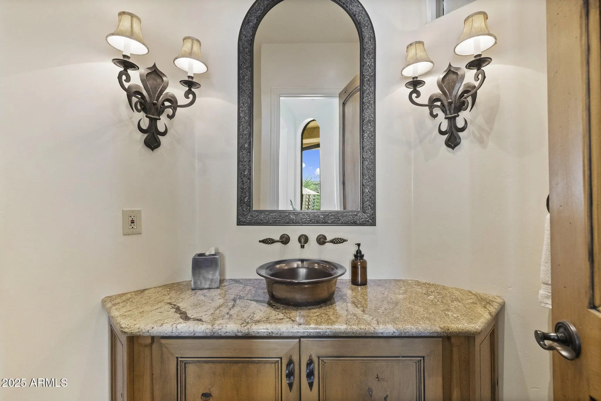 NEW PRICE $525/SQFT GATED CACTUS CORRIDOR ESTATE HIDDEN IN THE HEART OF SCOTTSDALE. Located within Portales del Sol, a private enclave of ten custom estates, this property offers exceptional privacy with no neighbors on three sides while remaining minutes from Scottsdale Rd, Hayden Rd, and Loop 101. This 6295 SQFT custom estate plus 645 SQFT detached guest house sit on a 35,116 SQFT lot and feature six ensuite bedrooms, eight bathrooms, multiple private wings, and a four-car garage, offering exceptional flexibility for family living, guests, or multigenerational use. Built in 2001 with exceptional construction quality and recently improved with a brand-new roof, fresh interior and exterior paint, new shower, new carpet, and fully serviced and inspected systems. Original architectural plans convey on sale, offering the next owner the ability to personalize the space. ENTRANCE into Portales del Sol begins through a private gated, tree-lined drive leading into a lush cul-de-sac of custom estates. Mediterranean-Southwestern architecture blends with European-inspired elegance where a fountain and bougainvillea-wrapped columns frame the custom mullion-glass front door. A dramatic rotunda entry with copper-inlay flooring introduces the refined craftsmanship found throughout the home. EAST WING serves as a private retreat anchored by the grand primary suite with fireplace, sitting area, and French doors opening directly to the gardens and pool. Dual walk-in closets and a spa-style bath with dual vanities, soaking tub, and walk-in shower create a luxurious setting. This wing also includes a richly finished private office, a dedicated exercise room, and an additional ensuite bedroom ideal for guests or extended family. WEST WING offers three oversized ensuite bedrooms, each with walk-in closets, private baths, built-in shelving, and charming window seats. The bedrooms surround a spacious game room that can be closed off for privacy and includes two built-in desks with task lighting and a dedicated exit to the pool and patio. CHEF'S KITCHEN sits at the center of the home and showcases dual granite islands, Sub-Zero and DACOR appliances, dual stoves, dual warming drawers, dual dishwashers, dual pantries, and a custom handcrafted copper hood. Just beyond the kitchen, a private patio overlooks a lush garden and waterfall -- an ideal setting for morning coffee or an early evening cocktail while embracing Scottsdale's seamless indoor-outdoor lifestyle. FORMAL ENTERTAINING SPACES include an elevated rotunda dining room with a custom mesquite table for 8-12 guests, an adjacent 900-bottle wine room, a private living room with fireplace ideal for a grand piano or post-dinner conversation, and a beautifully designed custom bar with hammered copper sink that becomes a natural focal point when hosting larger gatherings. OUTDOOR LIVING evokes the feeling of a private resort. The tropical diving pool features a rock waterfall, diving rocks, extended Baja shelf, and heated spa surrounded by lush landscaping. Expansive lawn areas, mature citrus trees, and stately palms create a rare garden environment. A covered entertainment portico with built-in BBQ and fireplace provides an ideal setting for outdoor dining. With no neighbors on three sides and double-gated side yards, the property offers exceptional privacy and flexibility. DETACHED GUEST HOUSE includes its own private entrance with bedroom, bathroom, living room, kitchenette, and laundry hookups -- perfect for extended family, long-term guests, live-in staff, or a private studio. ADDITIONAL FEATURES include CAT5 wiring, EERO WiFi mesh system, Golden Eagle security, WiFi-enabled garage openers, Spotify-connected surround sound inside and out, and custom iron pool safety fence. LOCATION is minutes from Scottsdale's premier dining, shopping, golf, major medical centers, and the Loop 101 freeway, offering convenient access to Scottsdale Airport and Phoenix Sky Harbor for business or leisure travel. Private location to host friends during Barrett Jackson Car Auction, Phoenix Waste Management Open and Spring Training Baseball. The property is also convenient to several highly regarded private schools including Rancho Solano Preparatory School and Scottsdale Christian Academy.