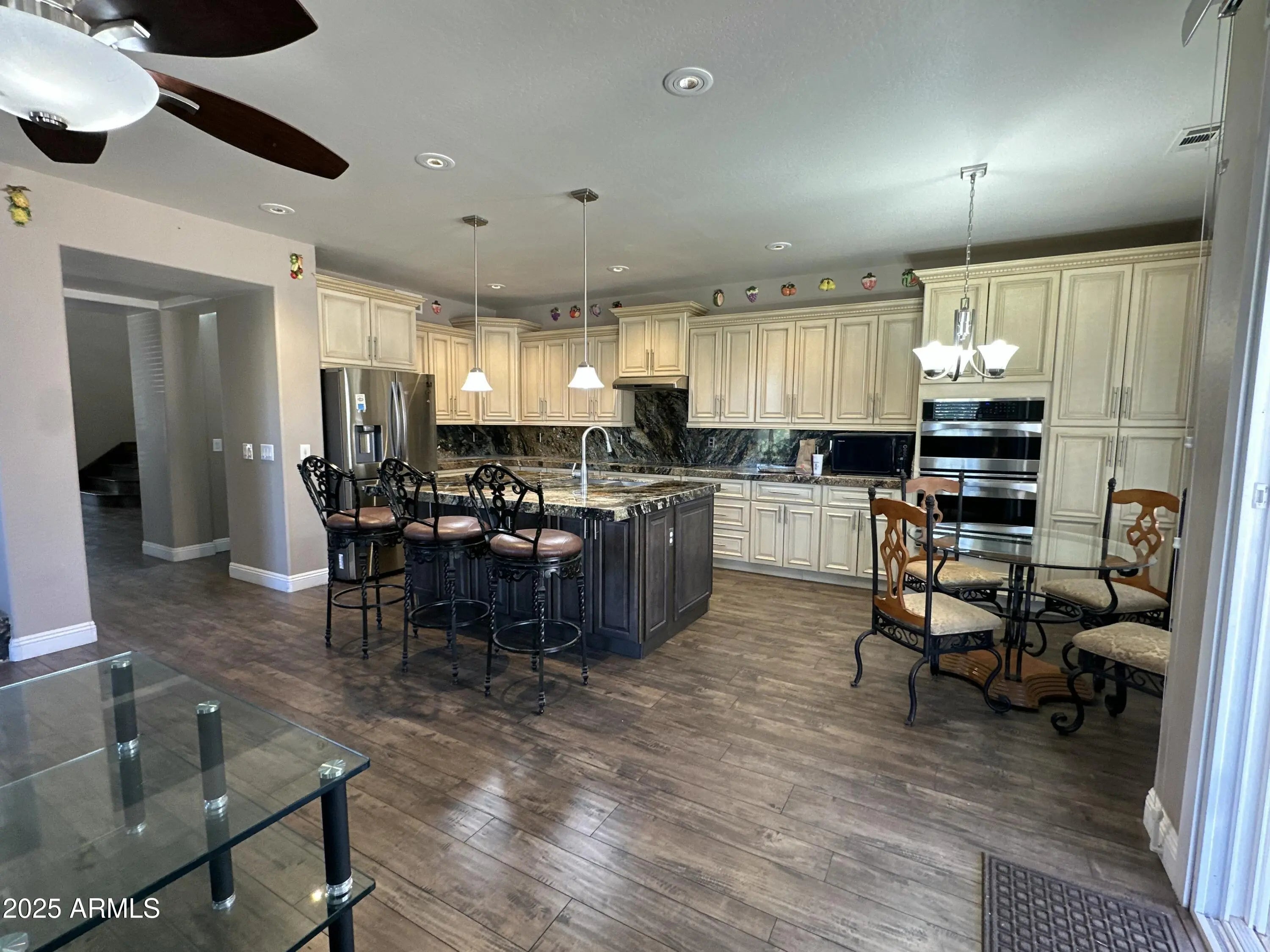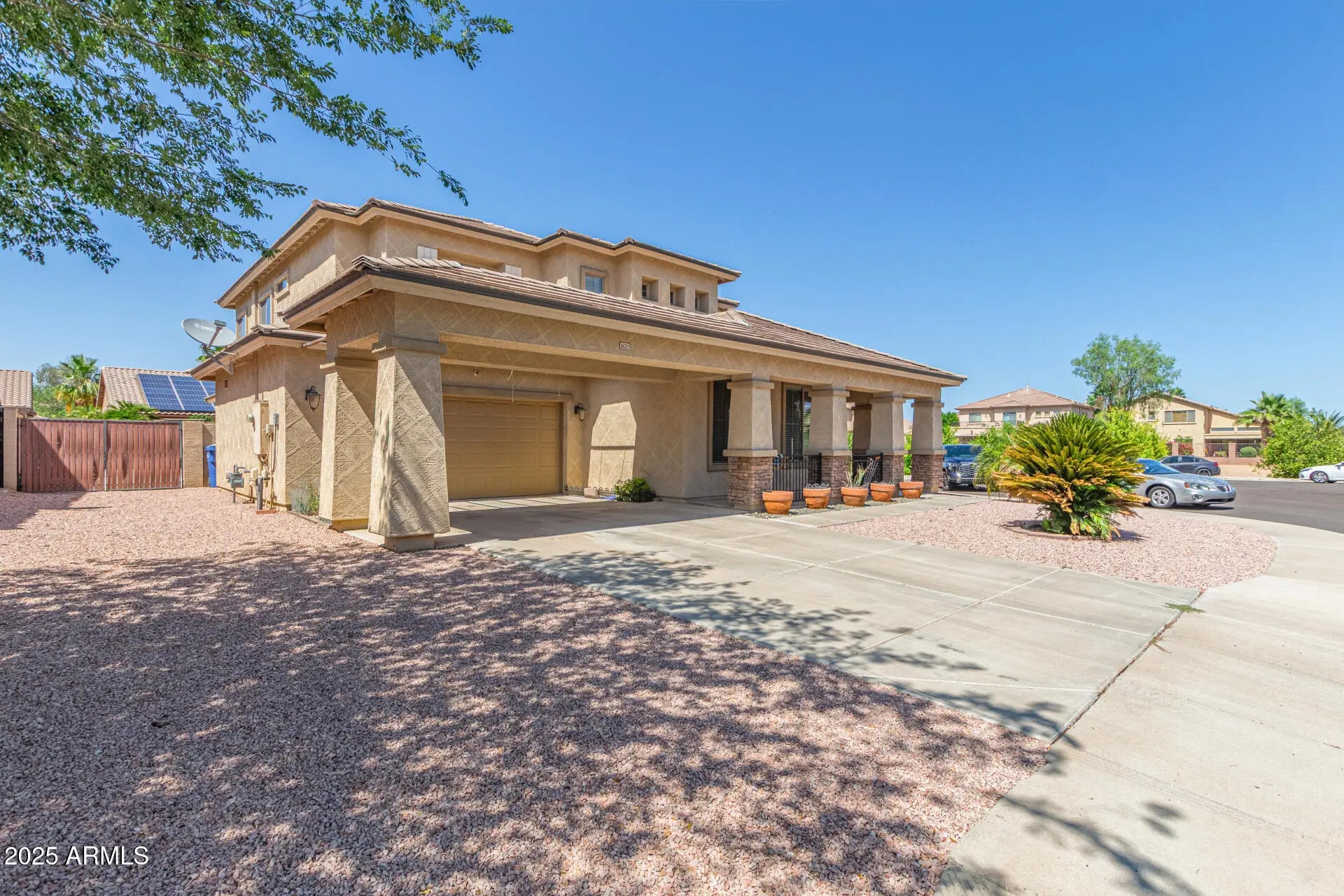 Welcome to your dream home! Nestled in a peaceful cul-de-sac, this beautifully upgraded home is minutes from restaurants, shopping & entertainment. The gorgeous flooring is complemented by soft, modern paint tones and abundant natural light. The kitchen is truly a chef's delight! Featuring staggered cabinetry with crown molding, granite countertops and backsplash, and a spacious island is ideal for casual dining. The primary suite downstairs offers the ultimate retreat, walk-in closet and a luxurious ensuite bathroom, enjoy dual-sink vanity and a deep soaking tub. Upstairs, a spacious loft upstairs can be used as a home office/den. Step outside to your beautifully landscaped backyard, with extended pavers, an enclosed patio area, and a RV gate for your toys or trailers. Step outside to your beautifully landscaped backyard, featuring extended paver patios and an enclosed patio areaideal for year-round entertaining or enjoying quiet Arizona evenings. Additional highlights include an RV gate for your toys or trailers and plenty of room for custom outdoor additions.