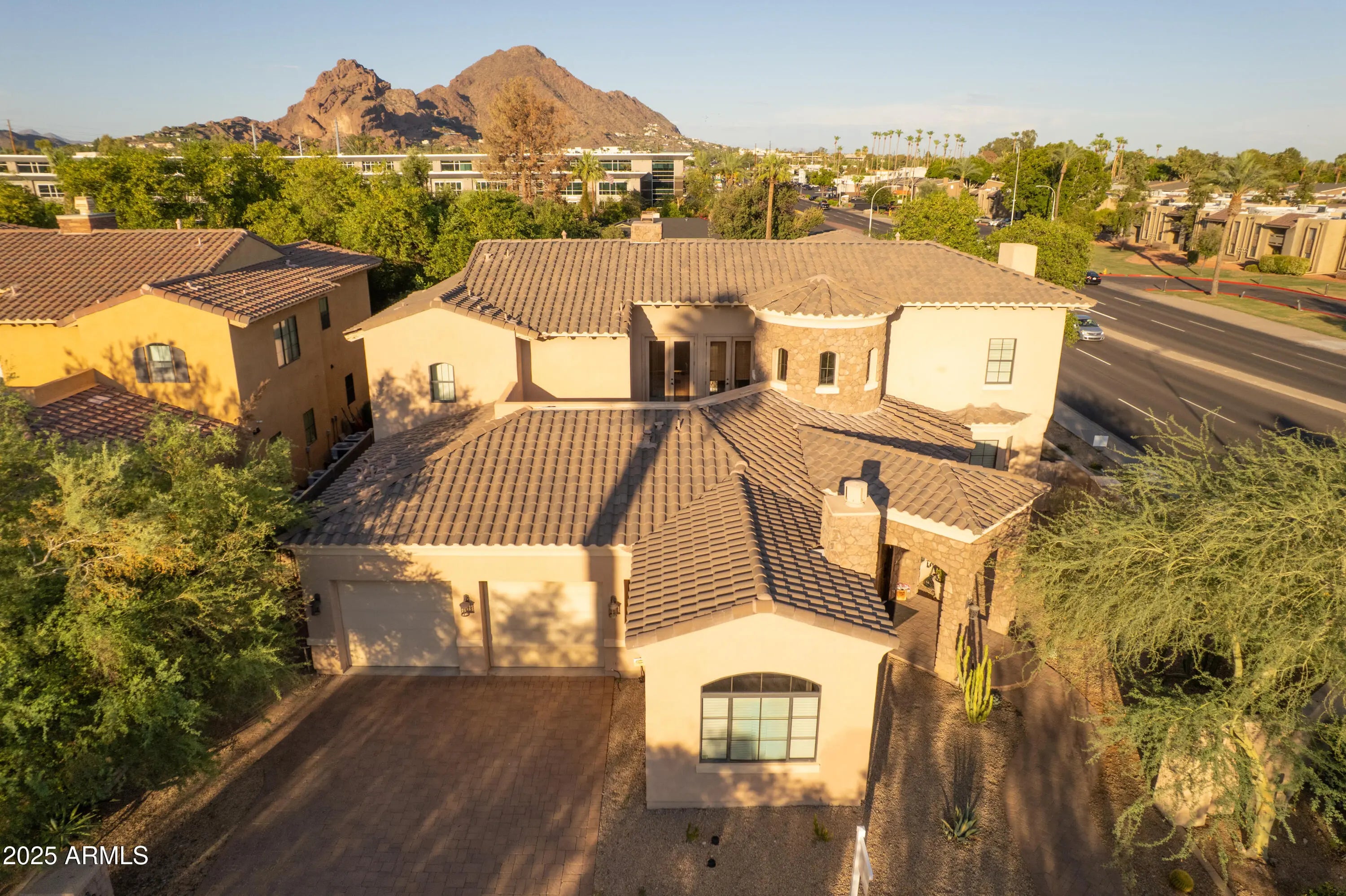 Charming arched doorways | Dramatic spiral staircase | Soaring ceilings with wood beams | Abundant natural light | Two cozy fireplaces — these are only a few of many standout features that truly set this home apart! Bonus Features: Travertine floors throughout | Wrought iron accents and custom cabinetry | Custom granite countertops | Short term rentals allowed | Chef's kitchen with ZLine and KitchenAid appliances + dual islands | Expansive laundry room with farm sink | Outdoor living includes an Exercise pool + spa a large patio and two balconies—one with serene Camelback Mountain views, the other with dramatic Piestewa Peak sunsets