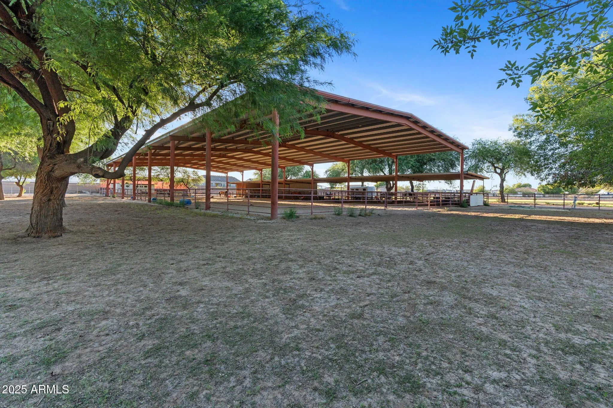 Exceptional 4+ acre horse ranch in Waddell—an equestrian dream! This rare no-HOA property includes two tax parcels with space to expand or subdivide. The charming 3-bedroom main home features granite counters, Cantera stone fireplaces, and knotty alder cabinetry, blending rustic elegance with modern comfort. A private guest house with its own parking is perfect for multi-generational living, guests, or rental income. Premium horse amenities include a 190'x85' covered arena for year-round training, 10 stalls, hay barn, tack room, and lush irrigated pasture. With room for RVs, trailers, and equipment, this property offers endless options—build up to three homes, board horses, or create a full equestrian business (buyer to verify). Bring your horses and your vision! This property is located in the heart of Waddell, a community that perfectly blends rural charm with modern convenience. Set against the scenic backdrop of the White Tank Mountains, it captures the best of country living open skies, mountain views, and space to live freely. While nearby cities continue to grow, Waddell remains one of the few areas in the West Valley where you can truly enjoy acreage living, privacy, and room to expand without sacrificing access to shopping, dining, and top-rated schools. Just minutes from the Loop 303, The Village at Prasada, and the thriving Goodyear and Litchfield Park corridors, this property offers both tranquility and connectivity. The irrigated acreage makes the land exceptionally valuable and functional. Irrigation provides a dedicated water supply that keeps the soil rich and the grass green year-round, creating cool, usable ground for horses, farming, or landscaping. This rare feature allows the property to support lush pasture, shade trees, and a healthy environment for animals and people alike. You can maintain grassy turnout for horses, plant gardens, or create a private retreat surrounded by mature desert landscaping. In a region where most acreage is dry and dusty, irrigated land is a true luxury. The versatility of this equestrian estate sets it apart from any other acreage for sale in the West Valley. The covered riding arena can serve as a professional training facility or be reimagined as a sports or fitness space for baseball, soccer, or private recreation. The open acreage and thoughtful layout make it ideal for a hobby farm, small business, or multi-use ranch that blends work and leisure. The guest house provides flexibility for multi-generational living, a caretaker residence, or short- or long-term rental income. Each stall can be leased individually, creating multiple revenue streams while preserving privacy and functionality. Whether you envision a horse property, an agricultural retreat, or a quiet country estate, the infrastructure is already in place to bring that vision to life. Waddell has become one of the most desirable communities in the region, known for wide-open landscapes, equestrian-friendly zoning, and a peaceful desert environment. The nearby White Tank Mountain Regional Park offers miles of hiking, horseback-riding, and mountain-biking trails, with stunning views, petroglyphs, and waterfalls that showcase the beauty of the Sonoran Desert. Families enjoy newer schools, open parks, and community amenities that keep daily life convenient and connected while maintaining the calm rhythm of the country. Imagine starting each day with the sun rising over the mountains, your horses grazing in the cool morning air, and the quiet of nature surrounding you. Afternoons can be spent training, gardening, or simply enjoying the freedom of open land. Evenings bring golden sunsets, the scent of desert rain, and a sky filled with stars. This is the kind of lifestyle many dream about but few can attain rare combination of space, serenity, and accessibility. As development continues to expand throughout the West Valley, properties with this amount of usable, irrigated acreage and infrastructure have become increasingly hard to find. This luxury ranch offers a unique opportunity to own land that not only supports your current lifestyle but can grow with your goals. Whether you are looking for a high-end equestrian facility, a multi-home family compound, a working hobby farm, or a long-term investment, this country property offers the freedom to create something lasting. With its mountain views, irrigated pastures, guest accommodations, and no HOA, it represents the best of refined rural living authentic, functional, and full of possibility. Properties like this are nearly impossible to recreate where land, design, and flexibility come together in one remarkable setting. It's more than a home; it's a rare opportunity to live freely, create fully, and enjoy a lifestyle defined by space, peace, and potential.