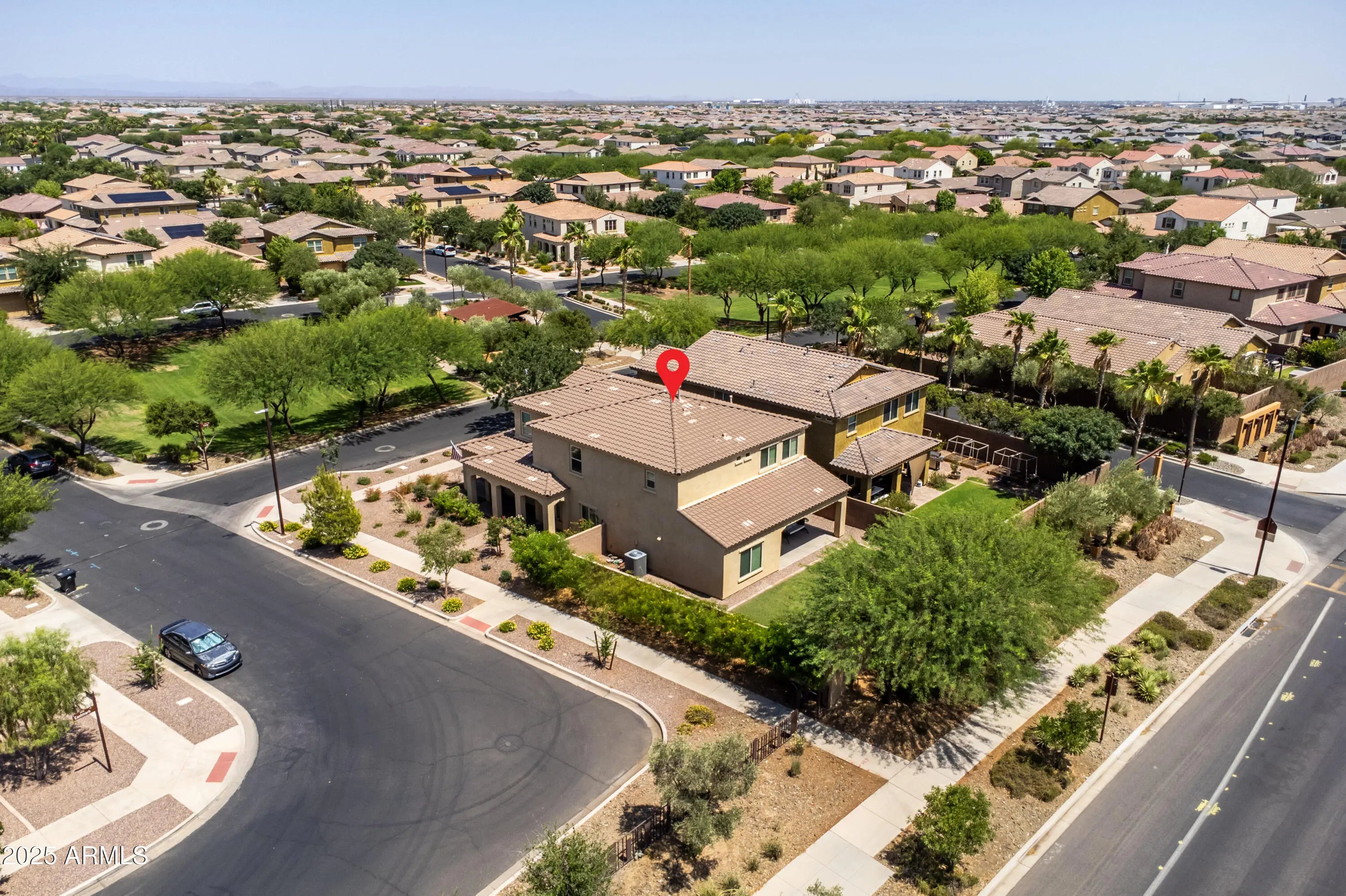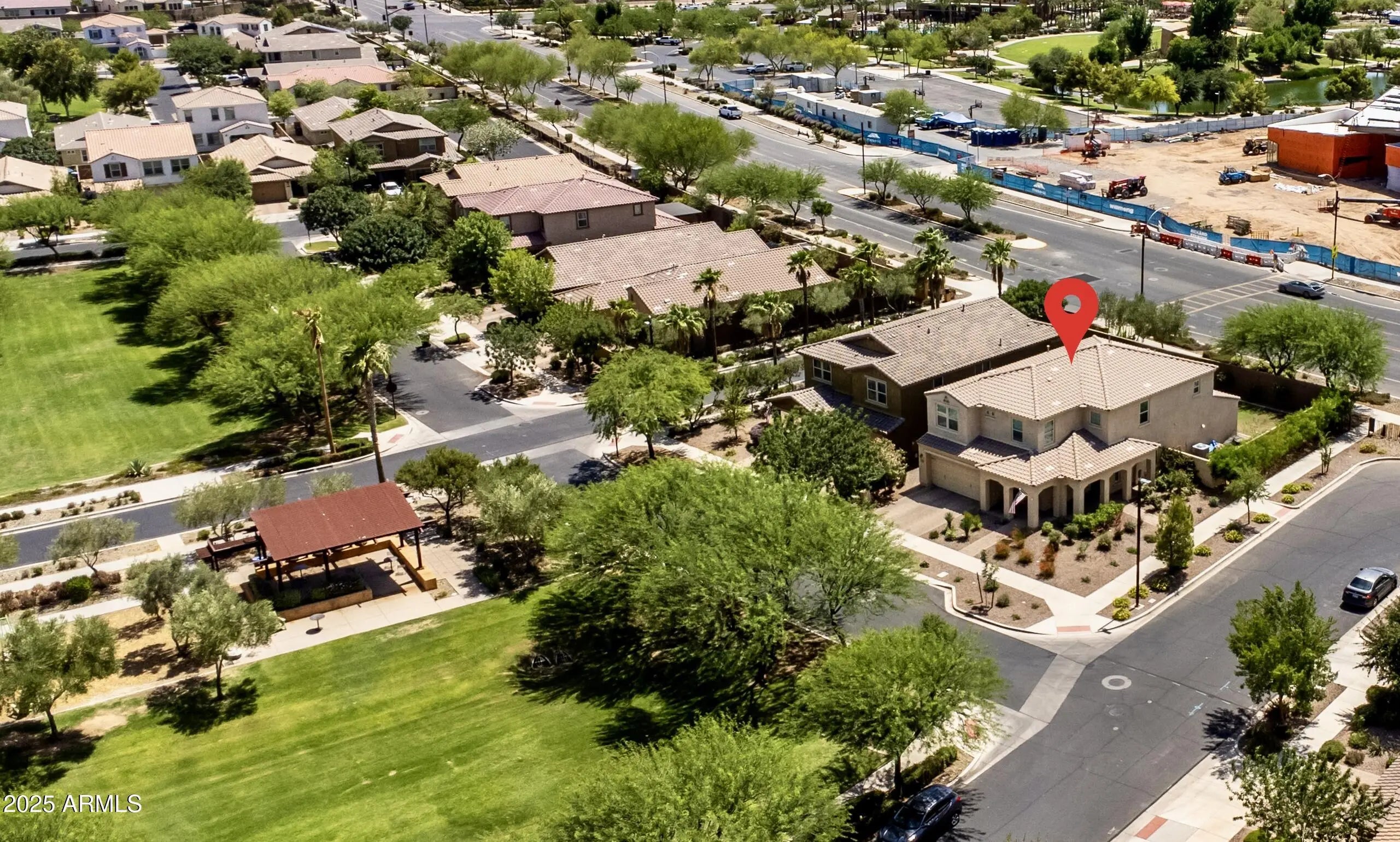 LOCATION, LOCATION, LOCATION! Welcome home to this gorgeous 2-story residence in the heart of Eastmark. The home sits at the edge of Eastmark Great Park, which offers easy access within short walking distance to several nearby schools, community center, pool, baseball fields, basketball courts, volleyball courts, dog parks, fishing lake, playgrounds, and soon Mesa Public Library. Just minutes within highway access reducing your commute time. This immaculate home features a corner lot that fronts to a neighborhood park with 4-bedrooms, 2.5 bathrooms, 3-car garage, great curb appeal with well-manicured landscaping, and plenty of space in the backyard for outdoor activities. Inside you will discover a modern floor plan with a spacious living room, abundant natural light, tile flooring, a dining area is perfect for entertaining family and friends. The loft & den are flexible areas where you can create your own space for a versatile lifestyle. The spacious eat-in kitchen boasts a breakfast nook, lots of cabinetry with crown moulding, recessed lighting, gas range, granite countertops, a butler's pantry, and a kitchen island with a breakfast bar. All the bedrooms are located upstairs. The primary bedroom showcases soft carpeting, a walk-in closet, and an ensuite bathroom with dual vanities and a shower with sliding glass doors. The remaining bedrooms are ample size with soft carpeting and share the hallway bathroom. Laundry is located downstairs. The backyard offers a covered concrete patio with a grassy area for entertaining and hosting lots of BBQs. Don't let this dream home get away!
